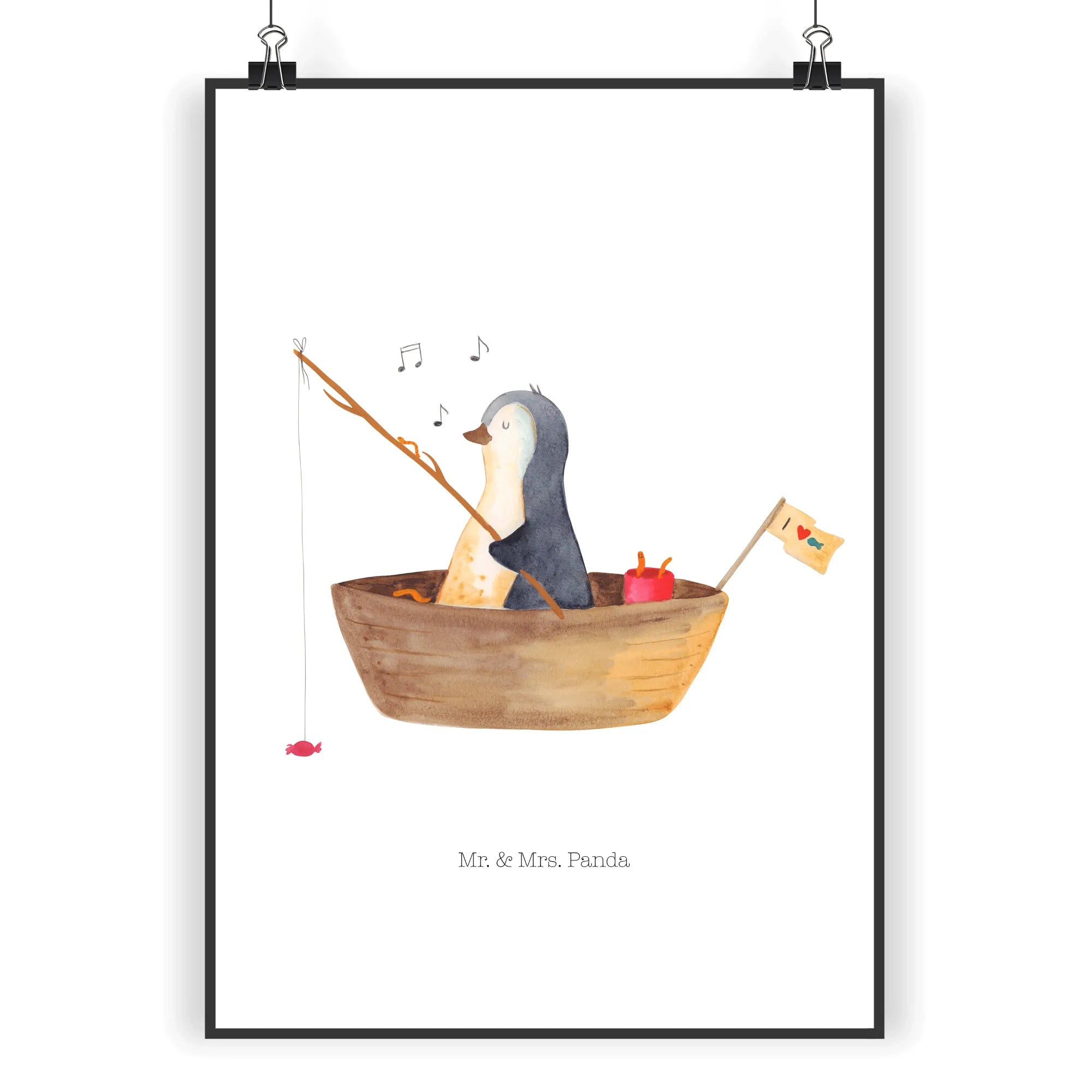 Poster Penguin fishing boat - DIN A5 - with saying - White
