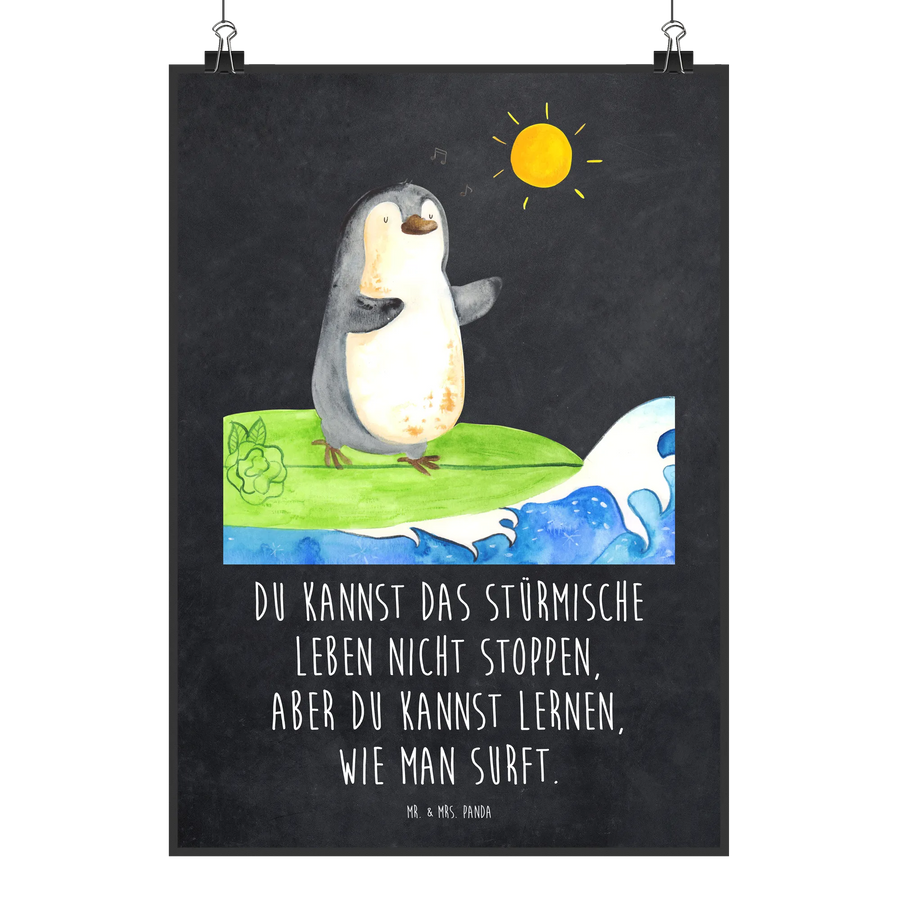 Poster Penguin surfer - DIN A0 - with a saying - Chalkboard