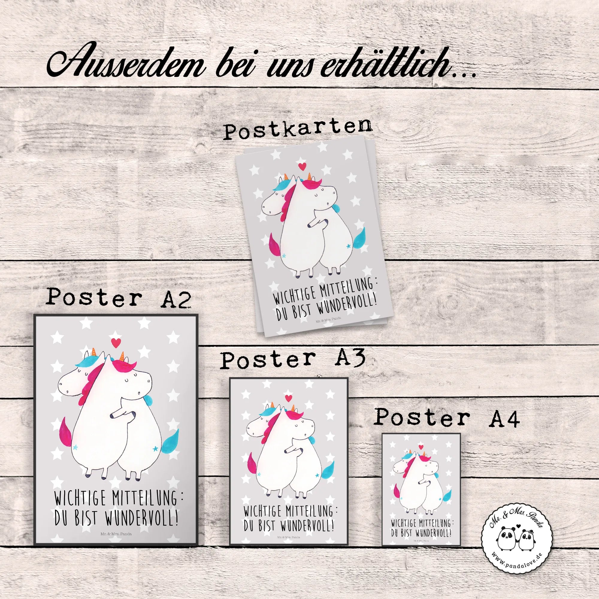 Handcrafted with affection, each print from the Unicorn - Collection is a unique masterpiece, sketched by Mrs. Panda herself in the heart of Hanover, Germany. This poster isn’t just another piece of wall decor; it’s a heartfelt message wrapped in art—"Wichtige Mitteilung: du bist wundervoll!" (Important Message: You are Wonderful!). Whether you’re looking for a fun addition to your own space, a thoughtful present for a significant other, or a captivating gift for a friend, this poster checks all the boxes!