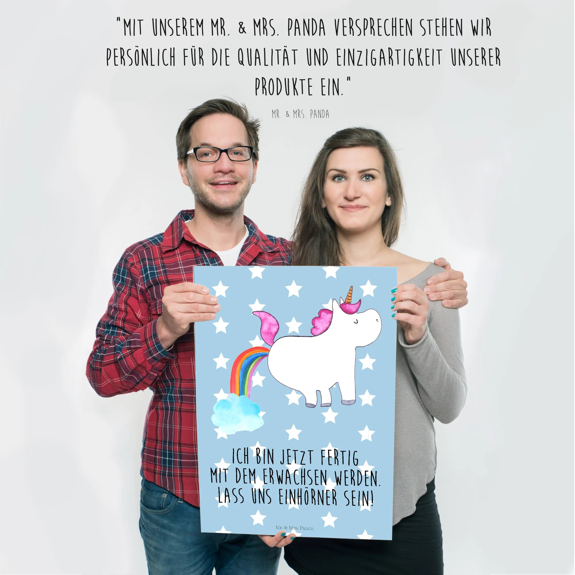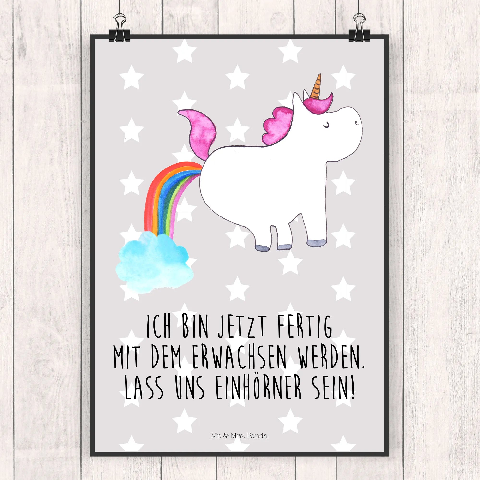 Get ready to unleash your imagination with our hilarious unicorn motif! Picture a cute unicorn joyfully releasing a rainbow fart, bursting with color and laughter. The saying, 'Ich bin jetzt fertig mit dem Erwachsenwerden. Lass uns Einhörner sein!' humorously captures the essence of letting go of adult responsibilities and instead enjoying the playful things in life. This design is all about fun and reminds us not to take ourselves too seriously. So dive into the world of whimsies and giggles! Our unicorn motif beckons you to stay playful, embrace the extraordinary, and let every day sparkle with joy.