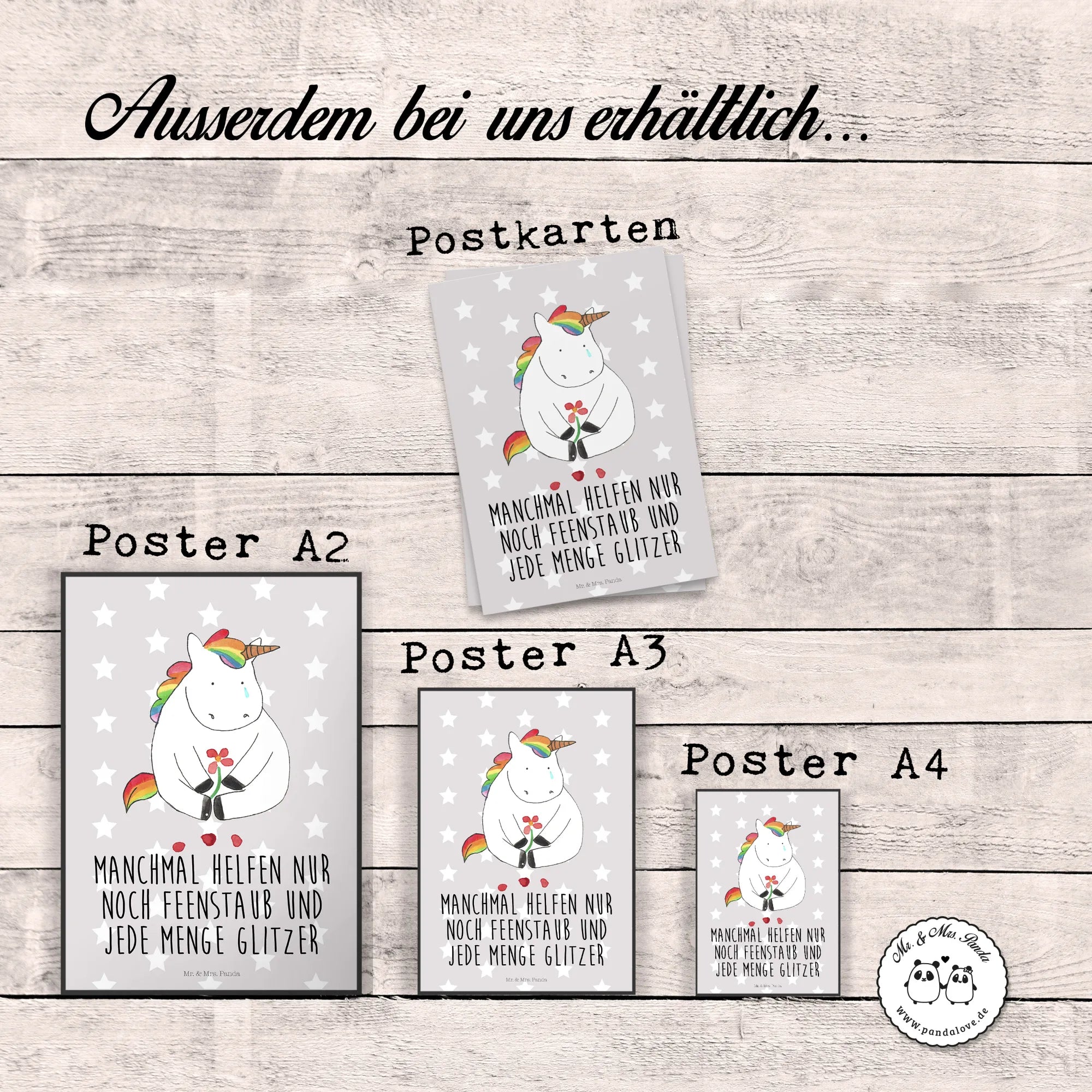 Nestled in a magical realm, our beloved unicorn sits with a soft sigh, a tear capturing the sparkle of its spirit. This motif evokes a sense of gentle consolation, showing us that even magical beings encounter sorrow. The saying, 'Manchmal helfen nur noch Feenstaub und jede Menge Glitzer,' beautifully encapsulates the moment of vulnerability we all feel sometimes. With blooming flowers around, this enchanting design invites us to cherish our friendships and offers a reminder that love is a powerful healer. As we look at this sad, yet hopeful unicorn, it encourages us to embrace our emotions, reminding us that it’s okay to be sad, and that brighter days lie ahead when surrounded by those who care. It’s a perfect greeting card for those moments when your loved ones need a touch of magic and warmth.