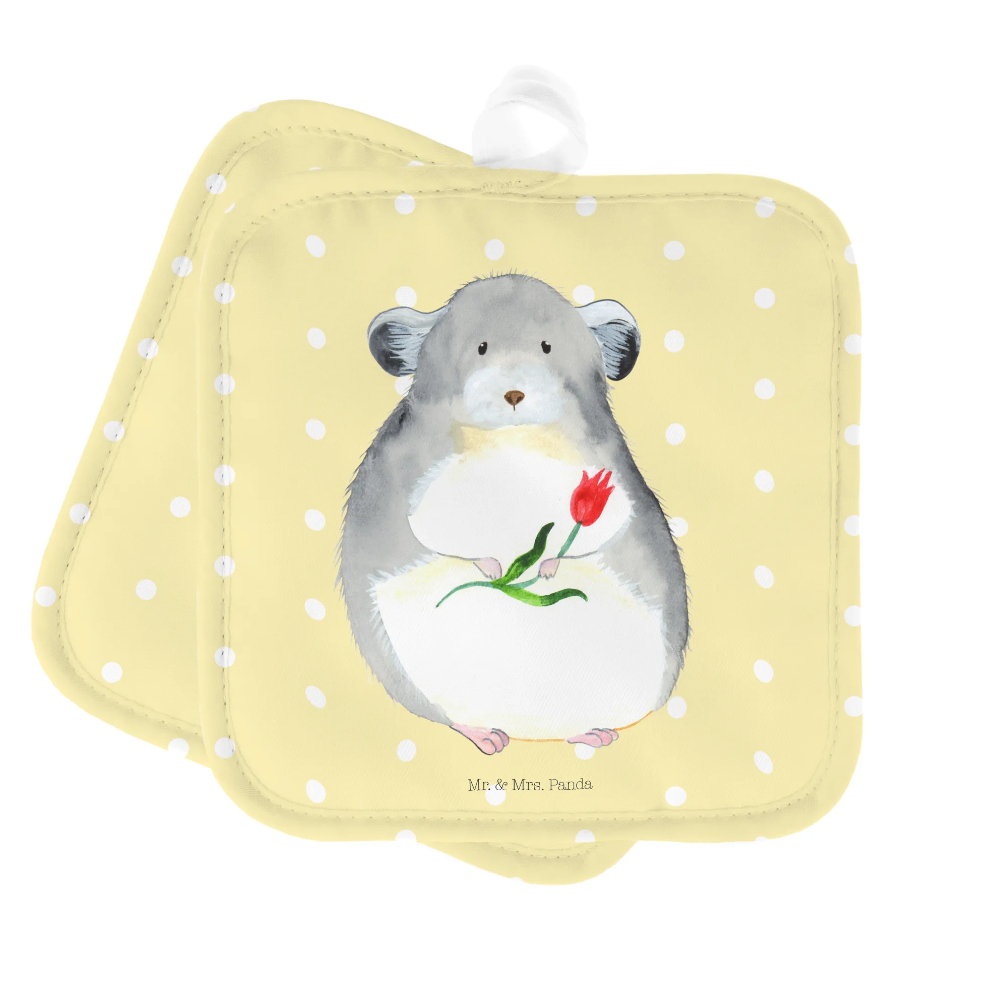 Pot holder chinchilla flower - with saying - Pastel Yellow