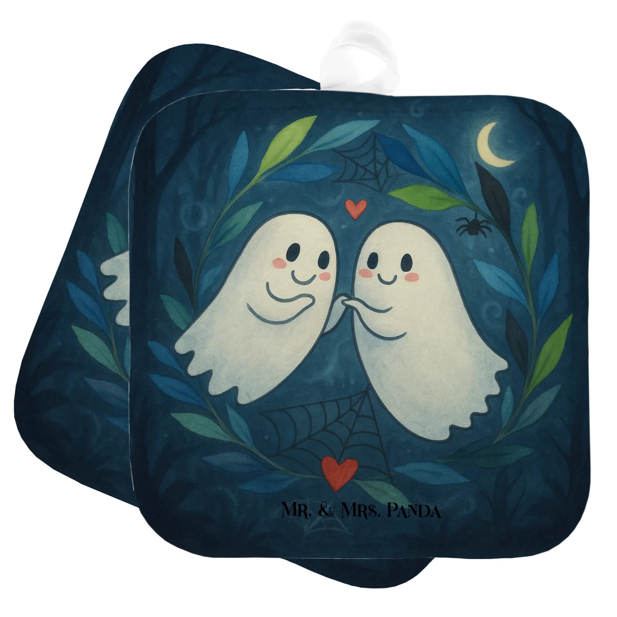 Willkommen in der wunderbaren Welt von Mr. & Mrs. Panda, wo Liebe und Magie selbst die gruseligste Zeit des Jahres in ein herzerwärmendes Fest verwandeln. Wenn die Tage kürzer werden und der Herbstwind um die Häuser zieht, ist es Zeit, es sich in der Küche so richtig gemütlich zu machen. Unser 2er Set Topflappen mit dem Motiv 'Gespenster Liebe' ist der perfekte Begleiter für diese besondere Jahreszeit. 🍂
