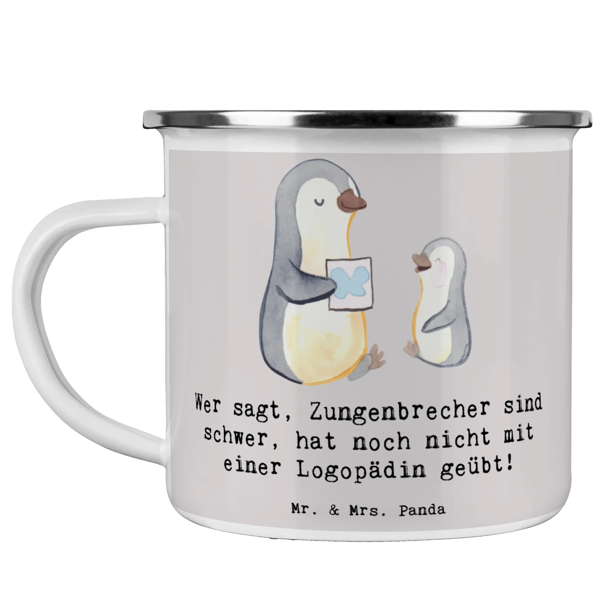 Enamel camping mug Wer sagt, Zungenbrecher sind schwer, hat noch nicht mit einer Logopädin geübt! - White