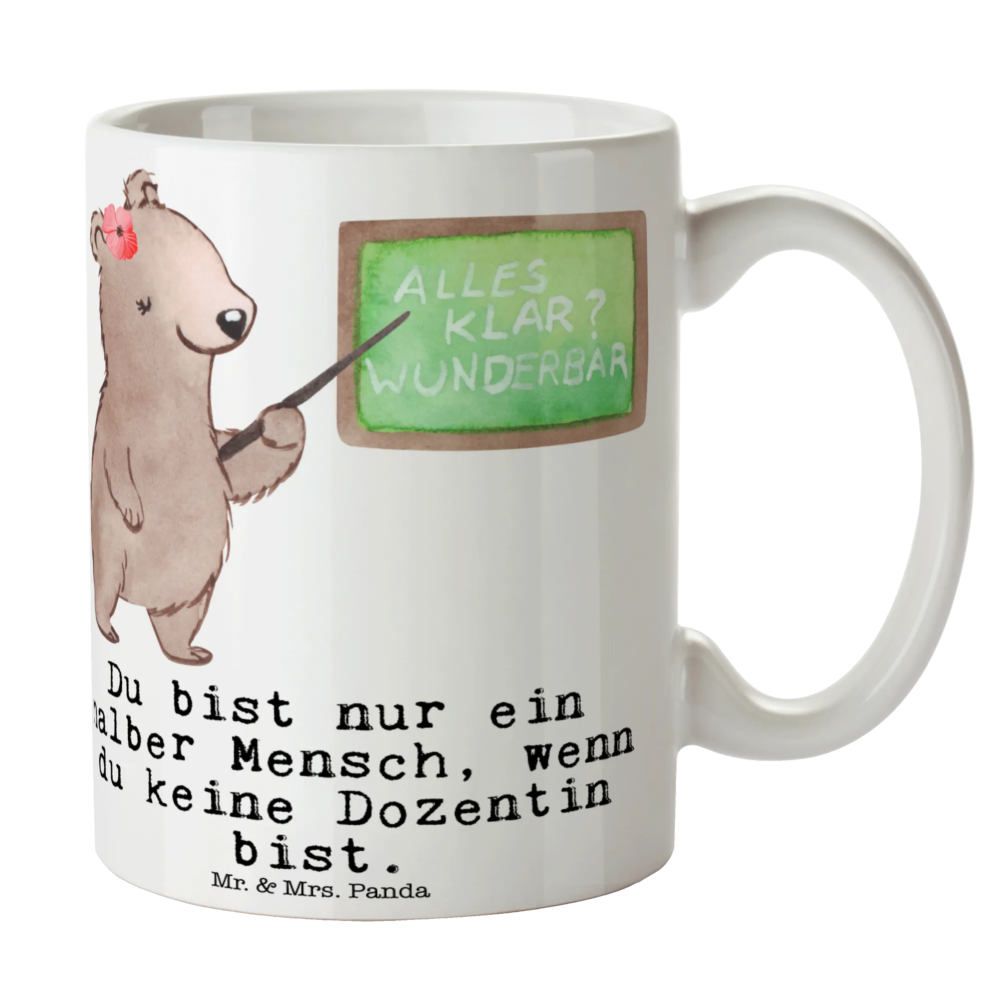 The Mr. & Mrs. Panda mug features a stunning illustration of a cute female bear standing proudly in front of a chalkboard, embodying the spirit of teaching. And let’s be honest: "Is life even worth living if you're not a lecturer?" – this playful saying is sure to elicit a smile while adding a touch of humor to those coffee breaks during lectures.
