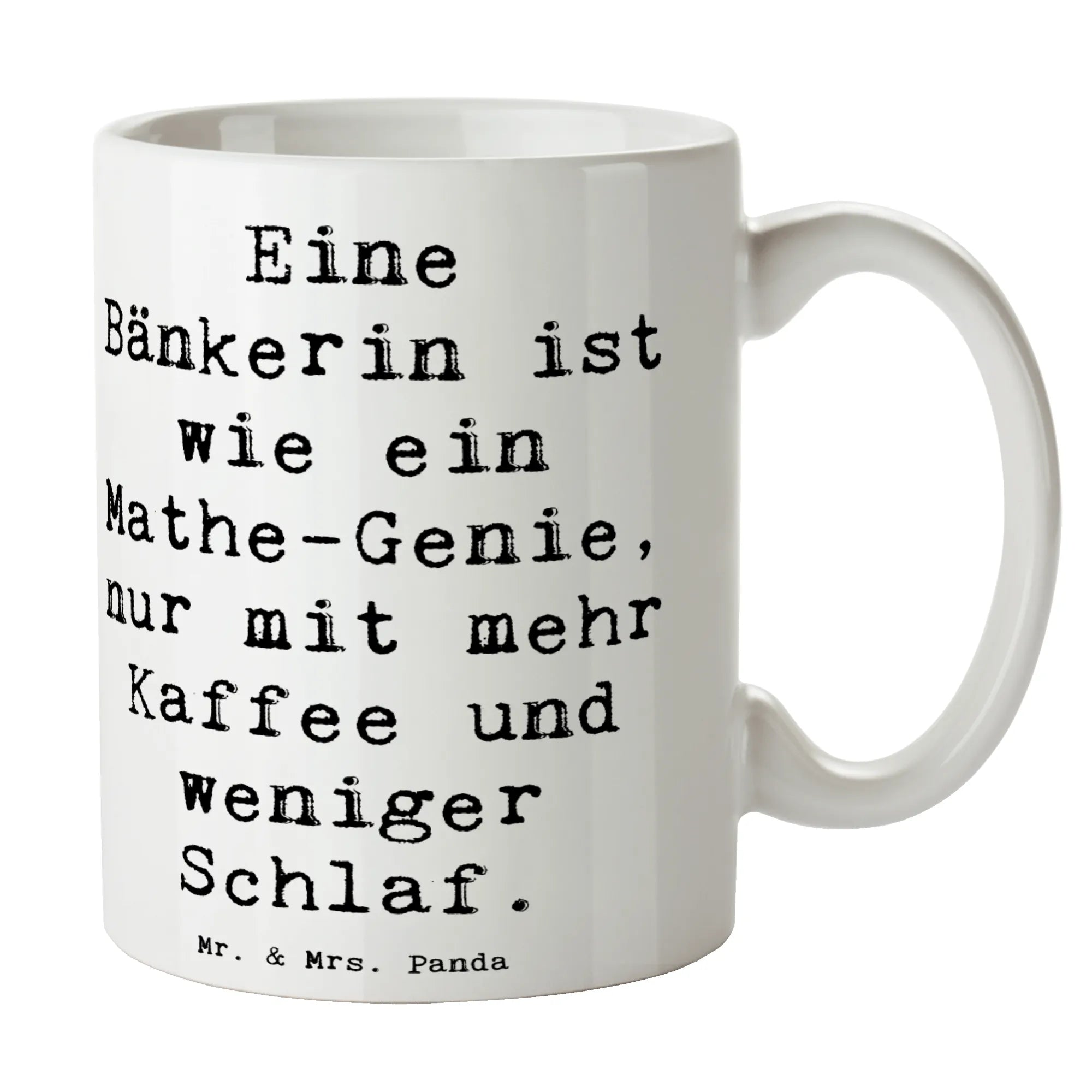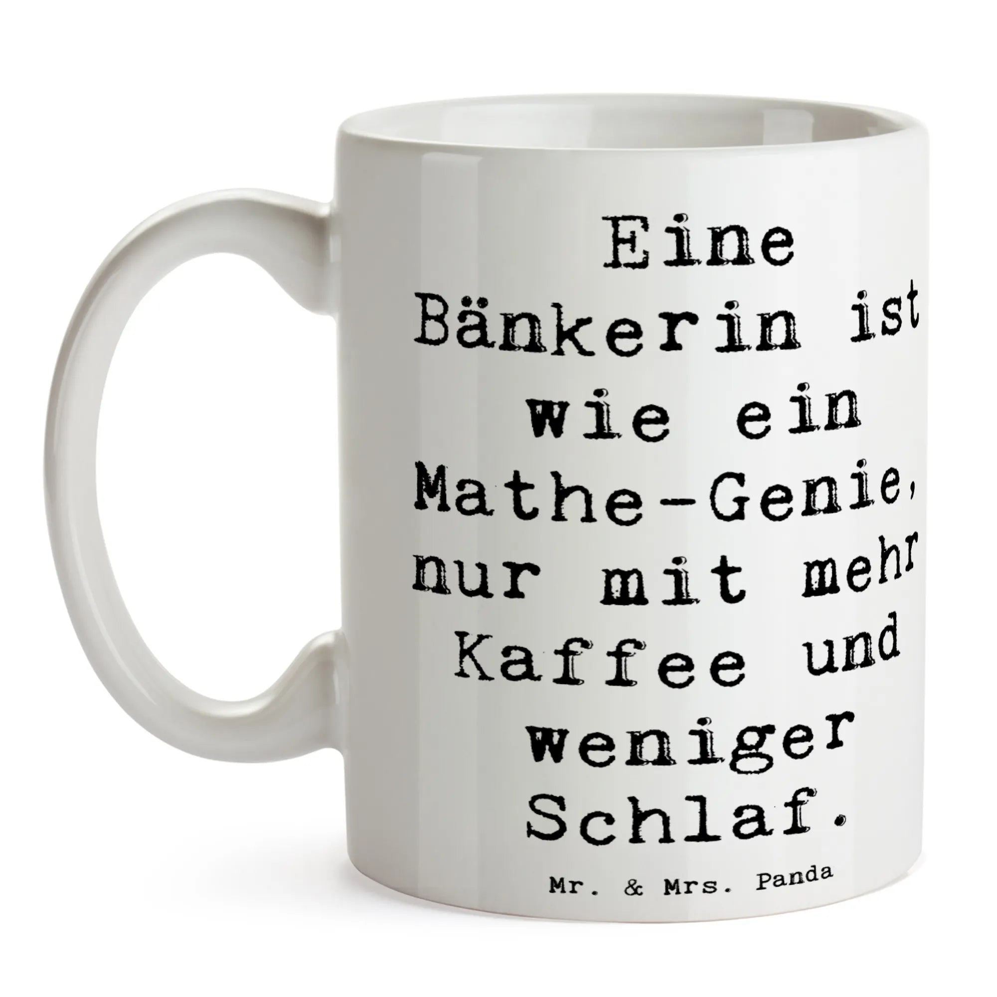 Mug Saying Eine Bänkerin ist wie ein Mathe-Genie, nur mit mehr Kaffee und weniger Schlaf. - White