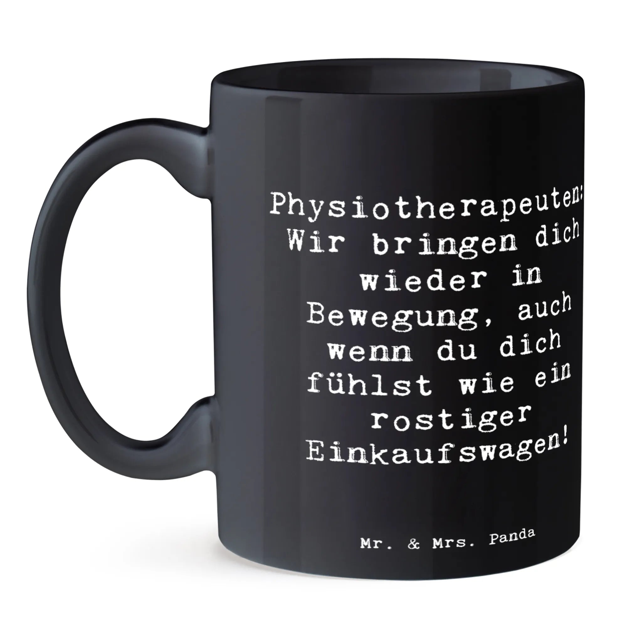 Mug Saying Physiotherapeuten: Wir bringen dich wieder in Bewegung, auch wenn du dich fühlst wie ein rostiger Einkaufswagen! - Sea Breeze