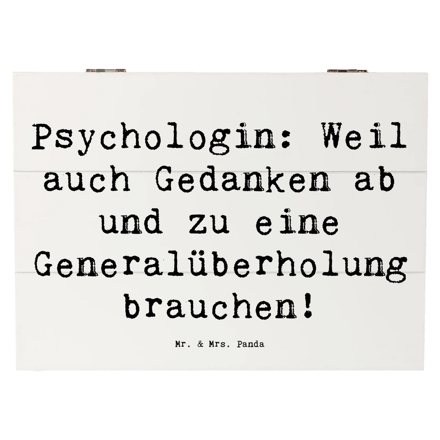 Wooden chest Saying Psychologin: Weil auch Gedanken ab und zu eine Generalüberholung brauchen! - 25 x 18 cm - White