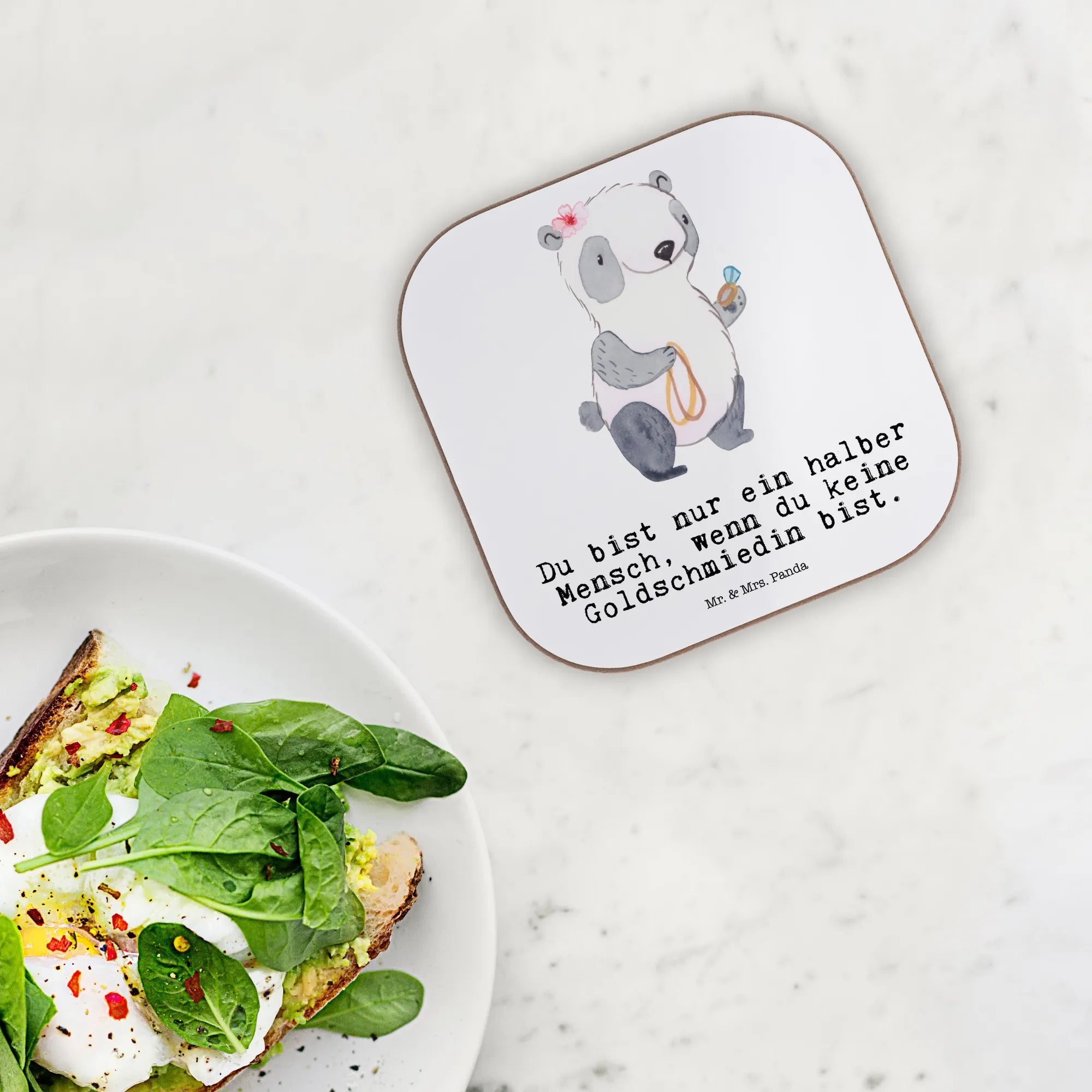 Here's our adorable panda, a skillful goldsmith bringing sparkle and joy into the world! With her slogan 'Is life even worth living if you're not a goldsmith?', she captures the essence of what it means to create. The delicate pieces of gold jewelry she holds are more than mere objects; they represent dreams, passion, and the art of transforming ideas into reality. This motif invites you to revel in the beauty of craftsmanship, to appreciate the little joys that come from creating something with your own two paws. Our panda isn't just here to show you gold; she's inviting you to explore your artistic side, to find inspiration in every corner of your life.