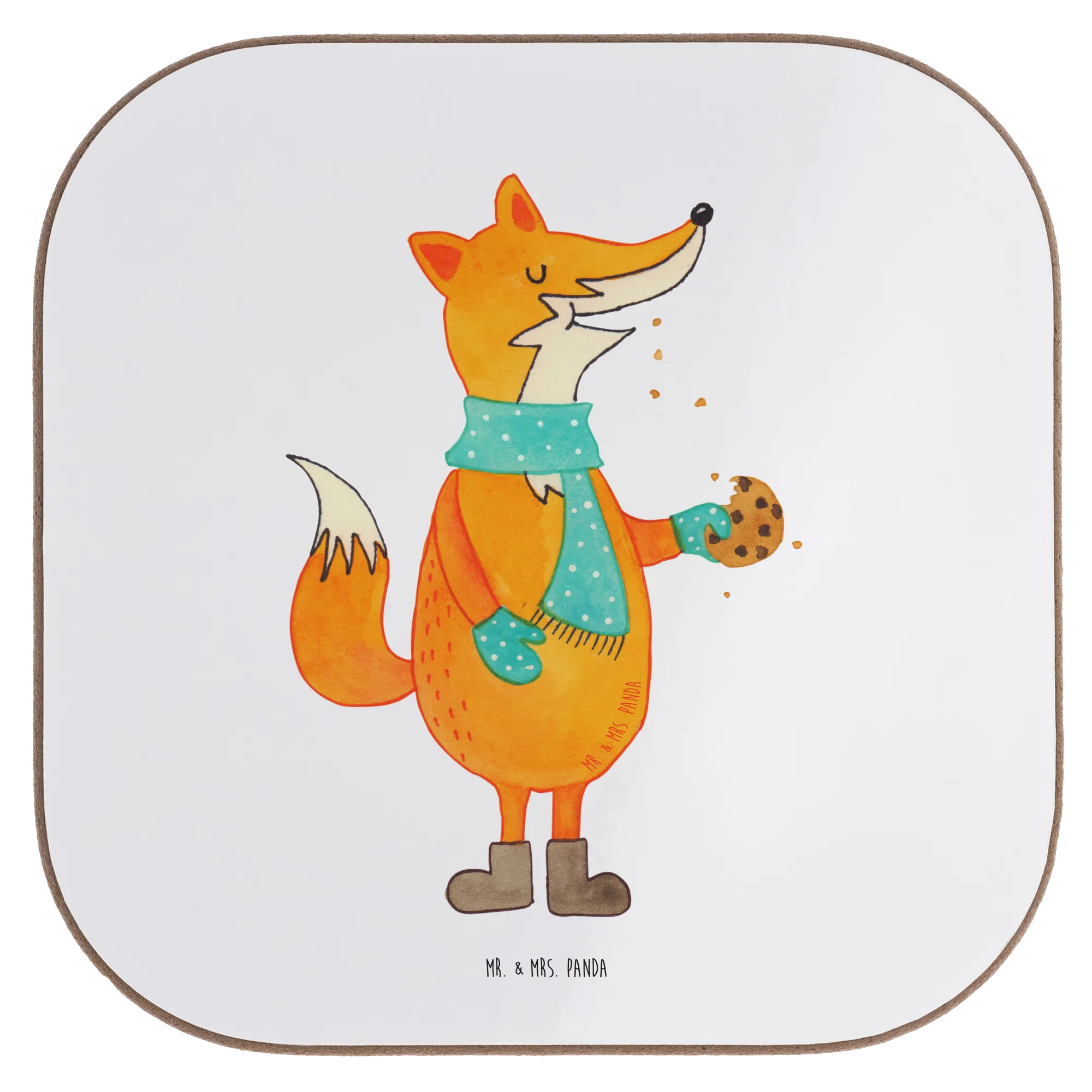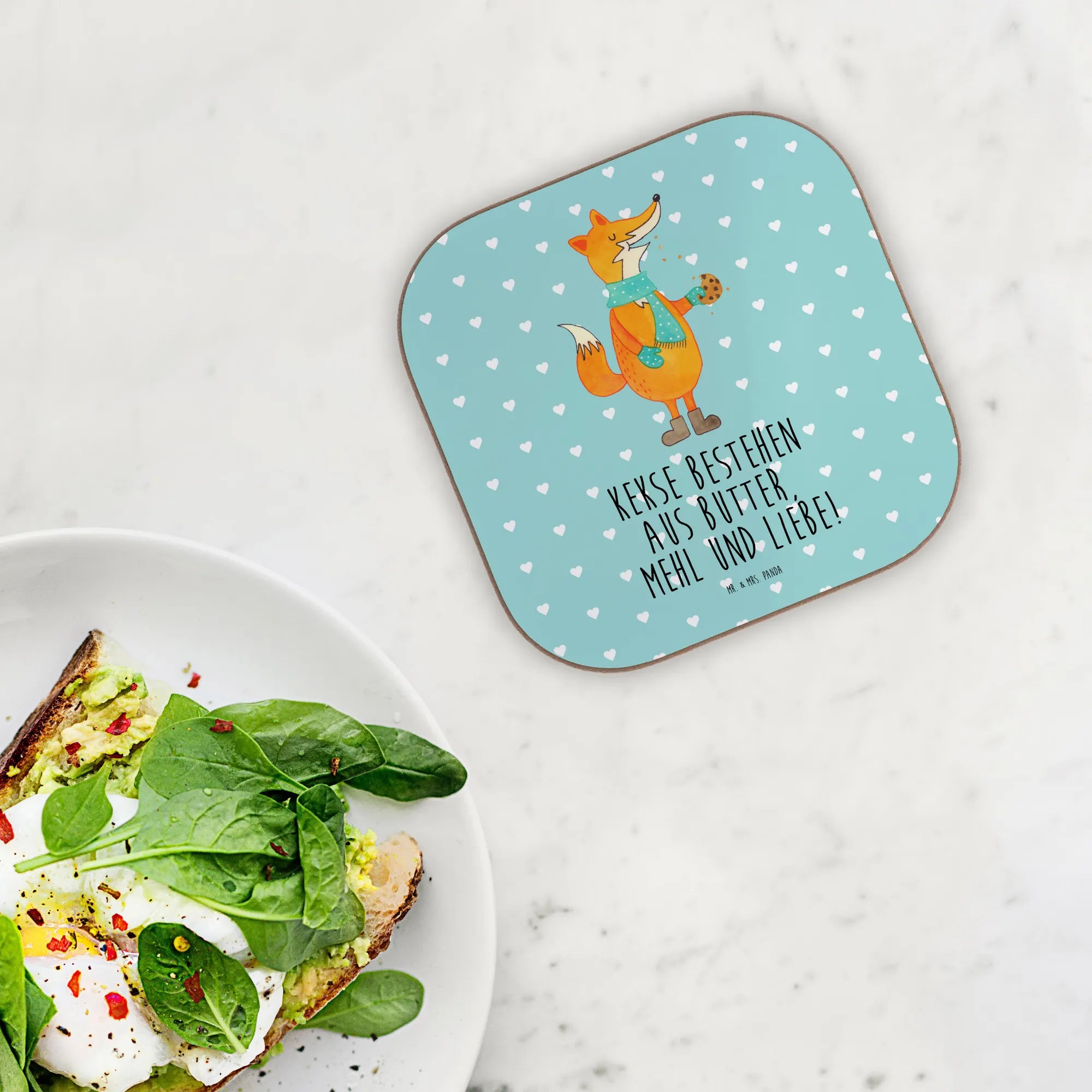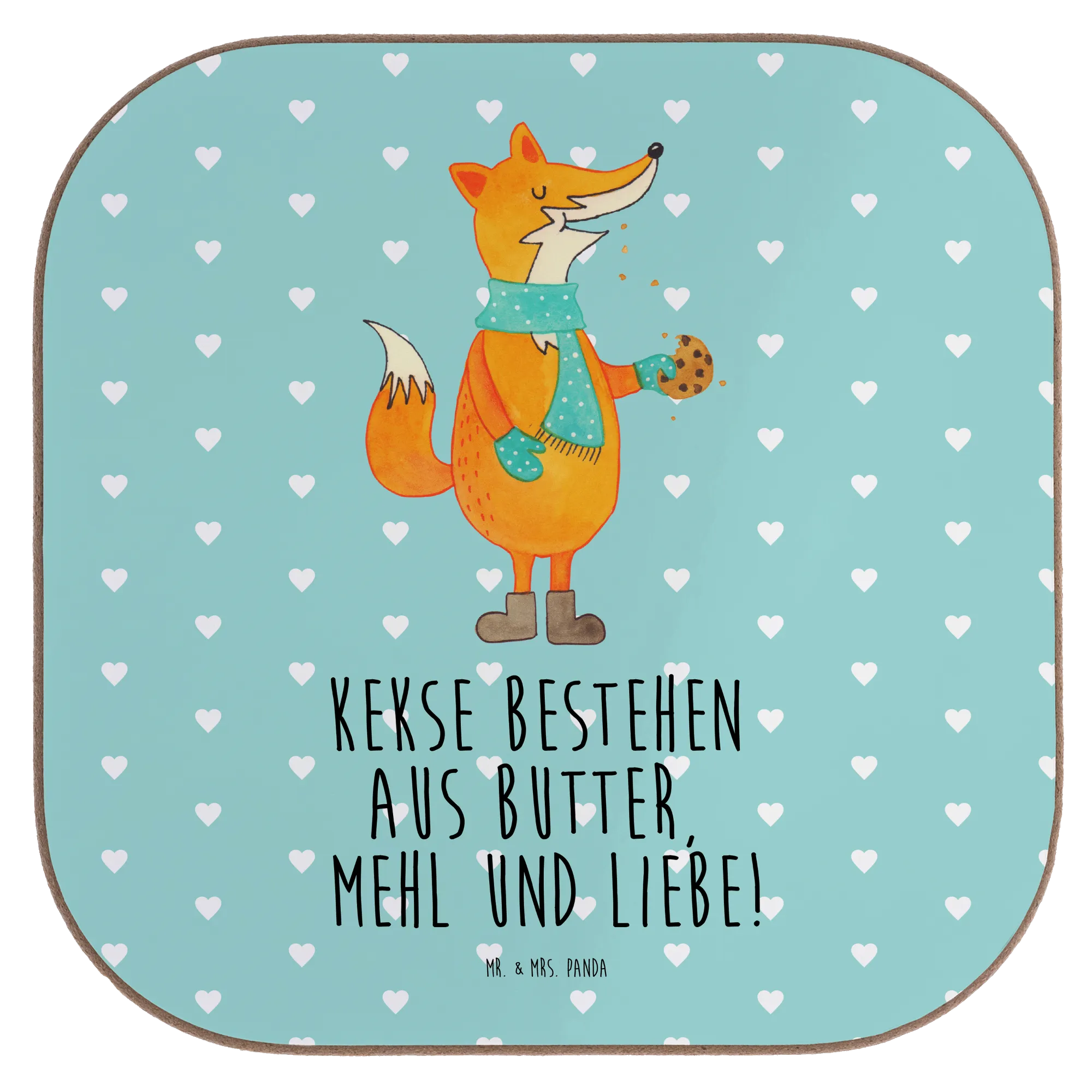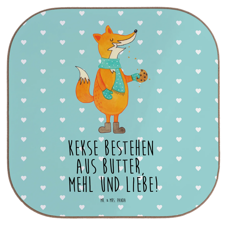 Square coaster Fox biscuit - with saying - Turquoise Pastel