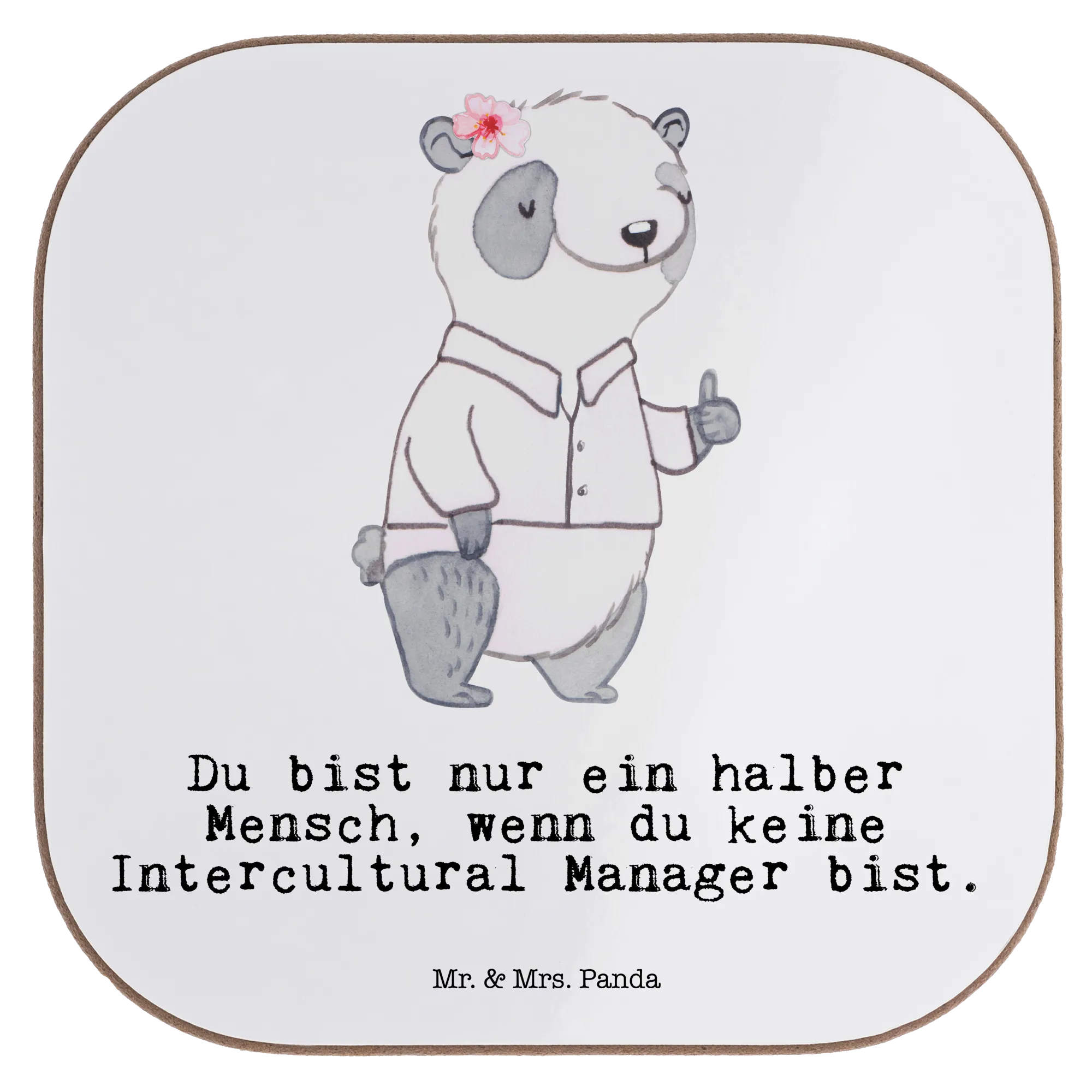 Square coaster Intercultural Manager heart – Mr. & Mrs. Panda