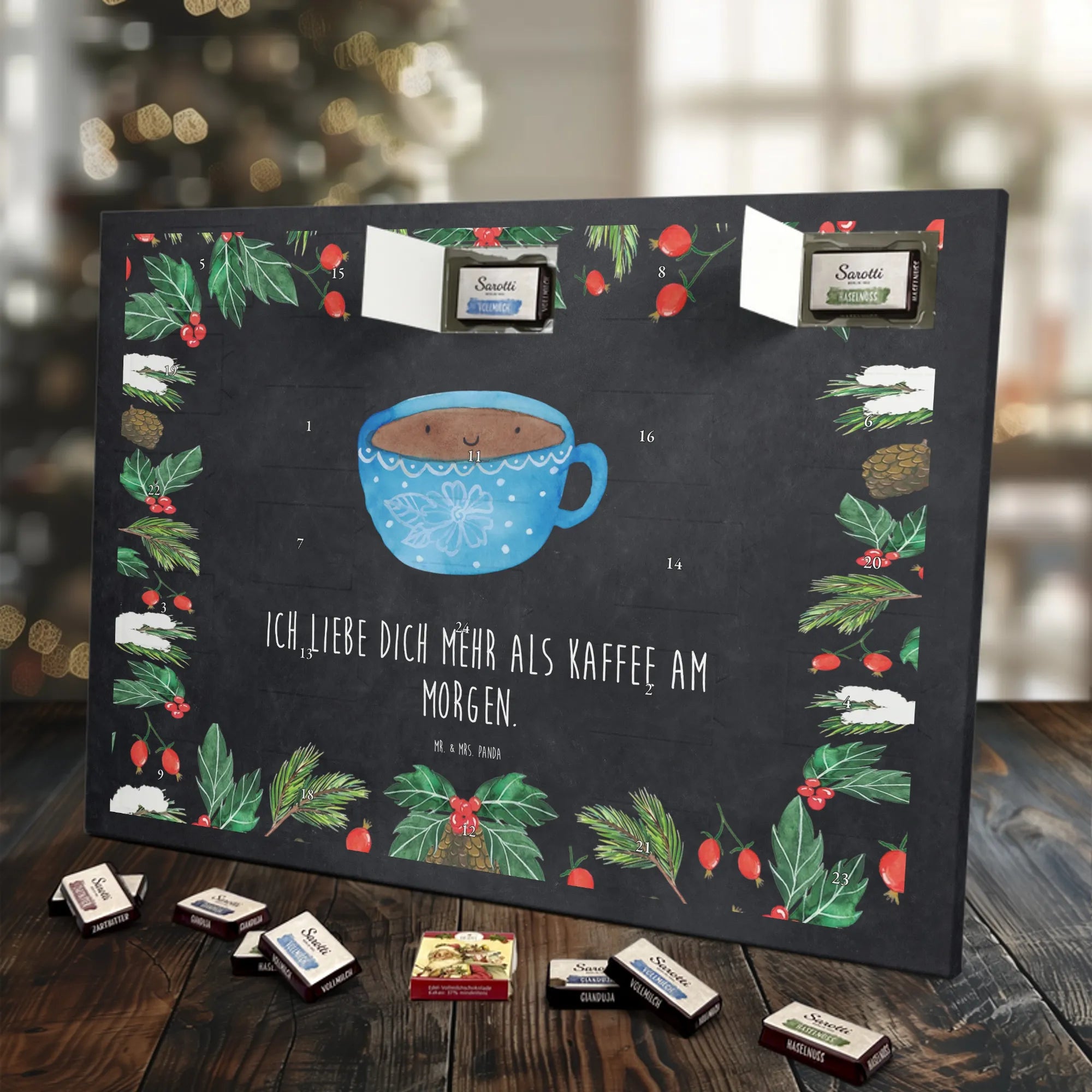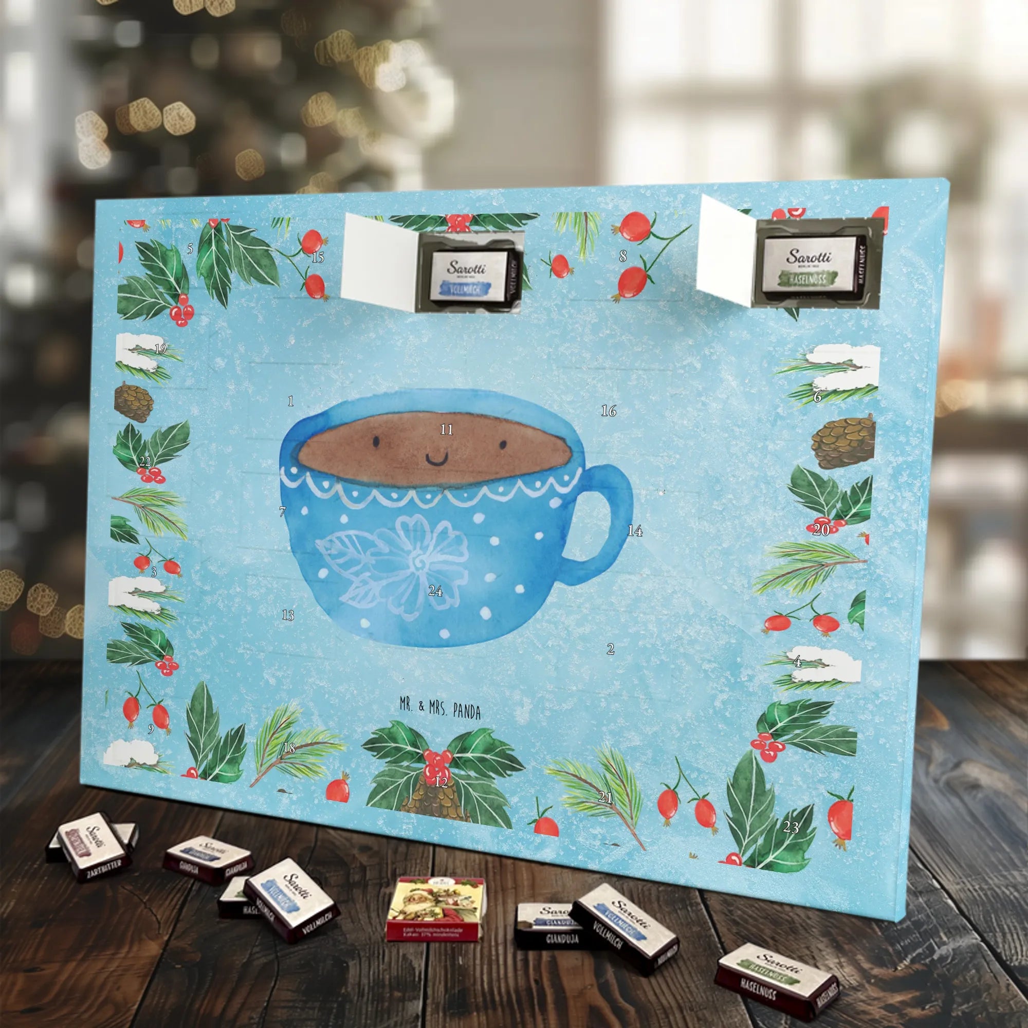 Chocolate advent calendar Coffee Cup - Classic - with saying - Ice Blue