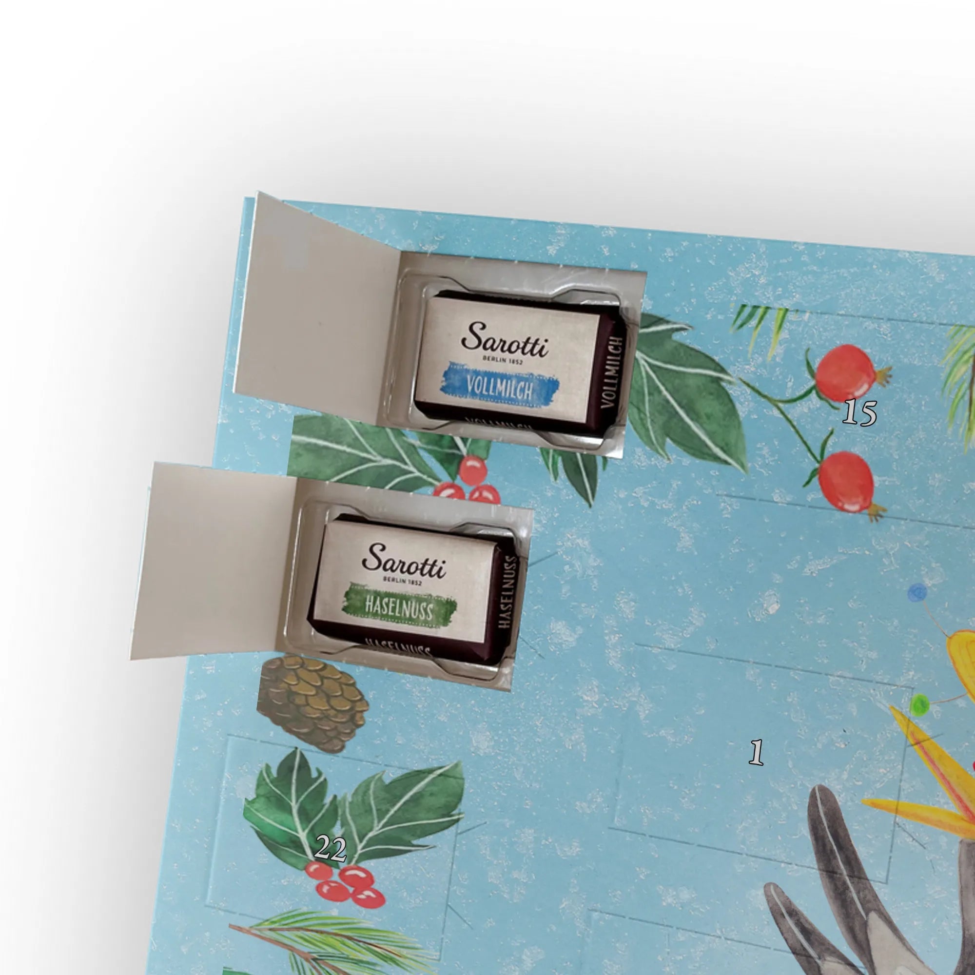 Chocolate advent calendar Crow sombrero - Classic - with saying - Ice Blue