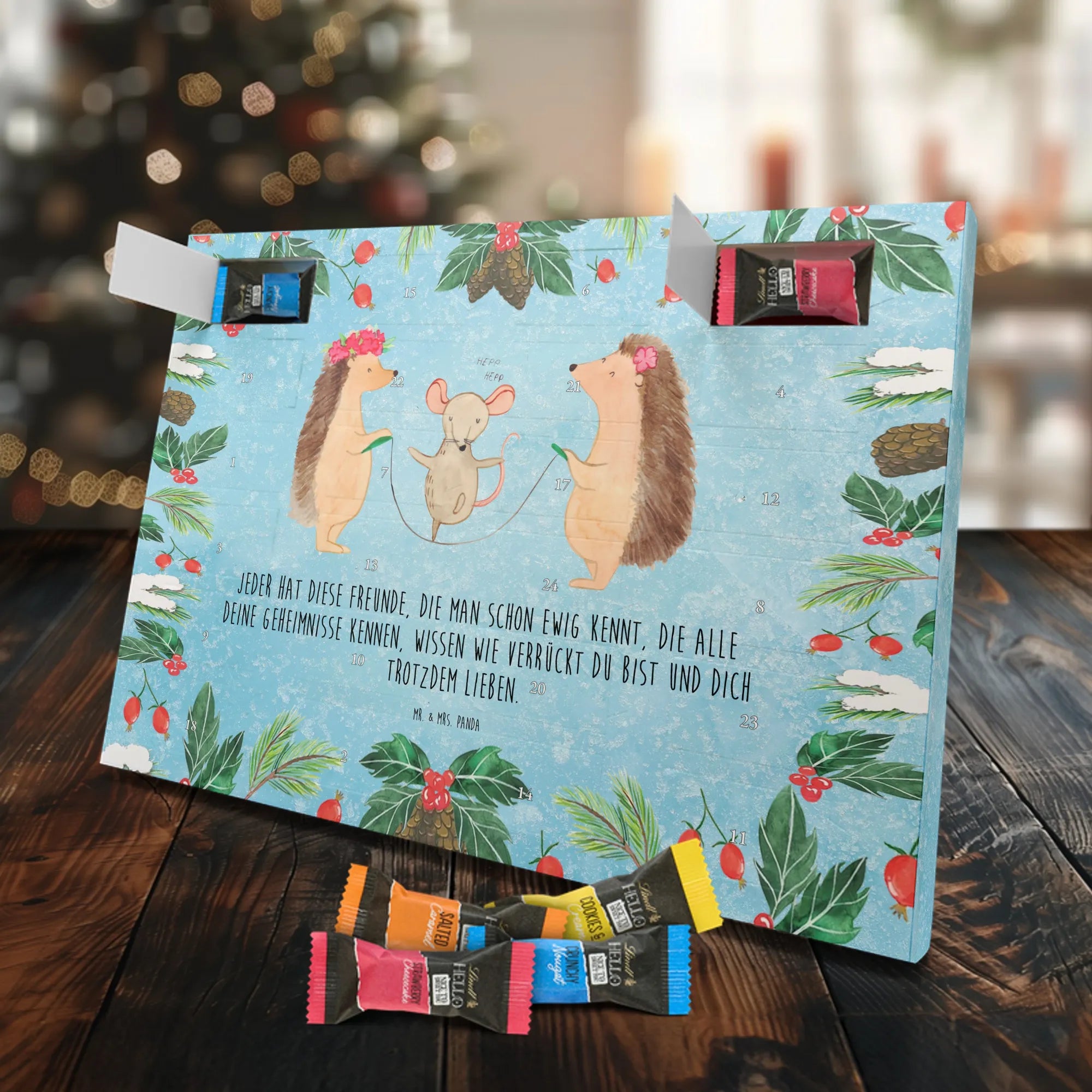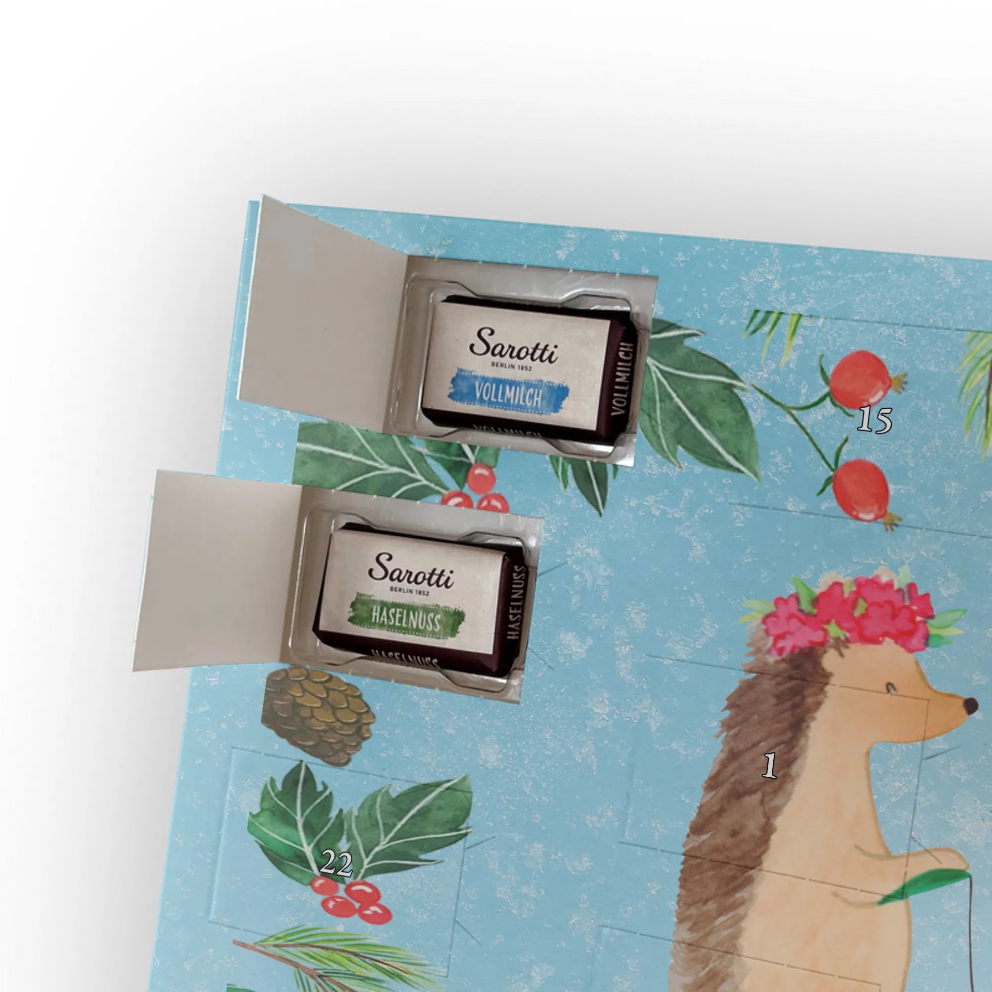 Chocolate advent calendar Hedgehog skipping - Classic - with saying - Ice Blue