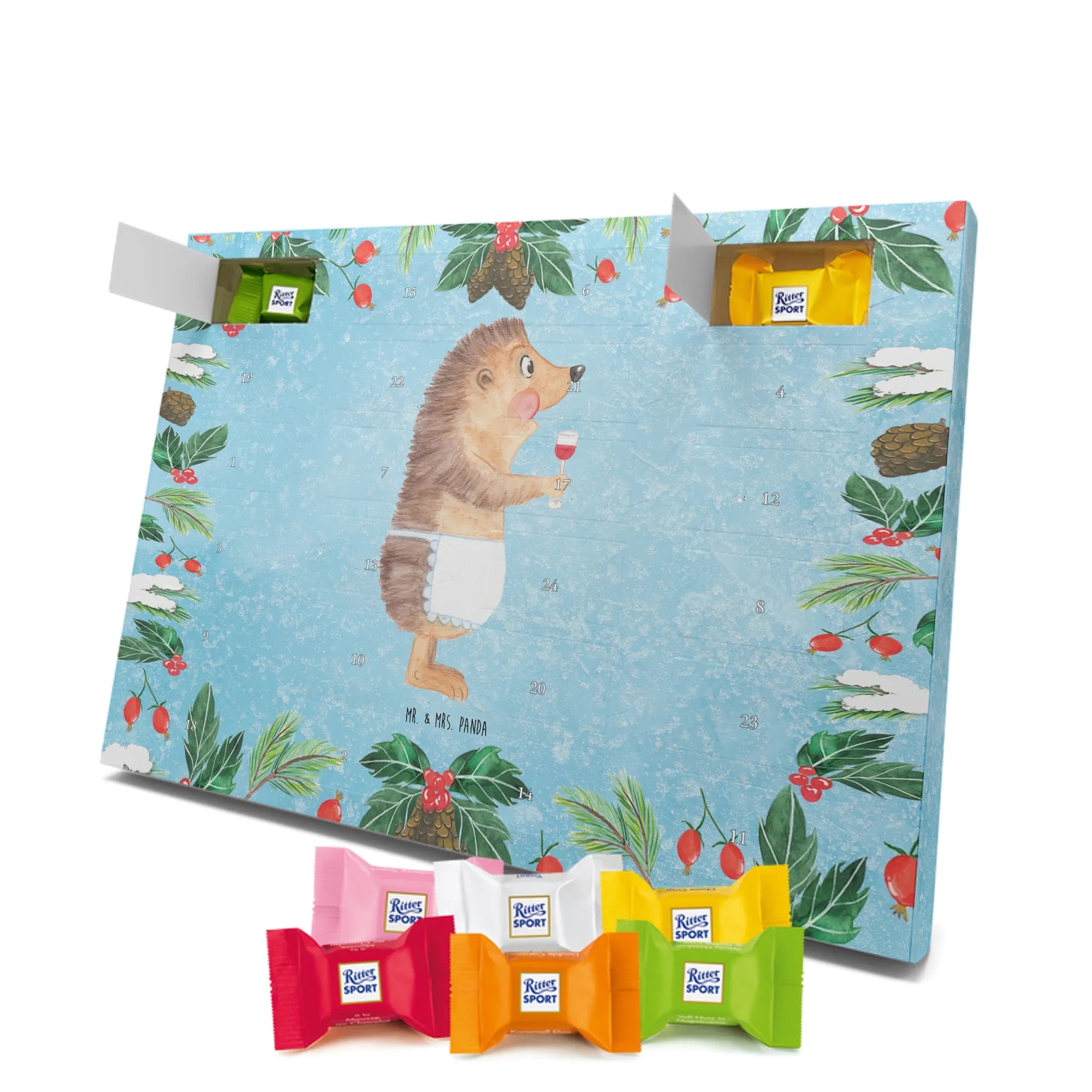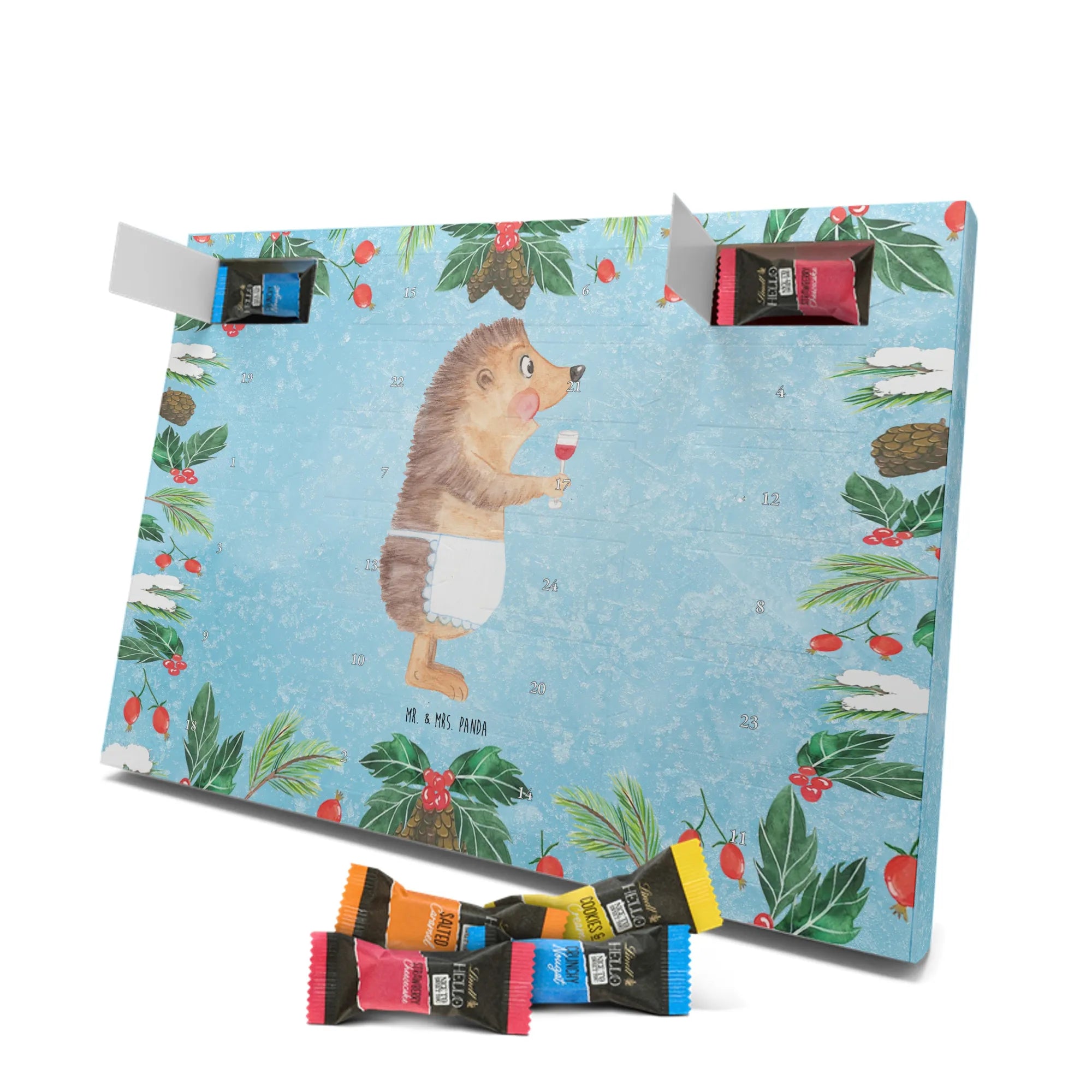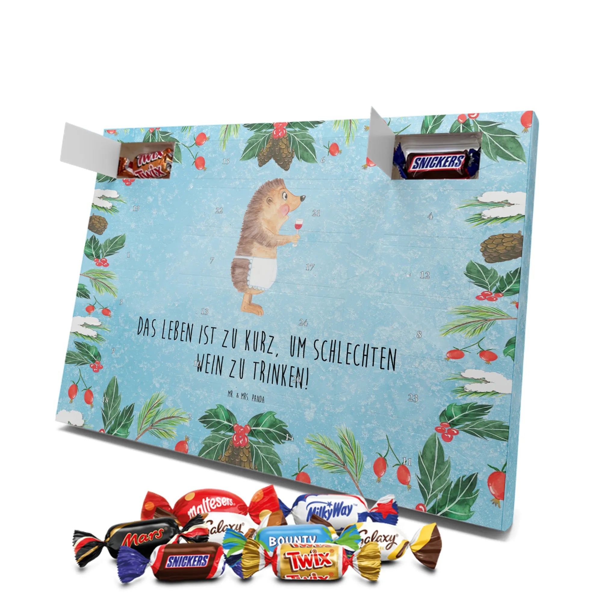 Chocolate advent calendar Hedgehog wine - Classic - with saying - Ice Blue