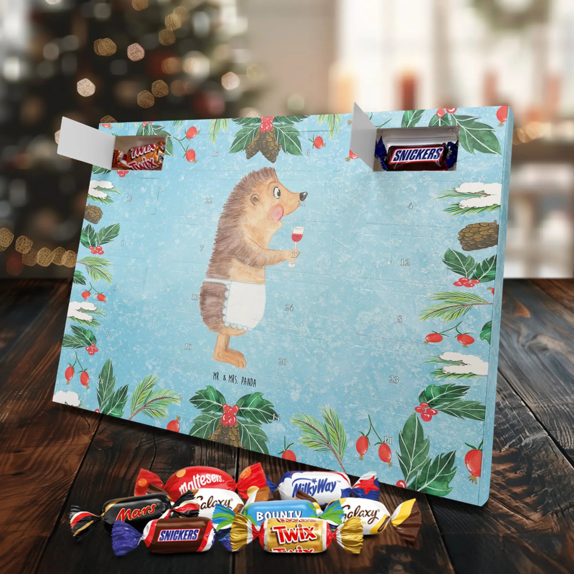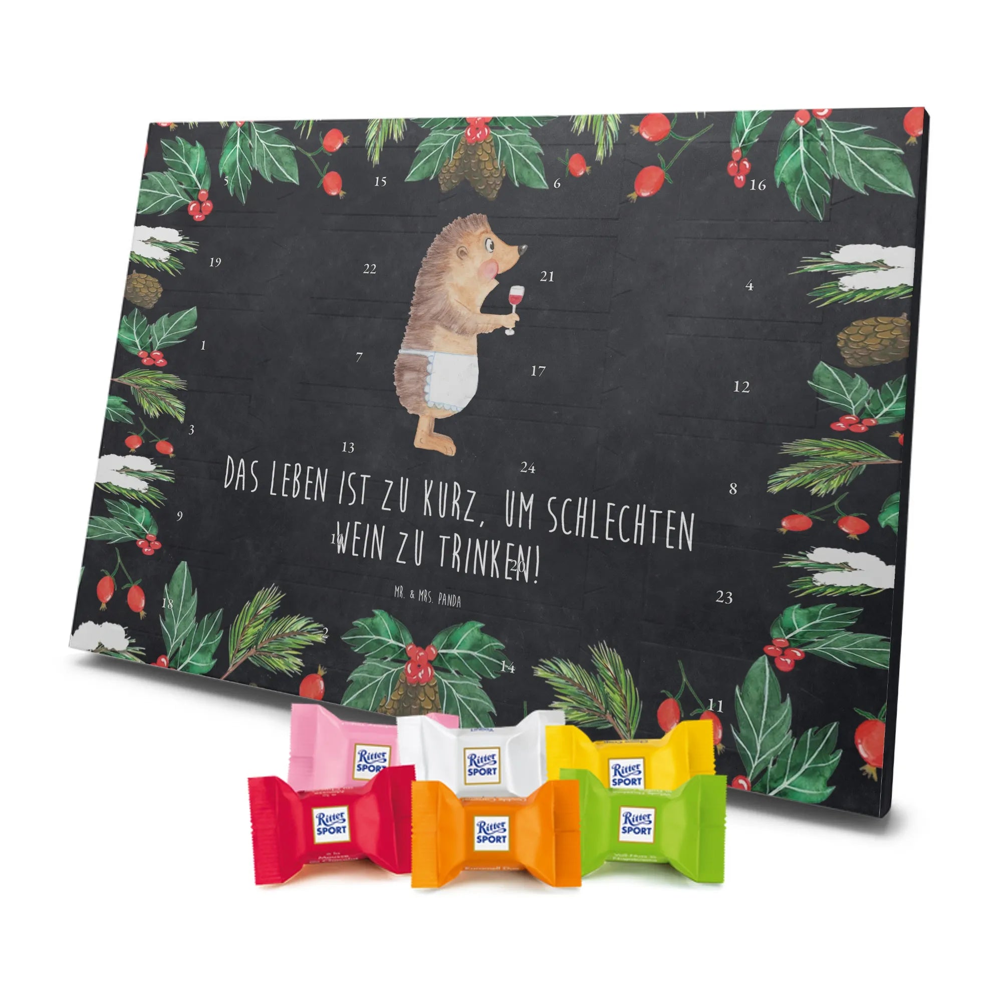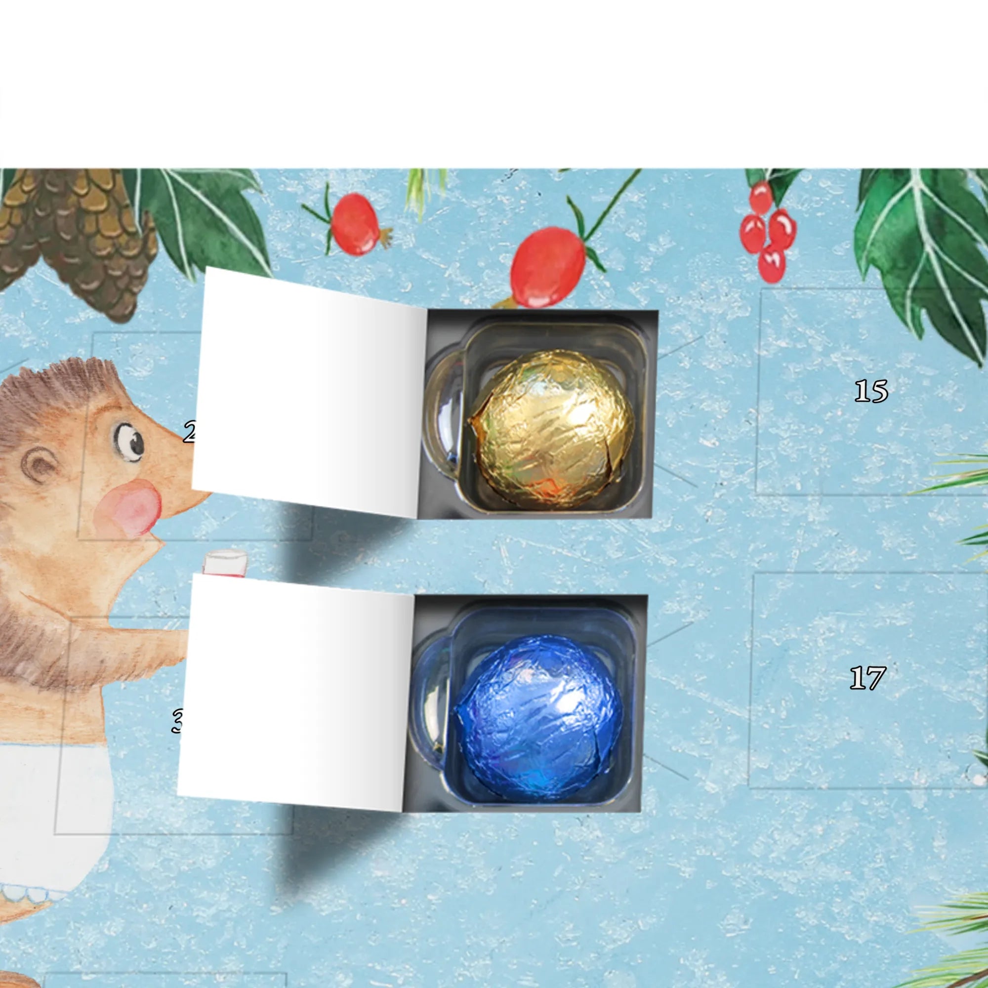 Chocolate advent calendar Hedgehog wine - Classic - with saying - Ice Blue