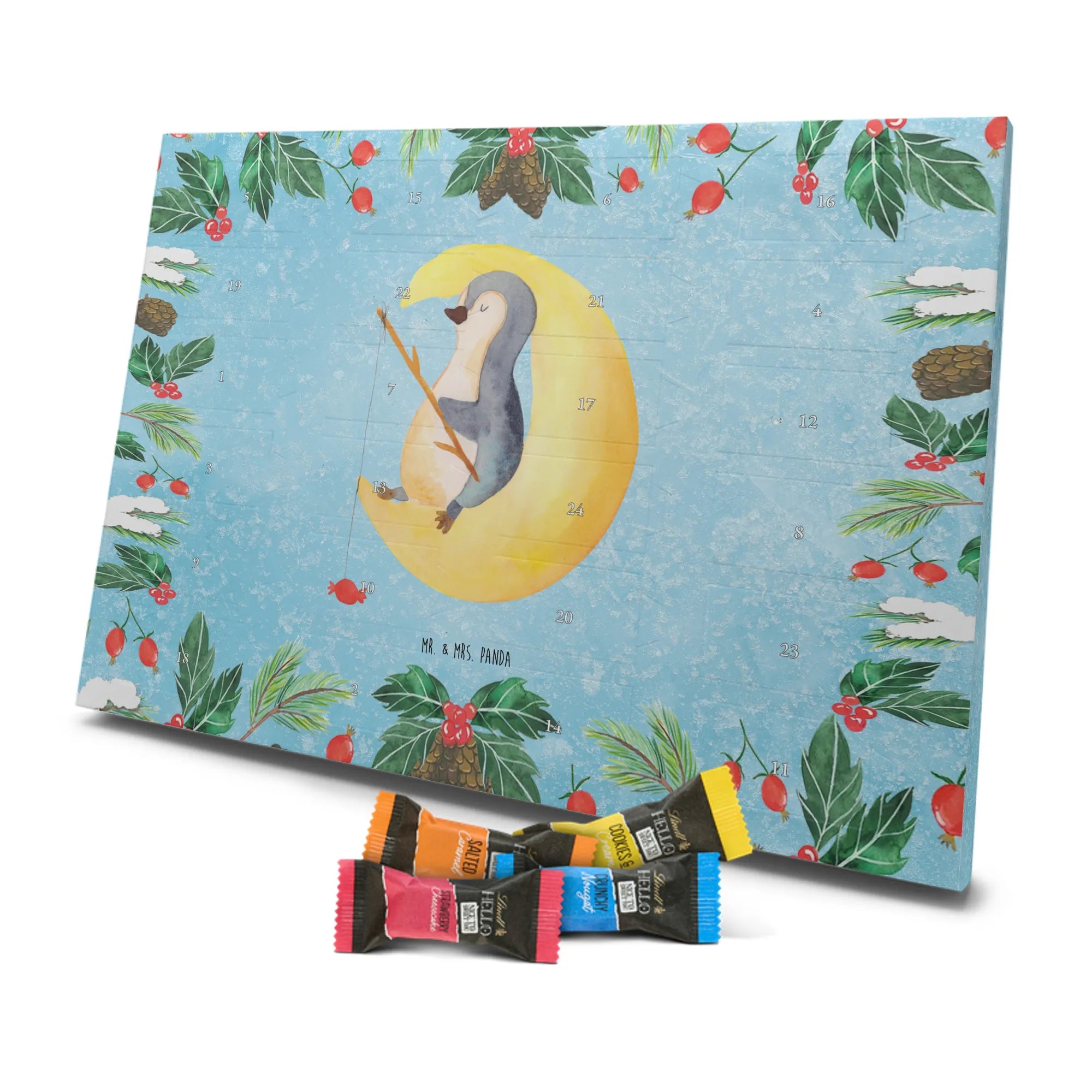 Chocolate advent calendar Penguin moon - Classic - with saying - Ice Blue
