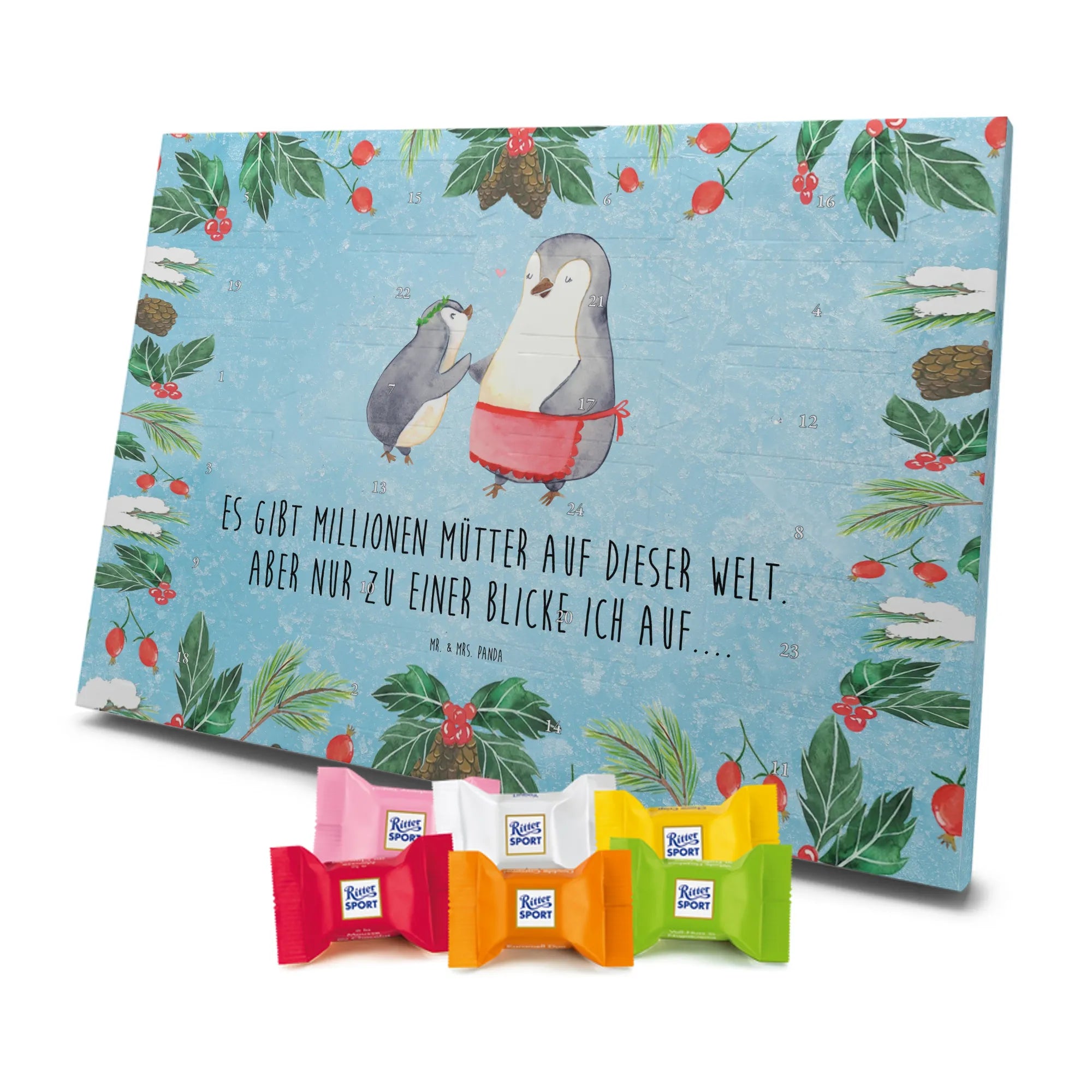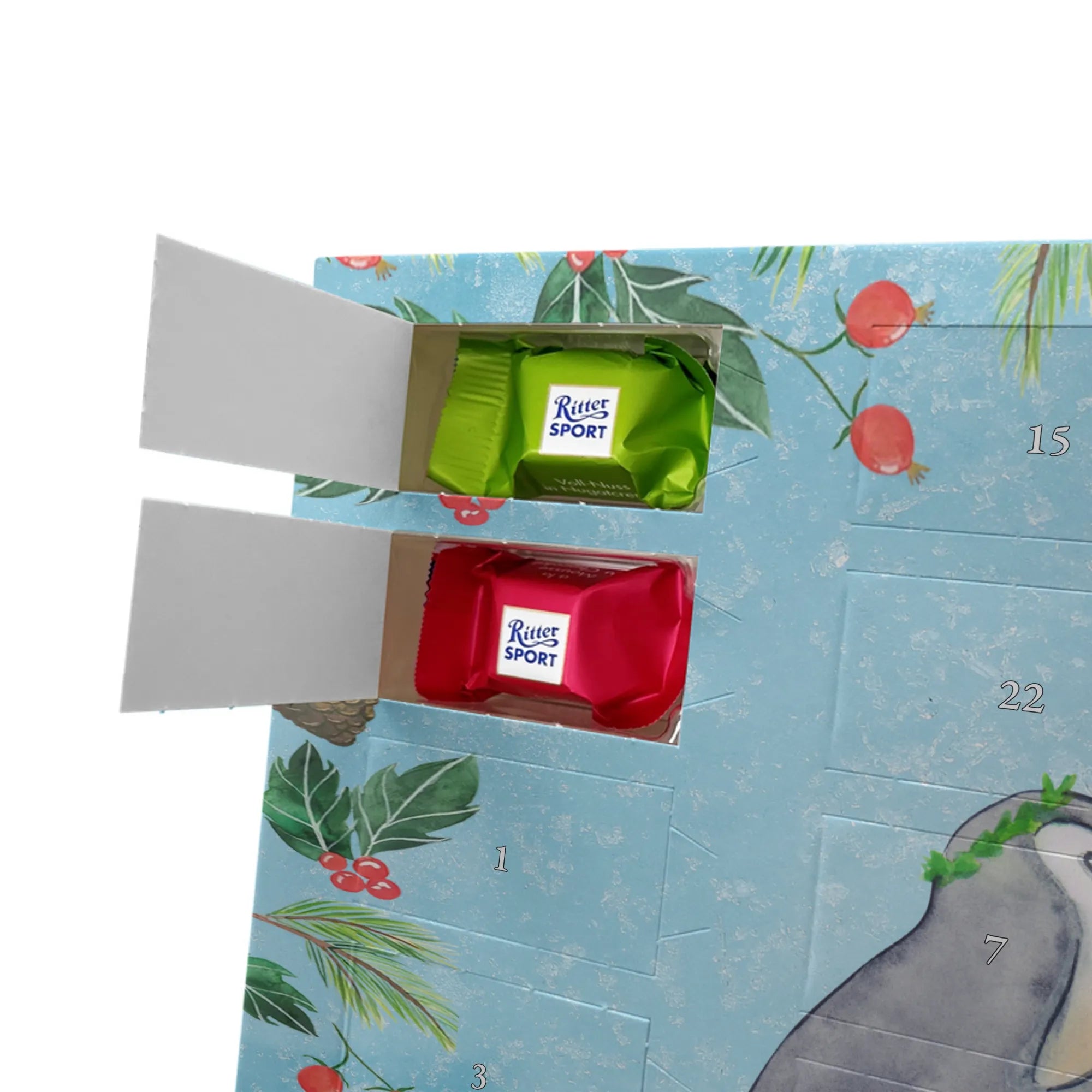 Chocolate advent calendar Penguin with child - Classic - with saying - Ice Blue