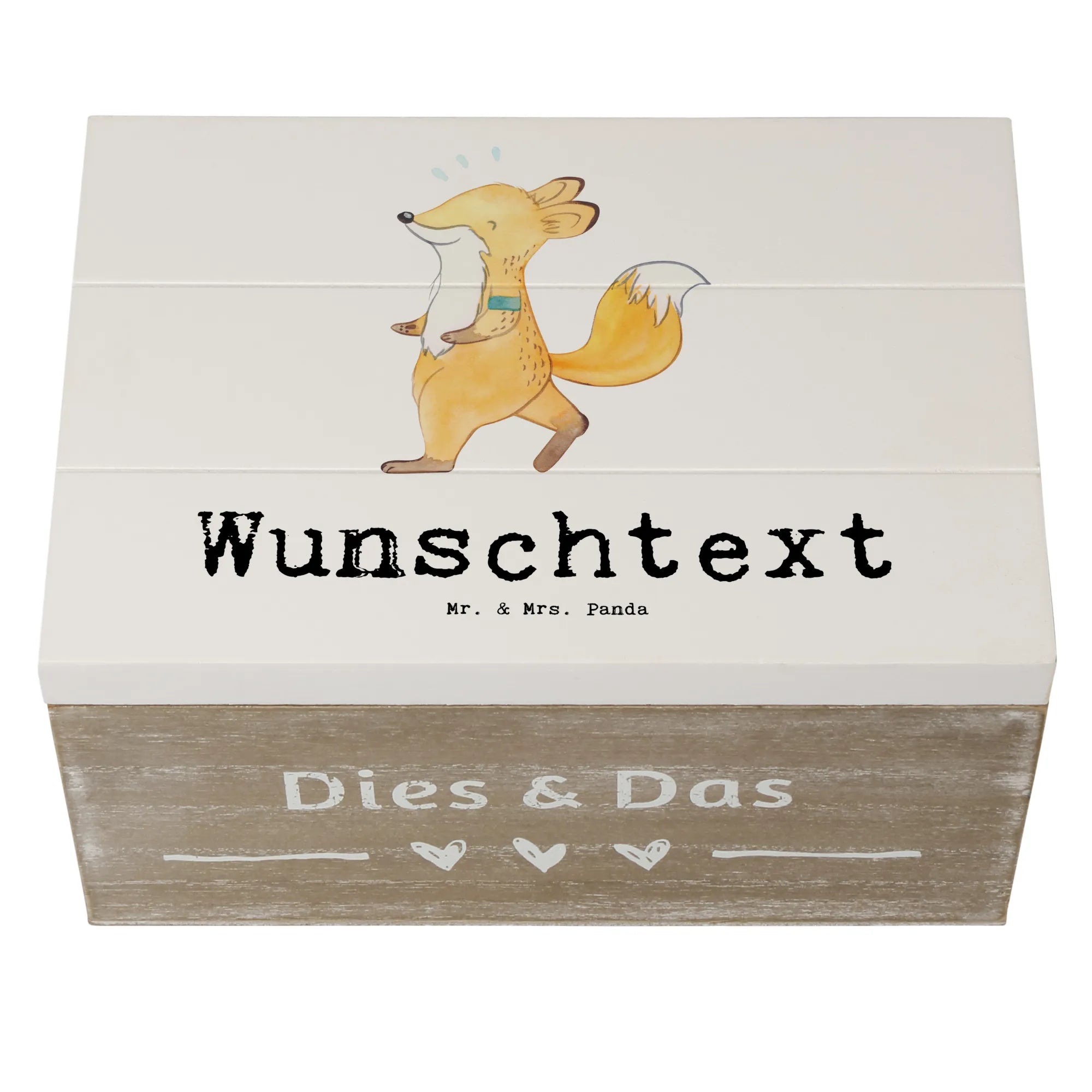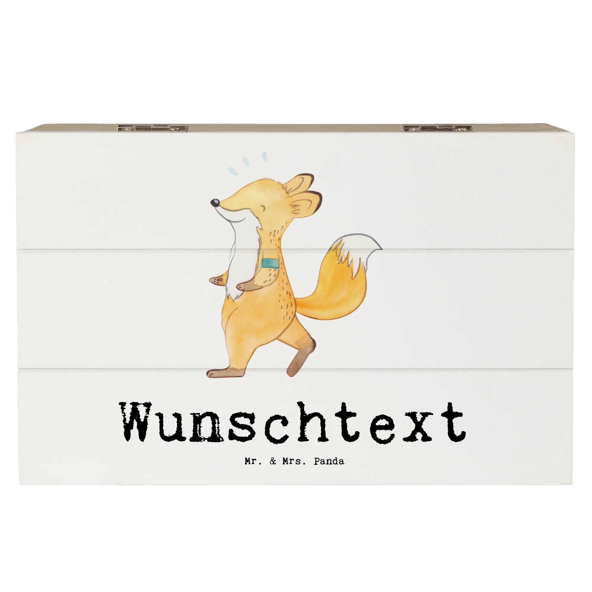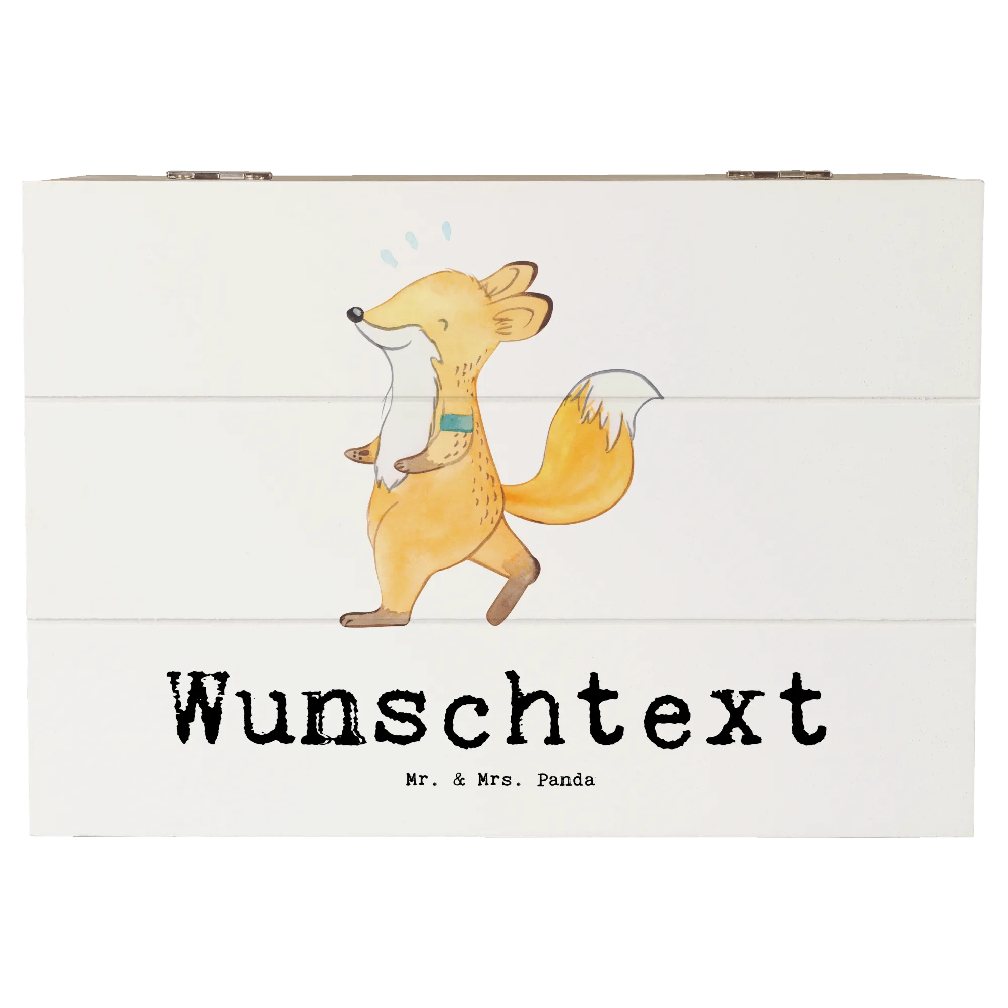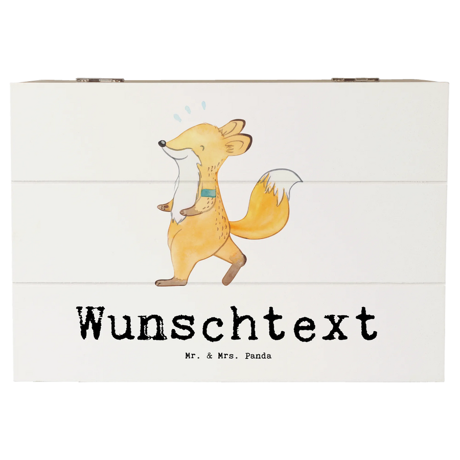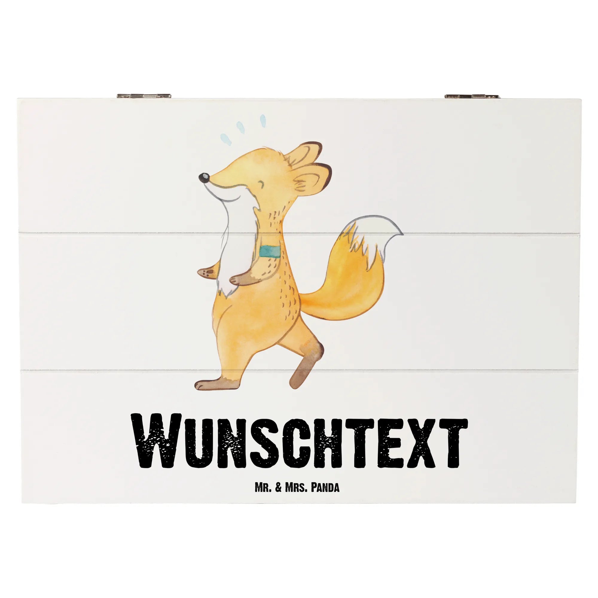 Personalised wooden chest Fox Jog - 22 x 15 cm - White