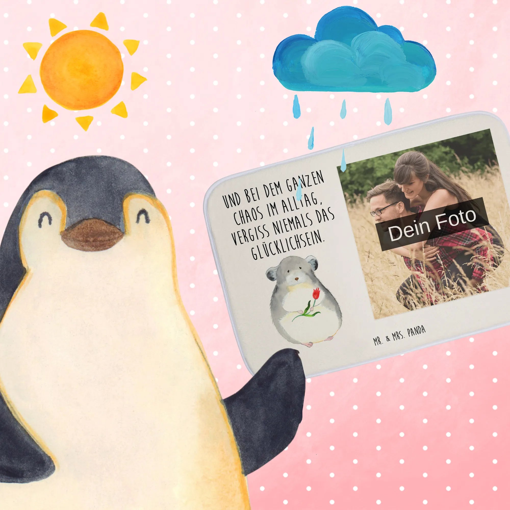 Mach dein Badezimmer zu einem ganz besonderen Ort mit unserer personalisierten Foto Badematte von Mr. & Mrs. Panda! Diese Badematte ist nicht nur ein praktischer Helfer, sondern auch ein echter Hingucker. Mit einer Größe von 590 mm x 400 mm sorgt sie für ein angenehmes Gefühl an den Füßen. Über die flauschige Premium Kunstfaser kannst du dein Lieblingsfoto drucken lassen, sodass du jeden Tag ein Stück deiner schönsten Erinnerungen beim Betreten des Badezimmers genießen kannst. Die besondere Antirutsch Gummibeschichtung macht die Matte besonders sicher, sodass du dir keine Sorgen um Ausrutscher machen musst. Die liebevolle Gestaltung und die hohe Saugfähigkeit der Matte machen sie zu einem Must-Have für jedes Badezimmer. Beachte beim Hochladen deines Fotos, dass es in hoher Qualität vorliegt und gut ins Bildformat passt. Dein Badezimmer wird mit dieser personalisierten Matte nicht nur sichtbarer, sondern auch einladender. Pflege sie einfach bei 30°C in der Waschmaschine und genieße den Komfort, den sie dir bietet!