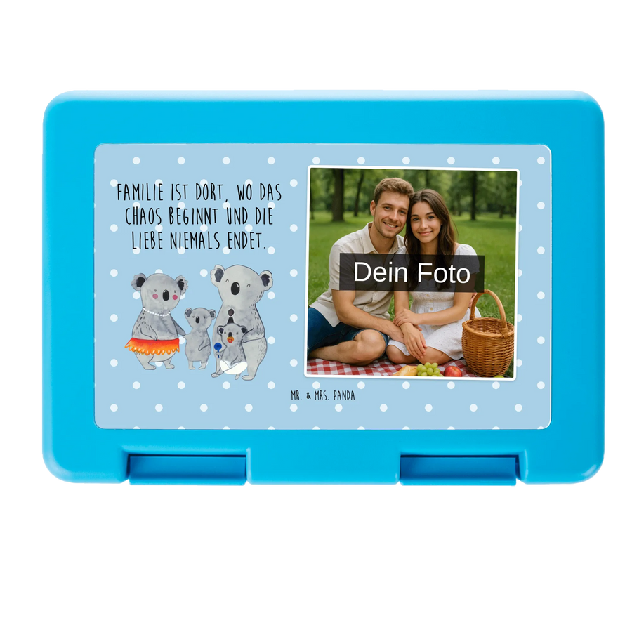 Personalisierte Foto Brotdose Koala Familie - Blau Pastell
