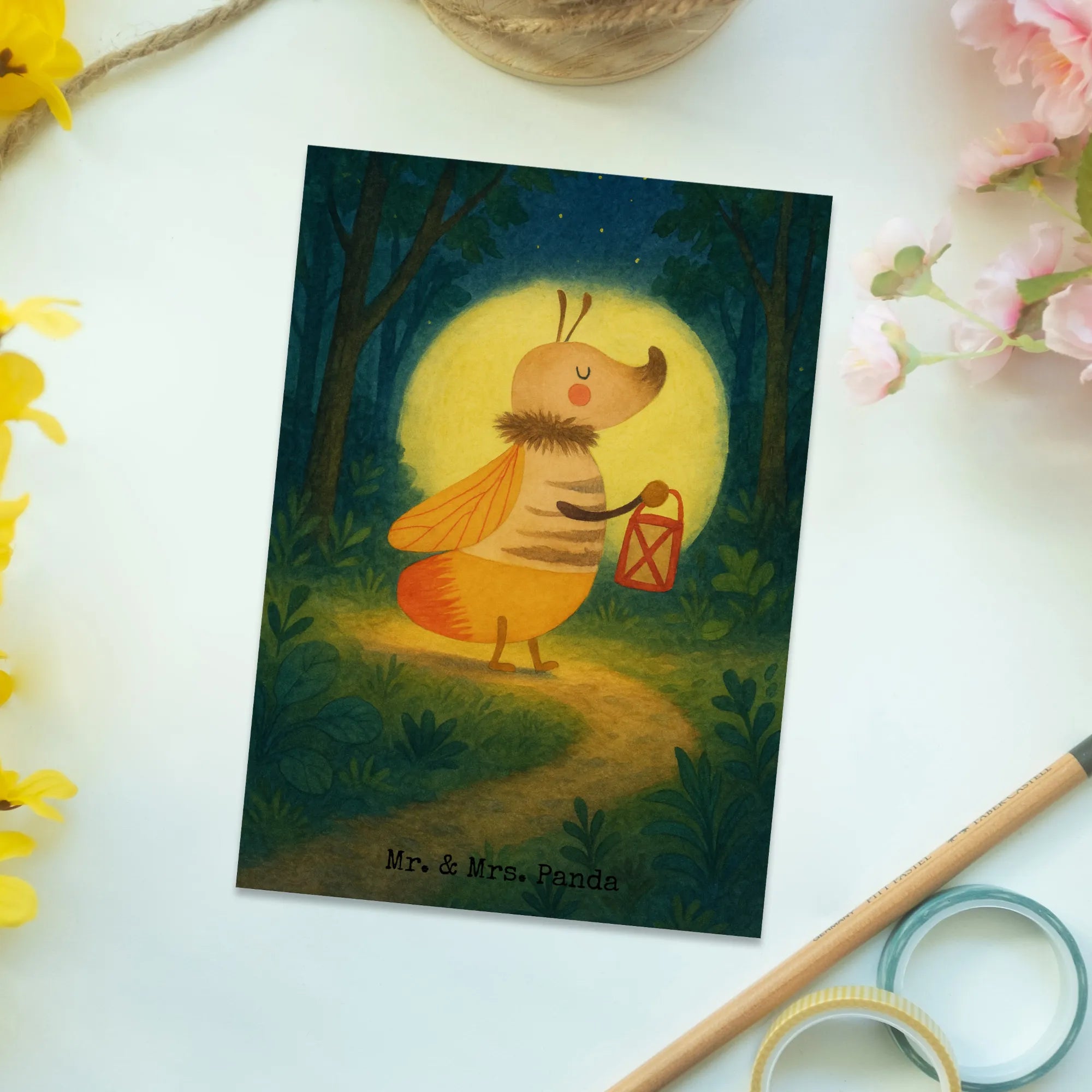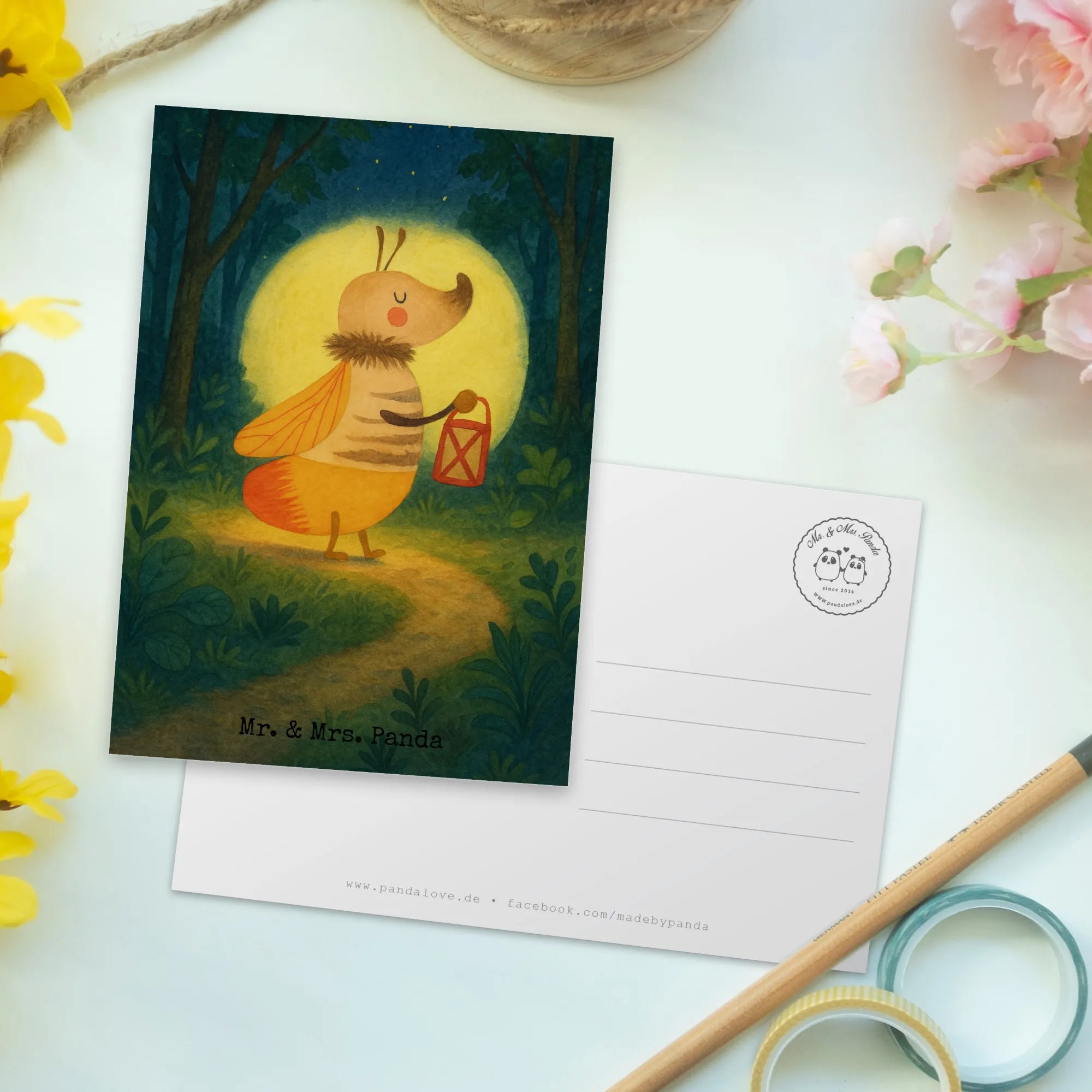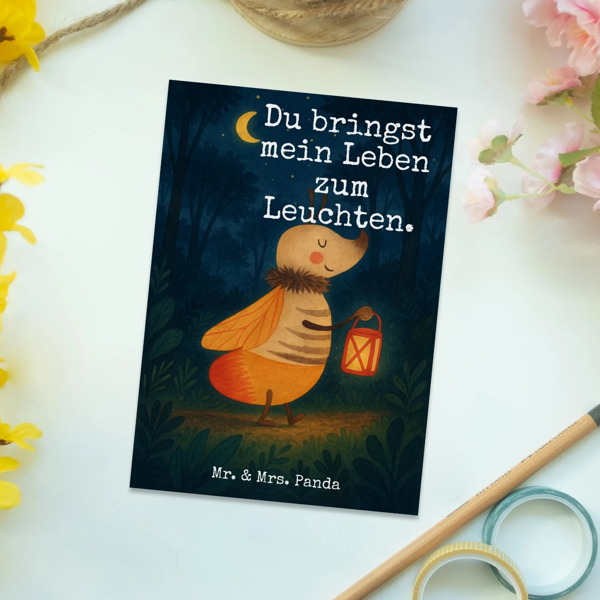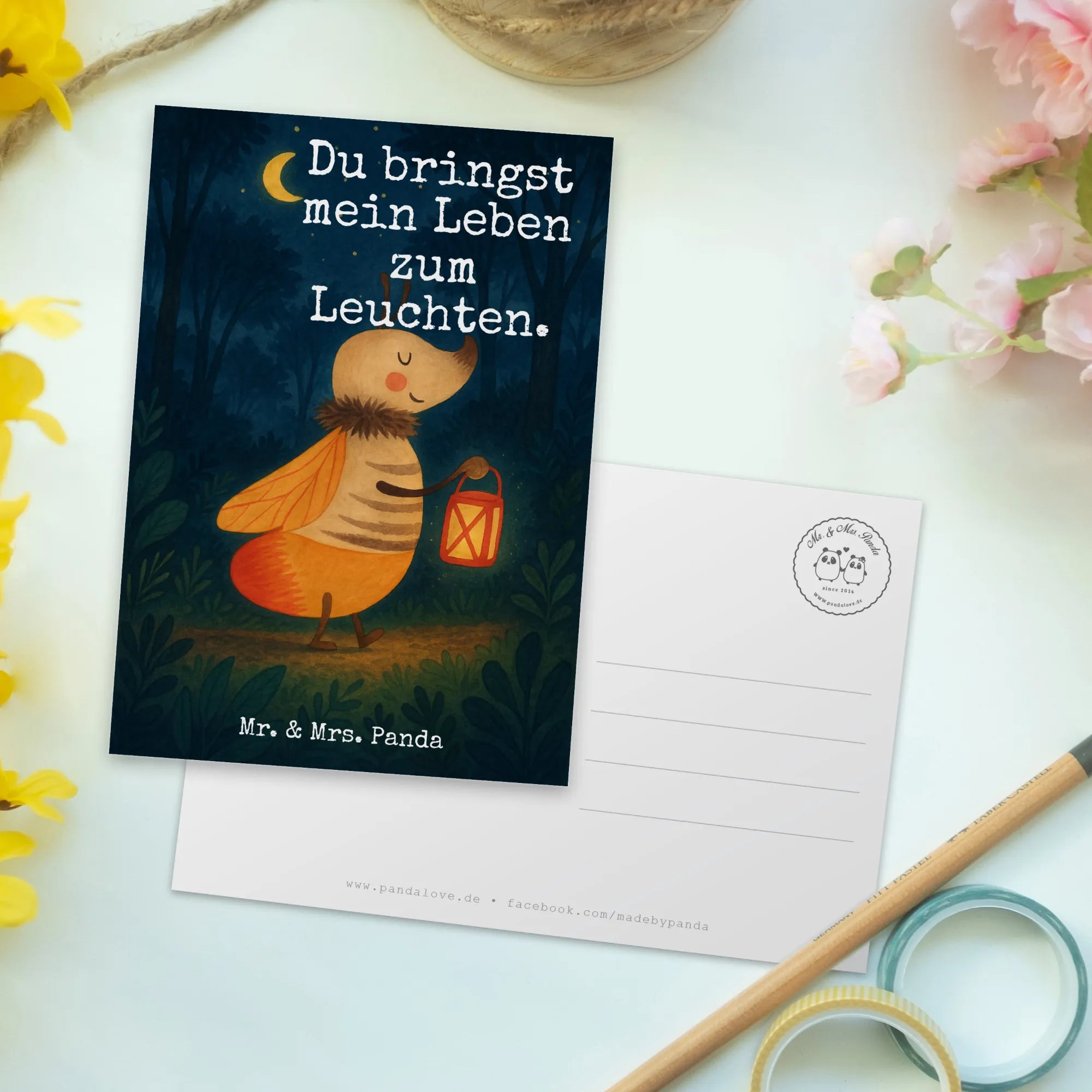 Mr. & Mrs. Panda Glühwürmchen Motiv mit Laterne - Symbol der Liebe und Magie