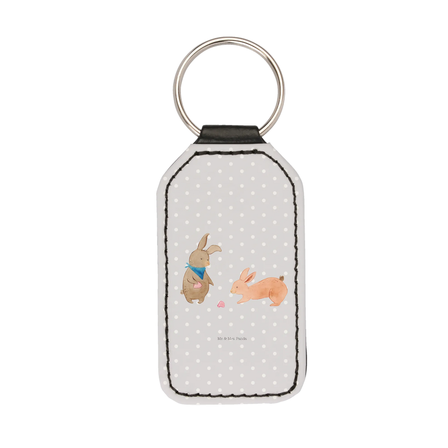 Rectangular key ring Bunnies with seashell - Grey Pastel
