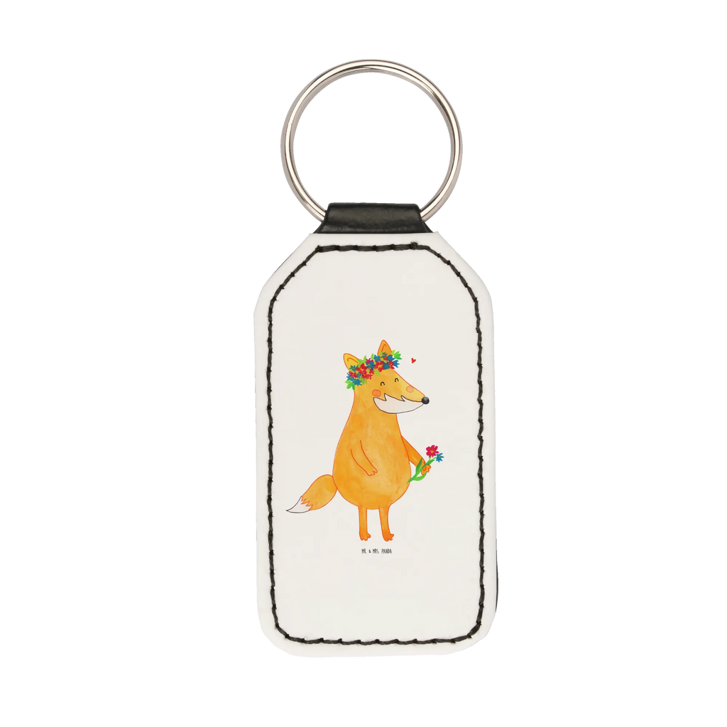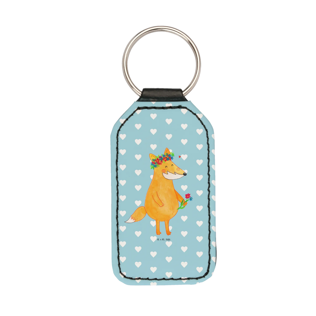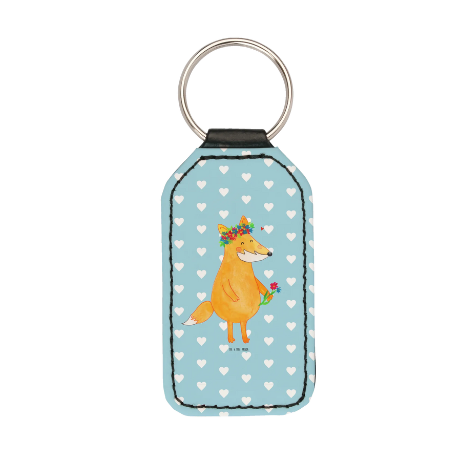 Rectangular key ring Fox Flower - Turquoise Pastel