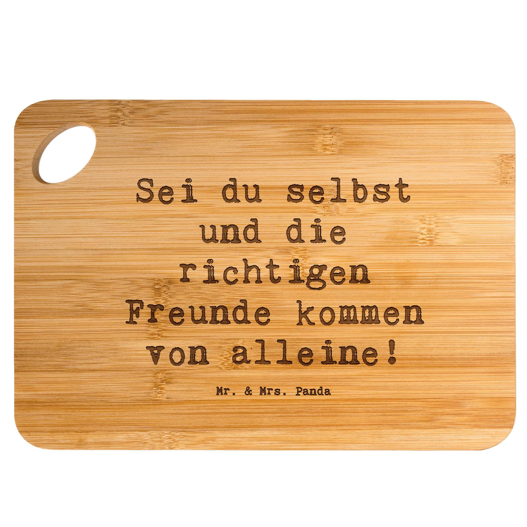 Bamboo chopping board Saying Sei du selbst und die richtigen Freunde kommen von alleine!