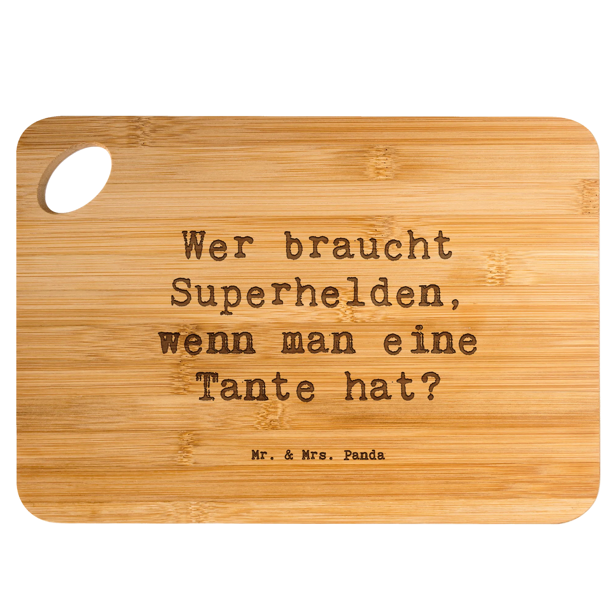 Bamboo chopping board Saying Wer braucht Superhelden, wenn man eine Tante hat?
