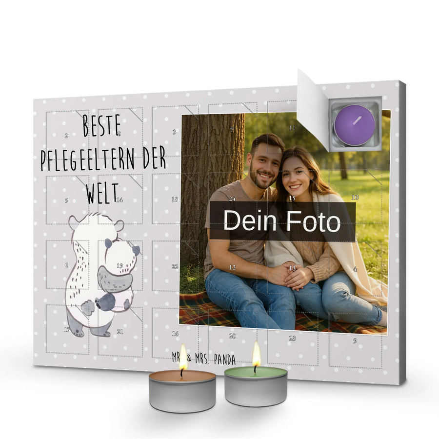 Personalisierter Duftkerzen Foto Adventskalender Panda Beste Pflegeeltern der Welt