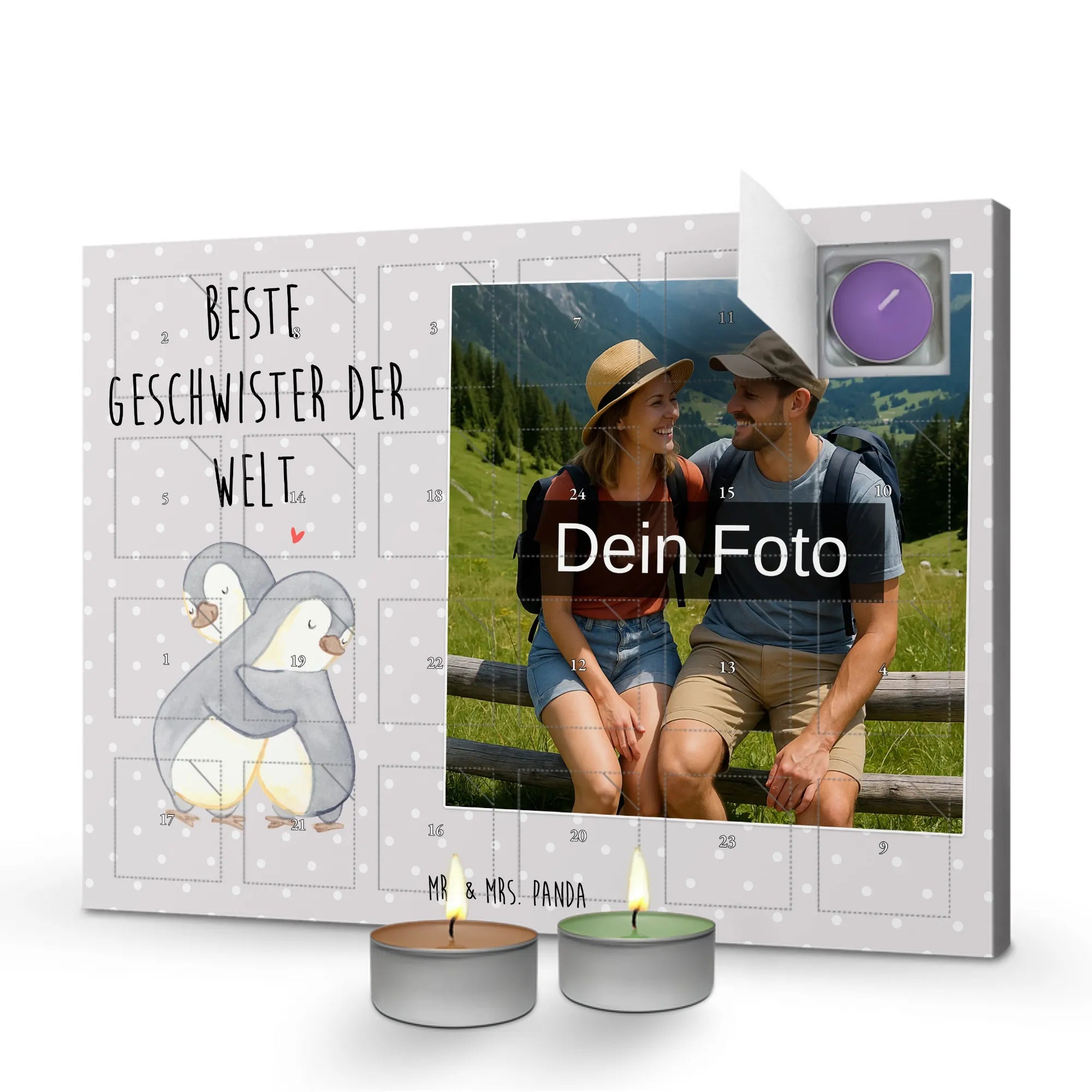 Personalisierter Duftkerzen Foto Adventskalender Pinguin Beste Geschwister der Welt