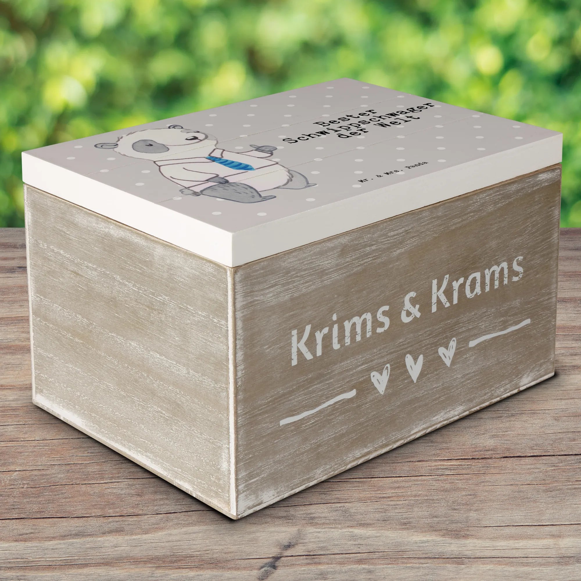 Wooden chest panda Best brother-in-law in the world - 22 x 15 cm - White