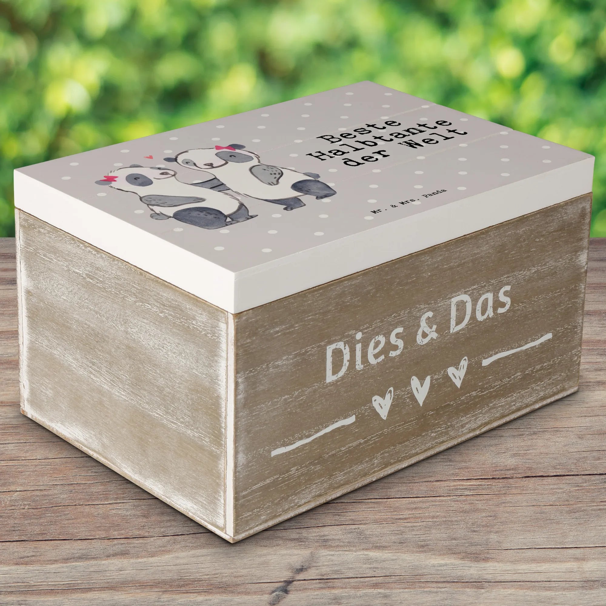 Wooden chest panda Best half-aunt in the world - 22 x 15 cm - White
