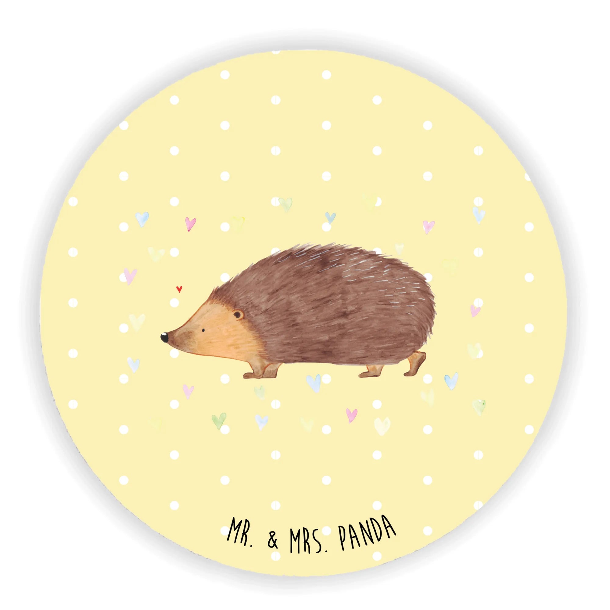 Round magnet Hedgehog hearts - with a saying - Yellow Pastel