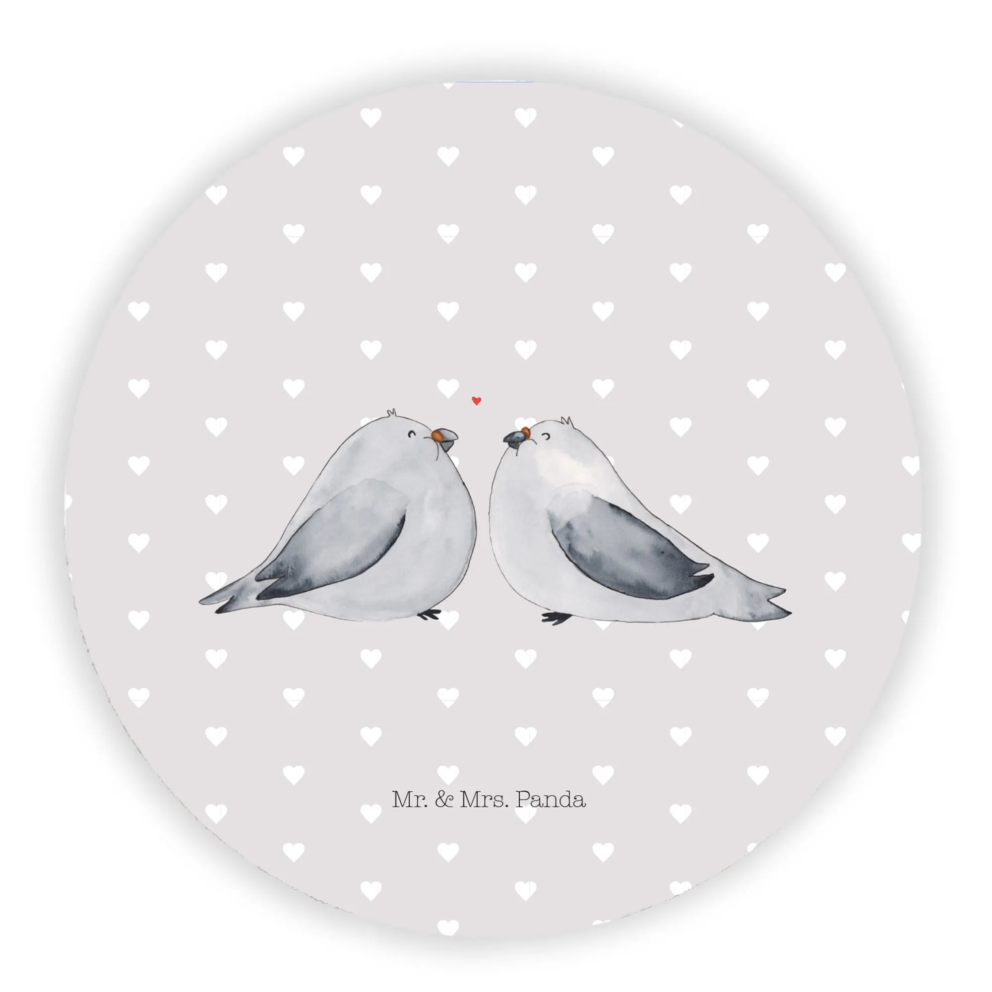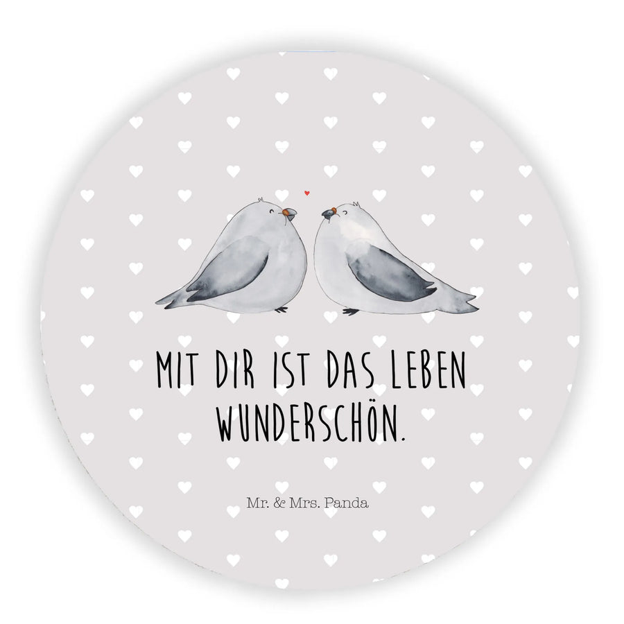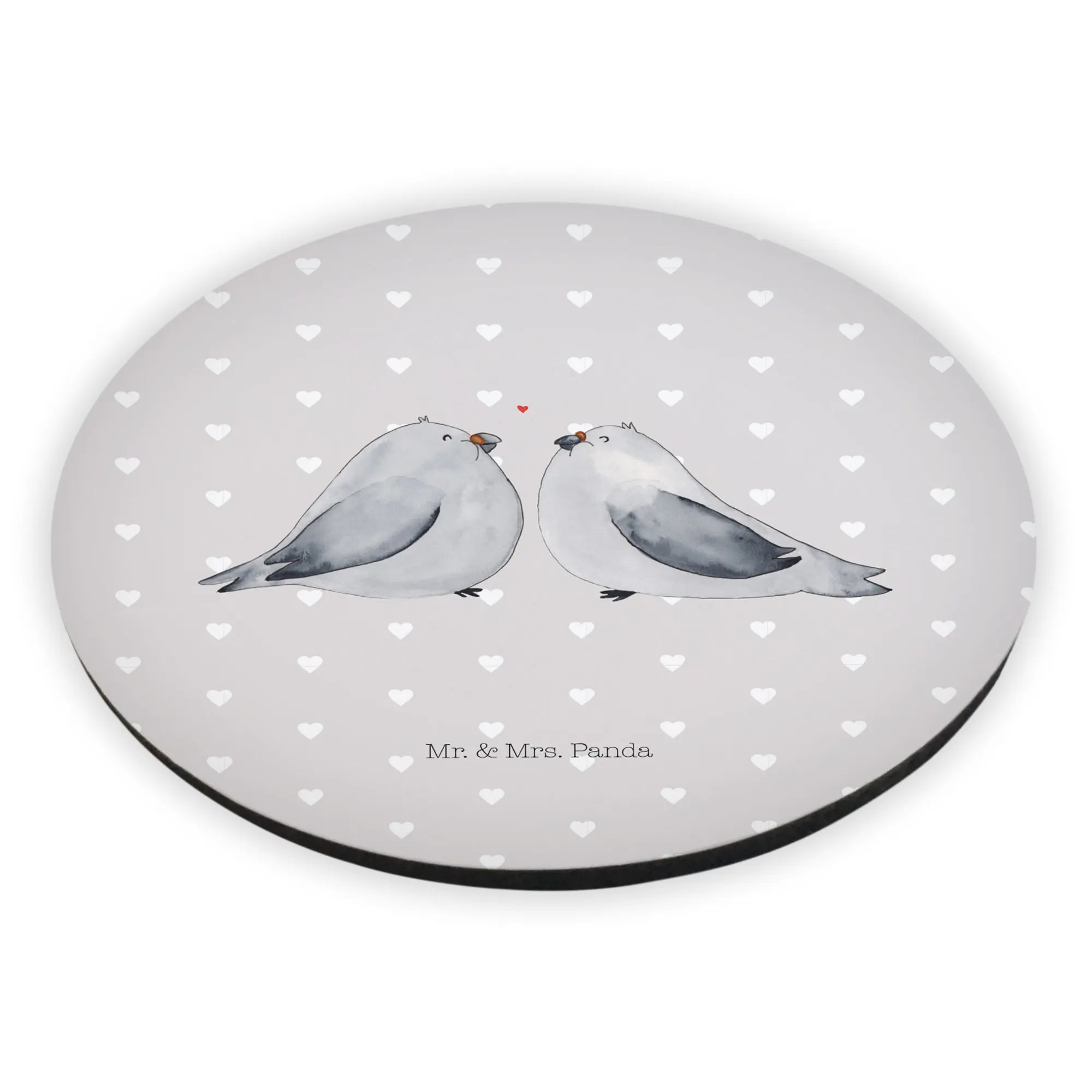 Round magnet Turtledoves in love - with a saying - Grey Pastel