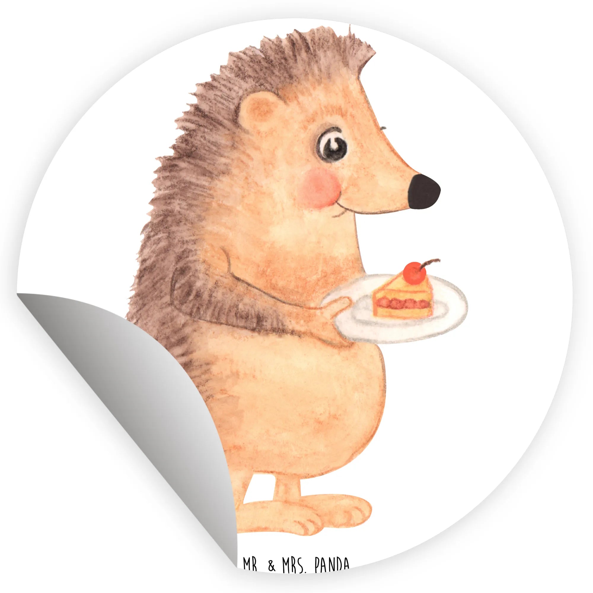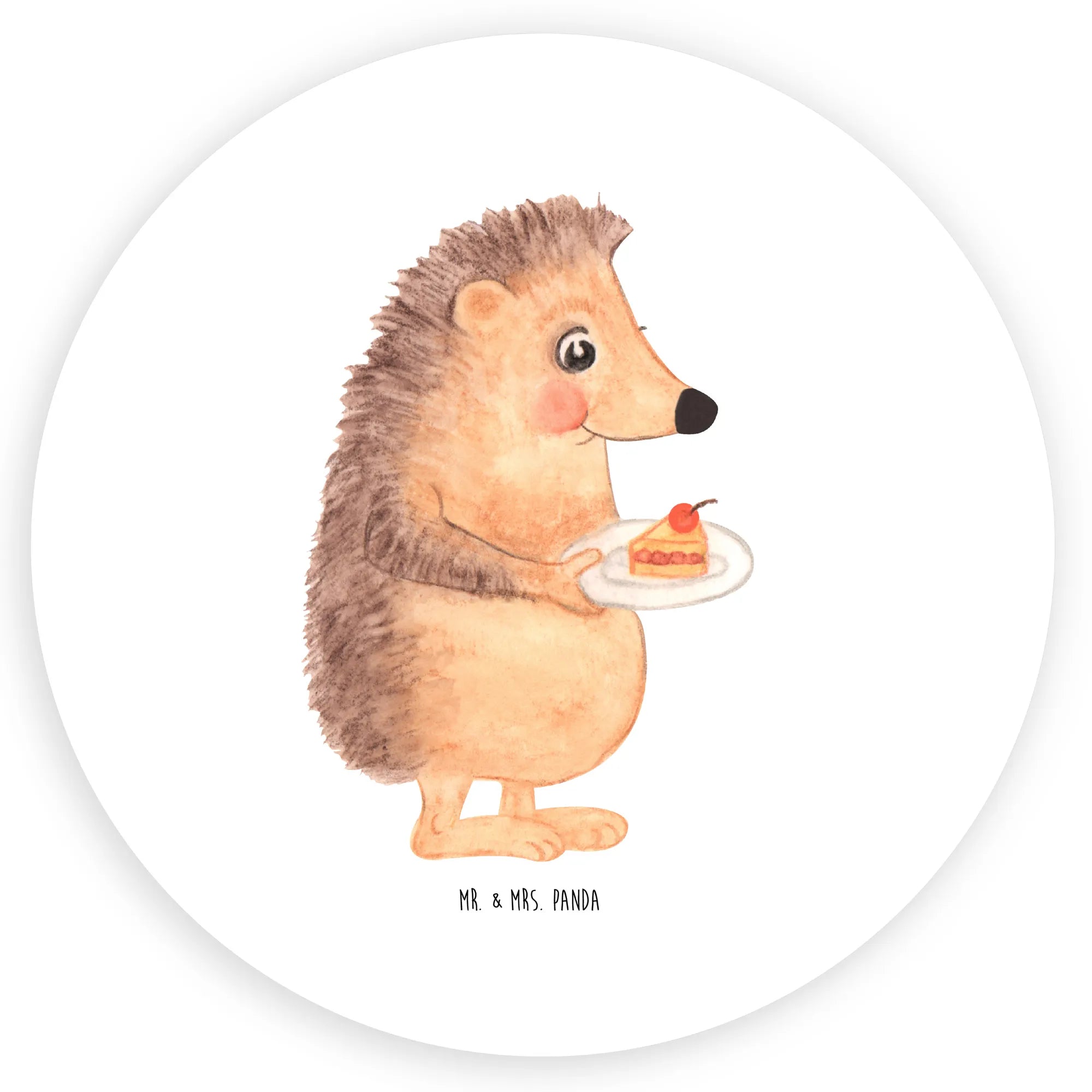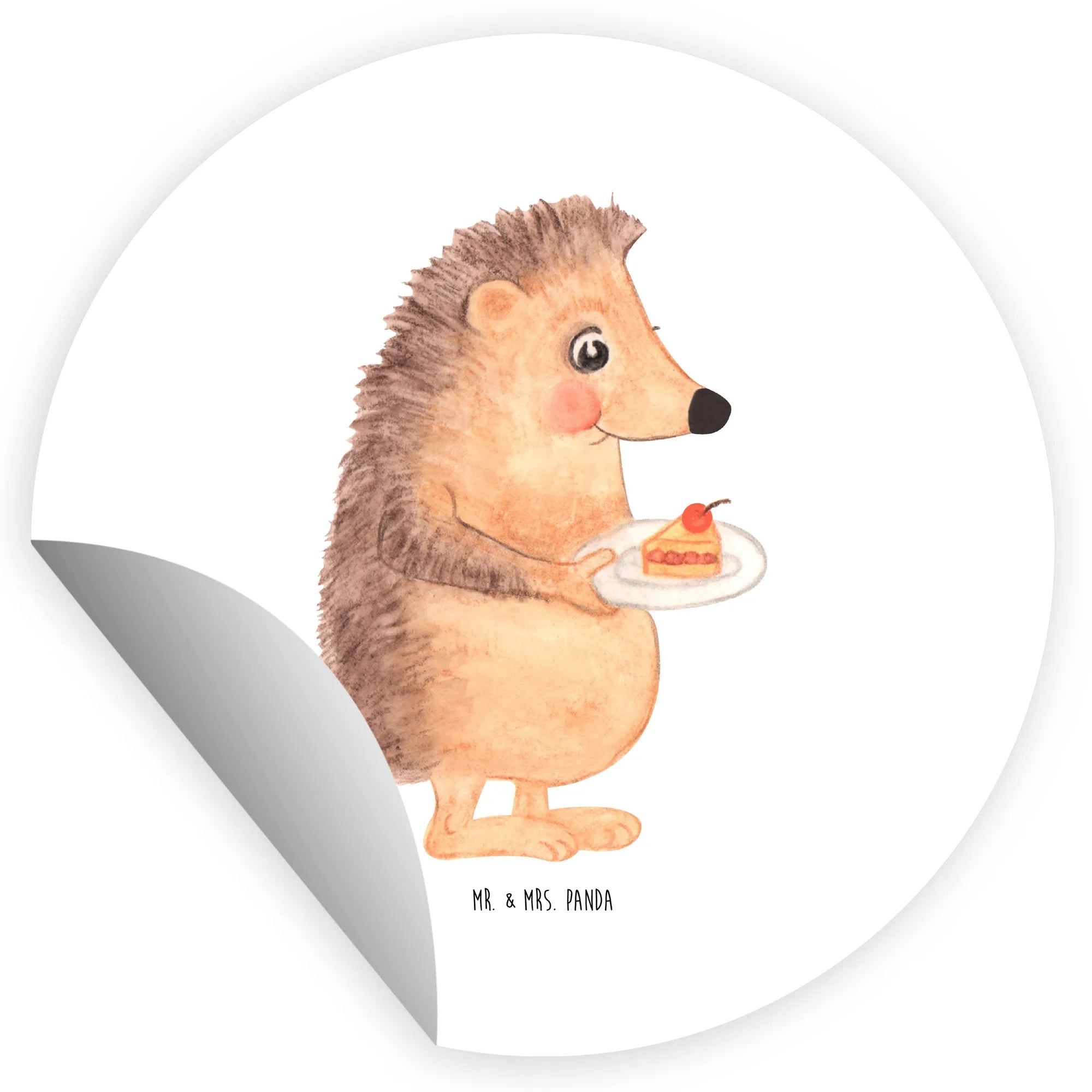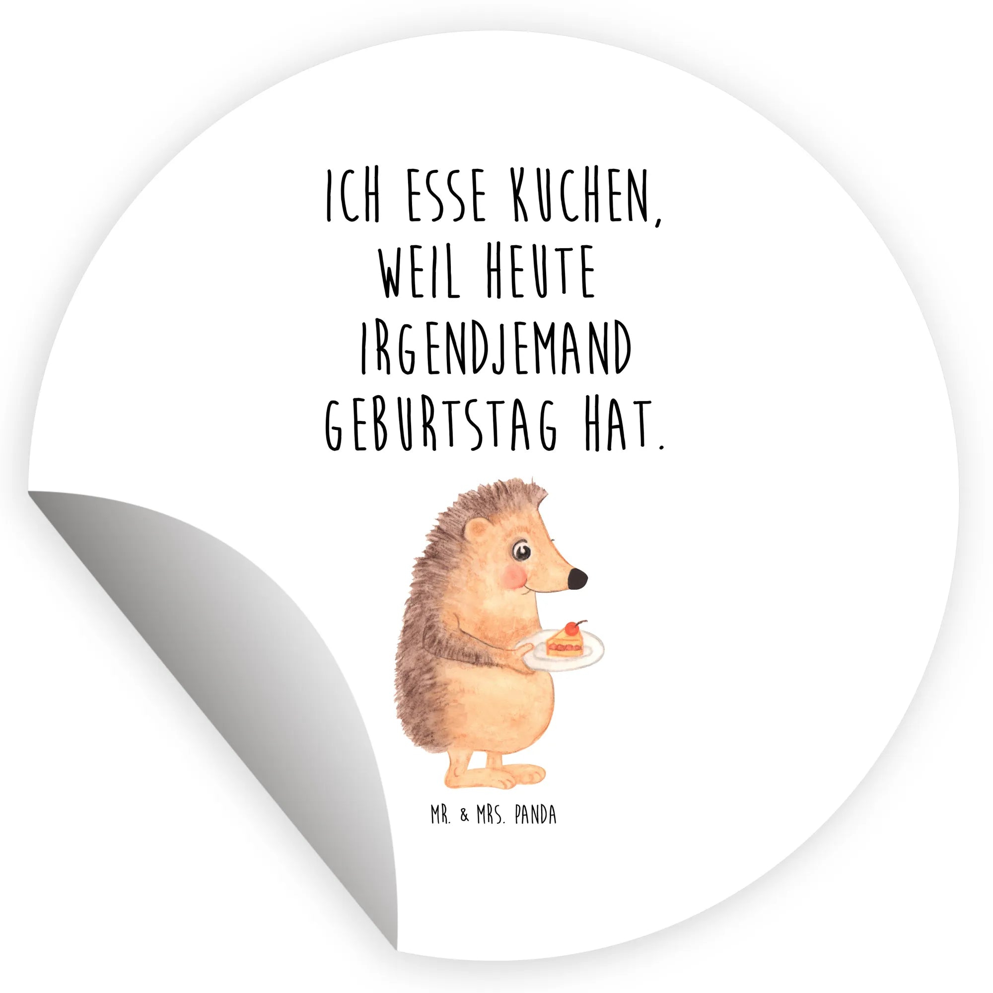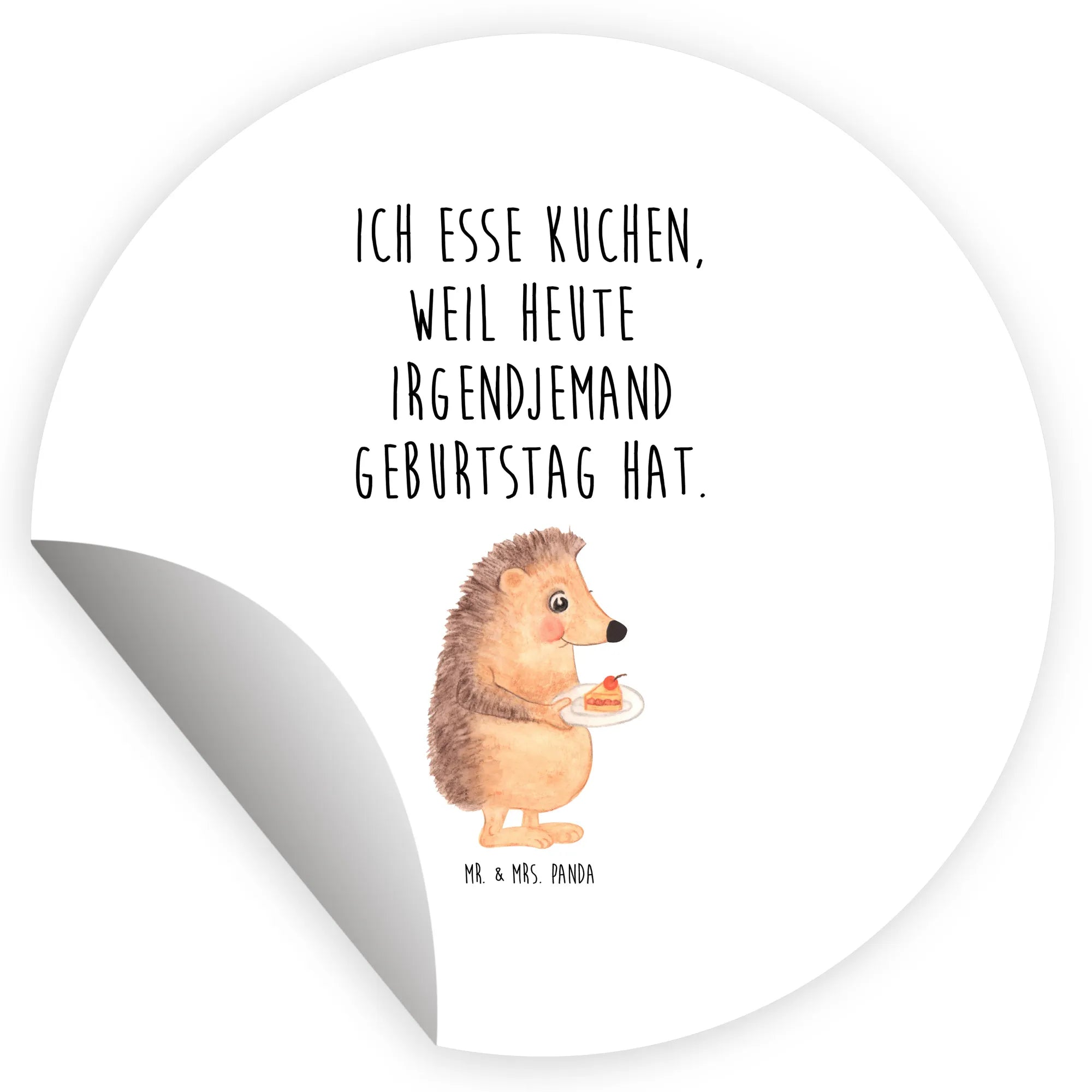 80mm round sticker Hedgehog piece of cake - 80mm Rund Aufkleber - with saying - White