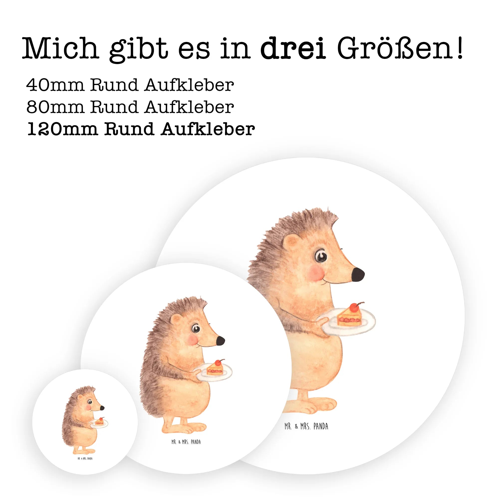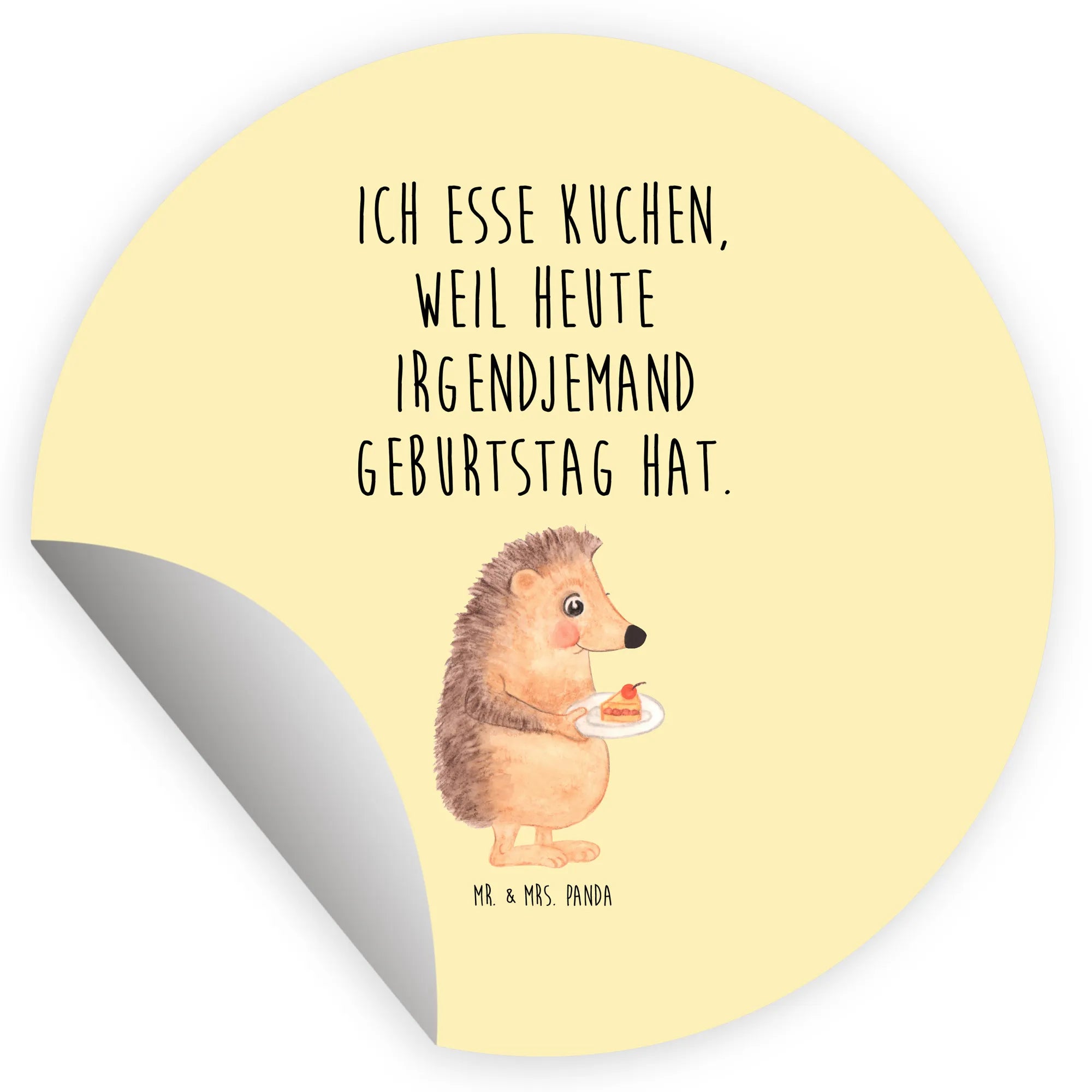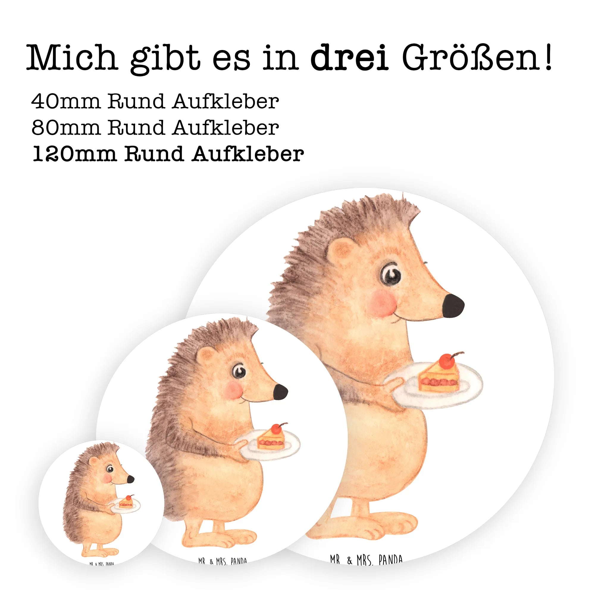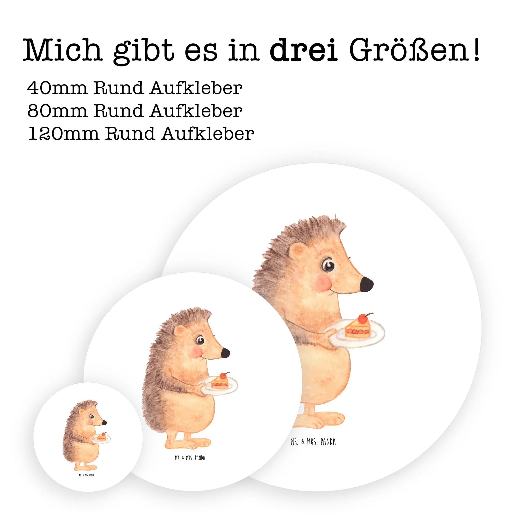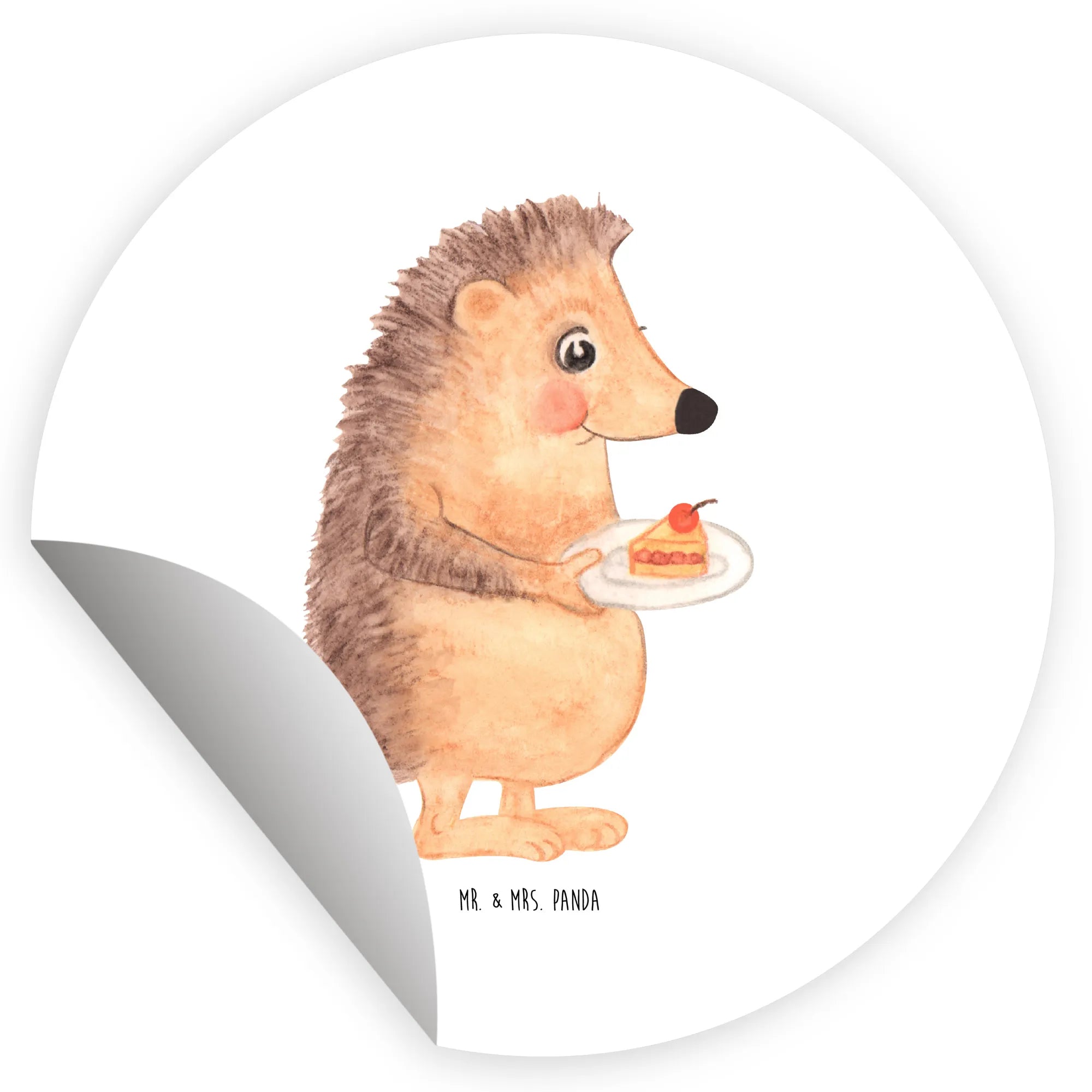 80mm round sticker Hedgehog piece of cake - 80mm Rund Aufkleber - with saying - White
