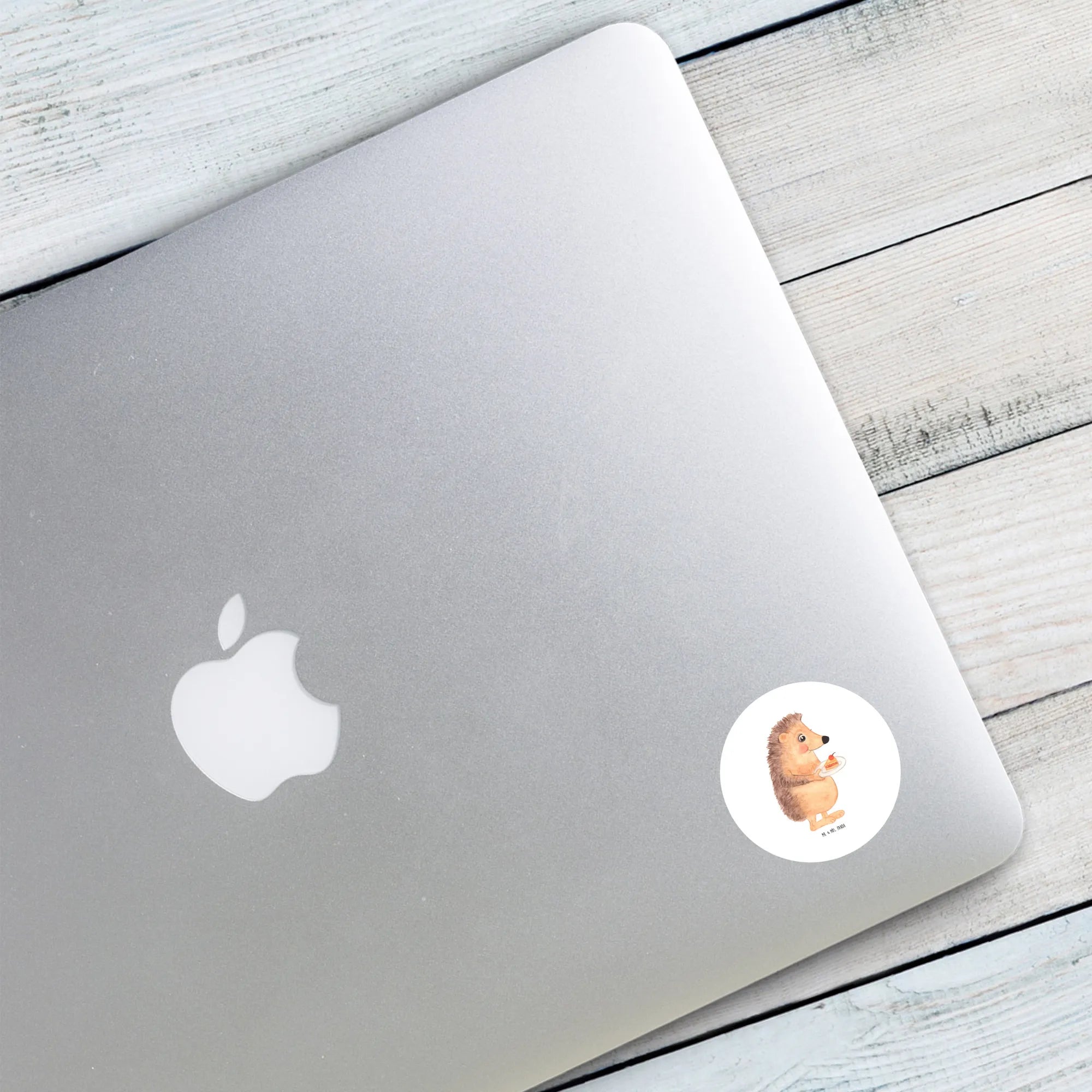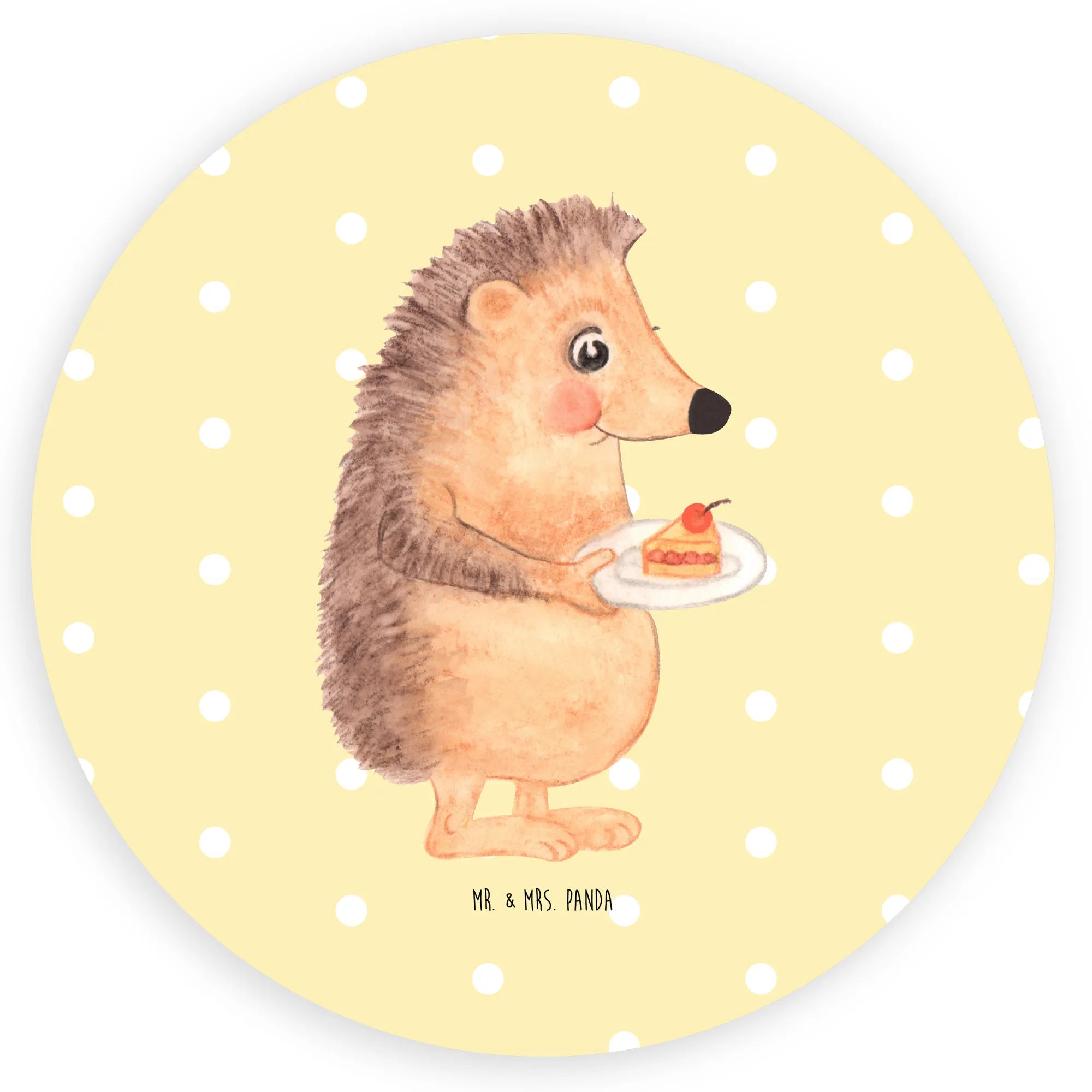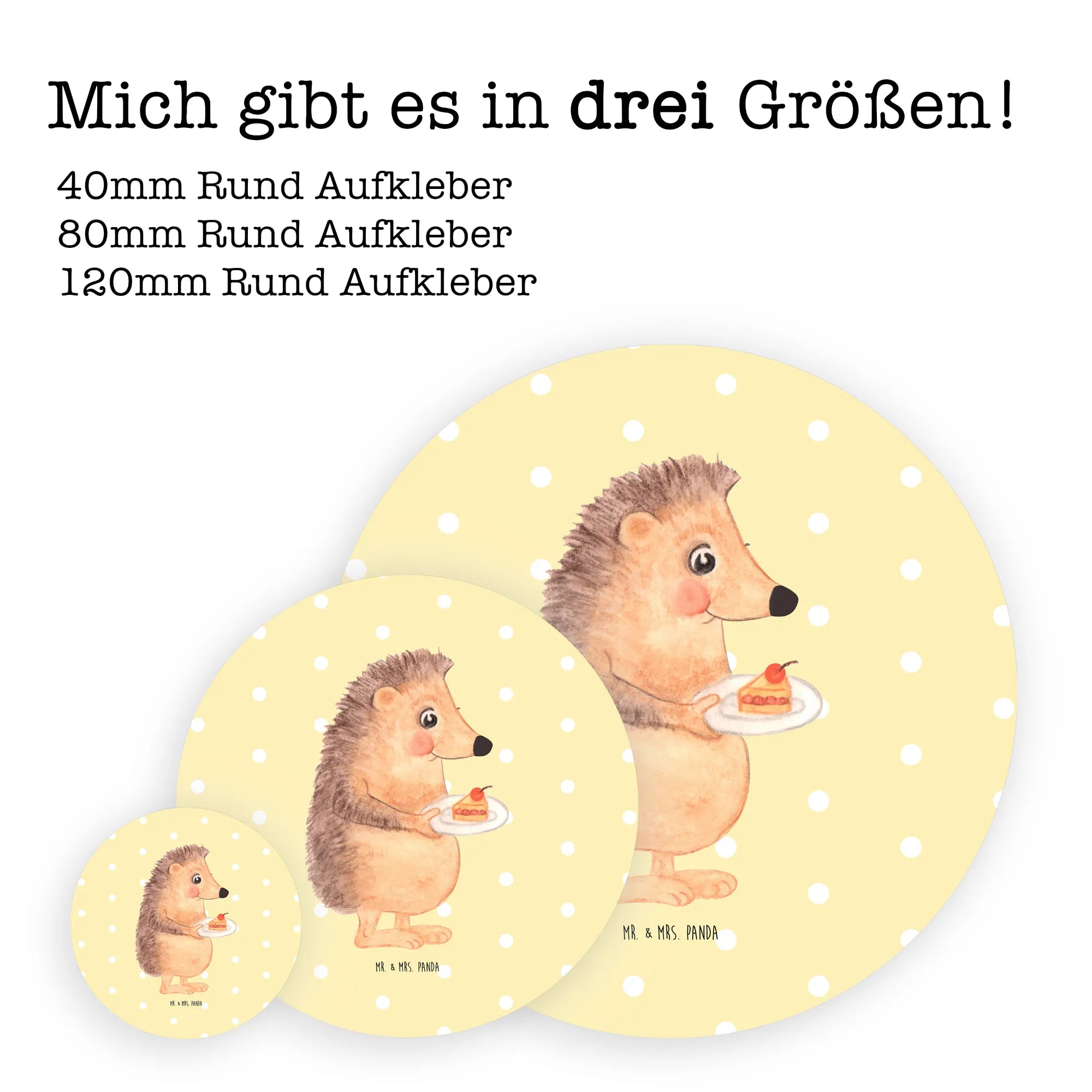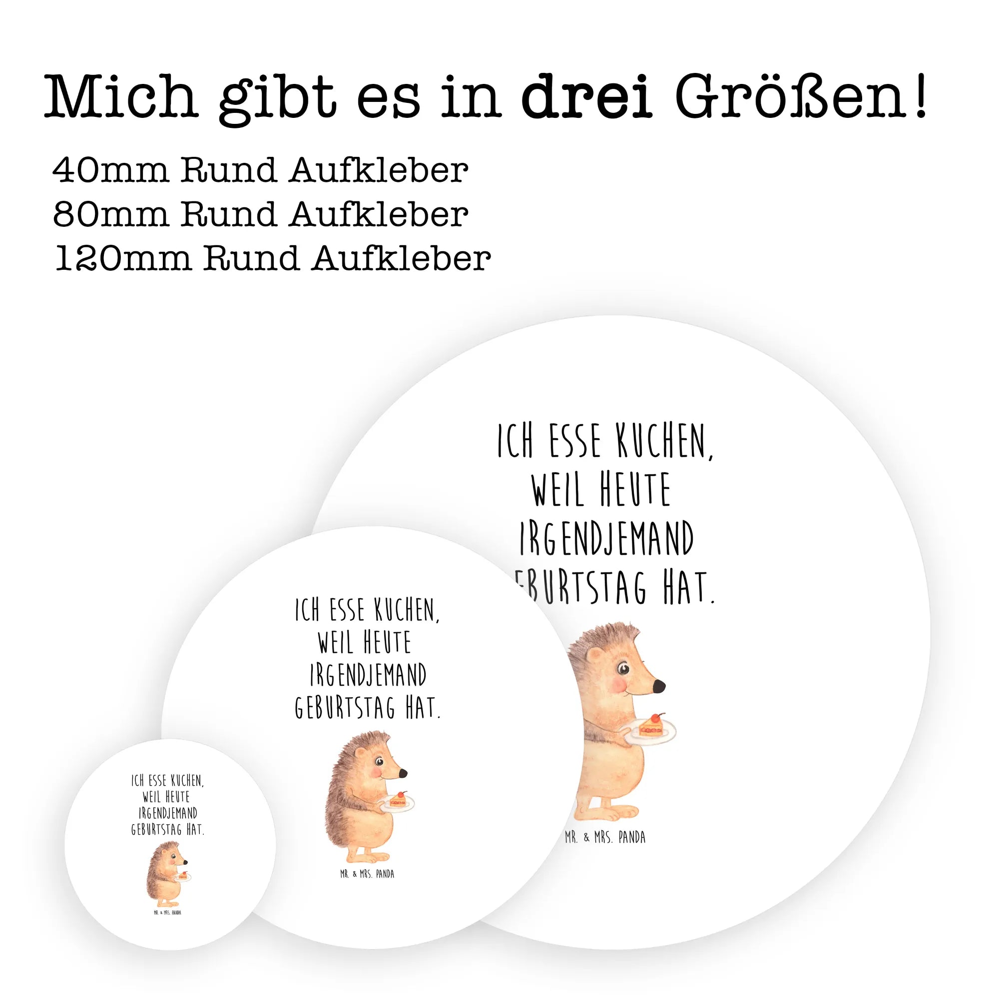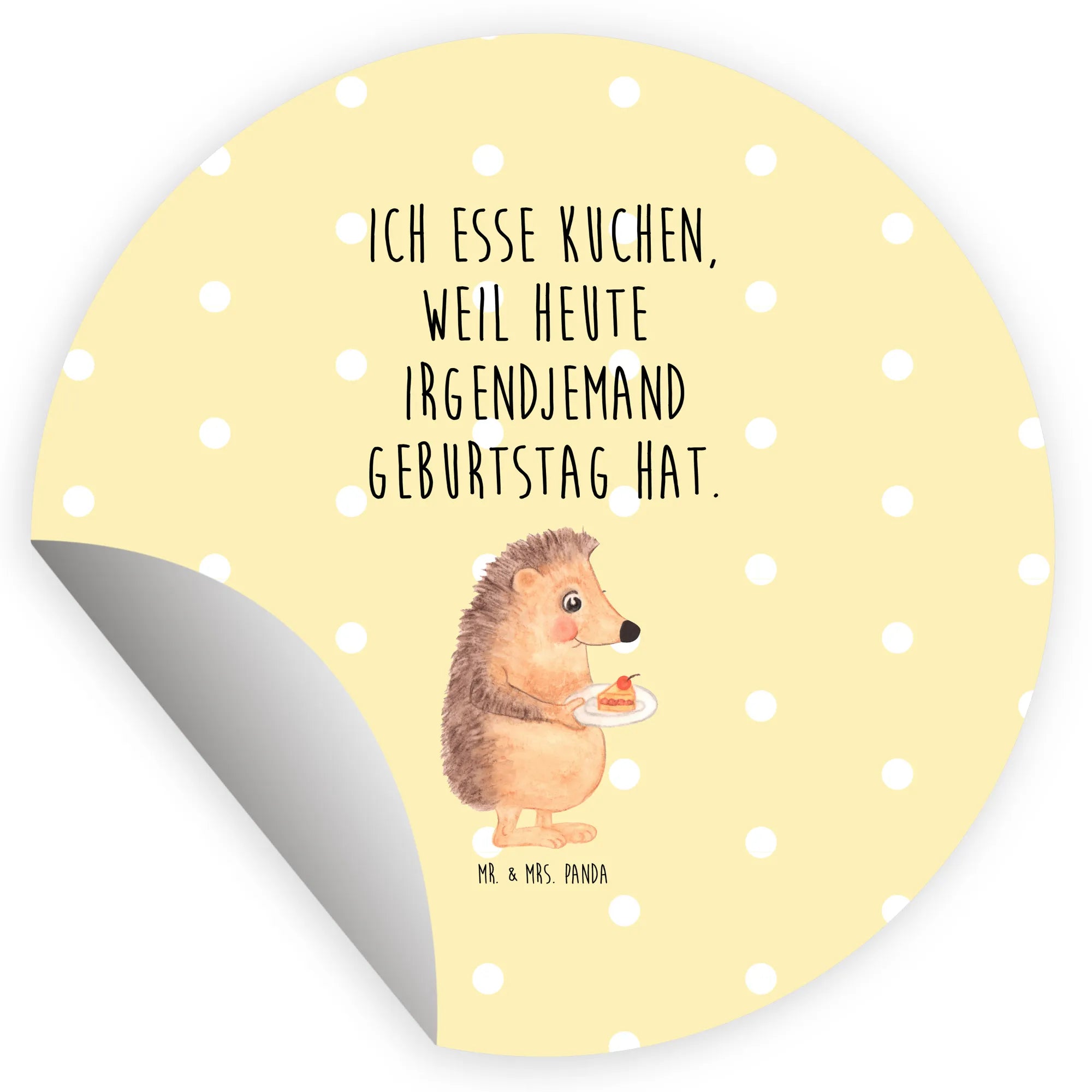 80mm round sticker Hedgehog piece of cake - 80mm Rund Aufkleber - with saying - White