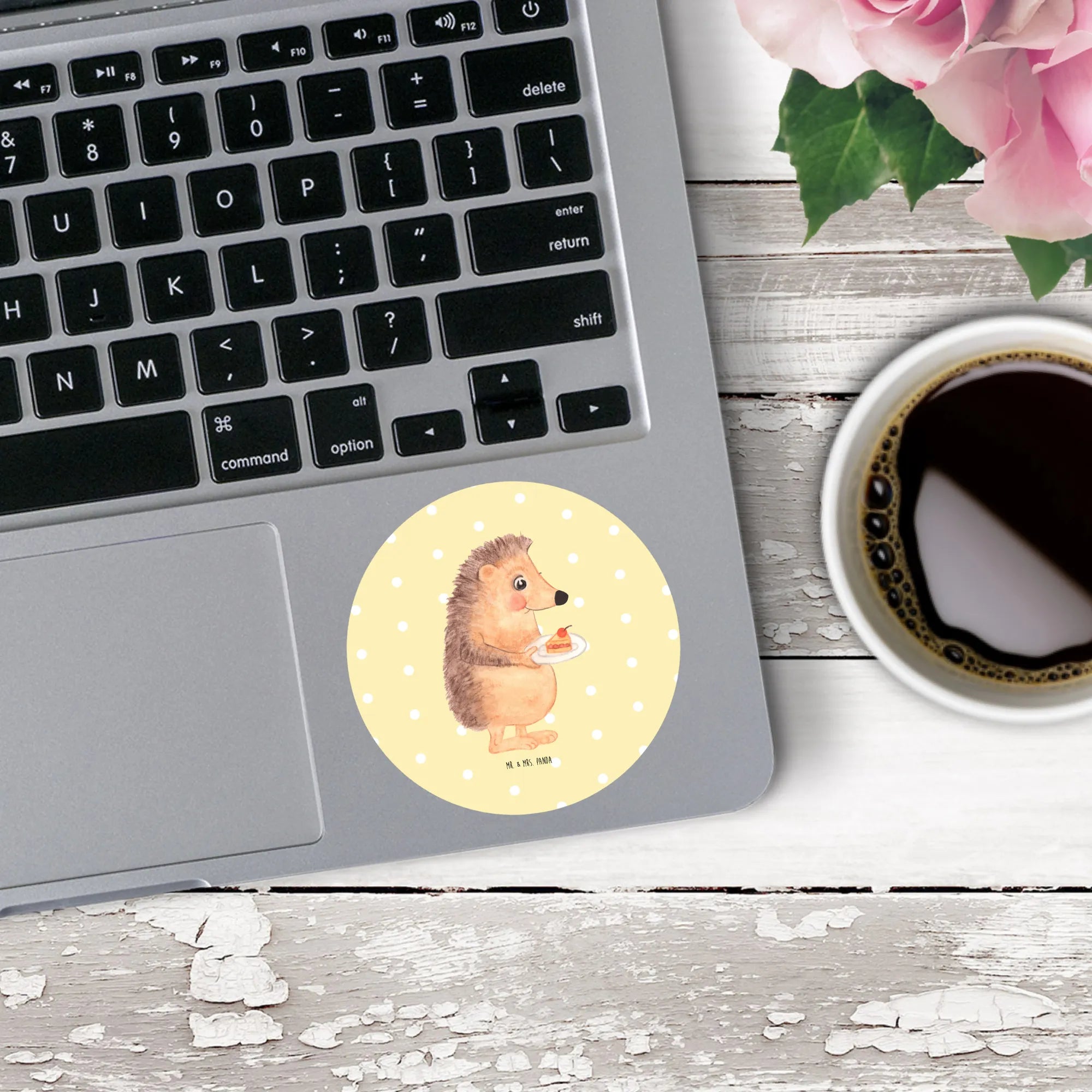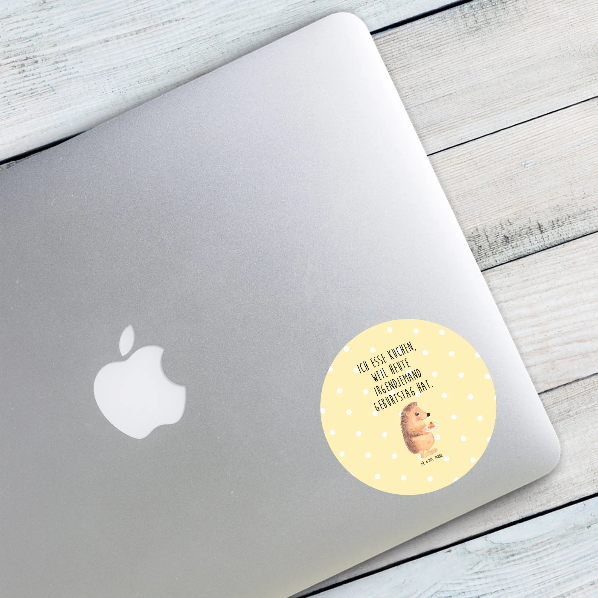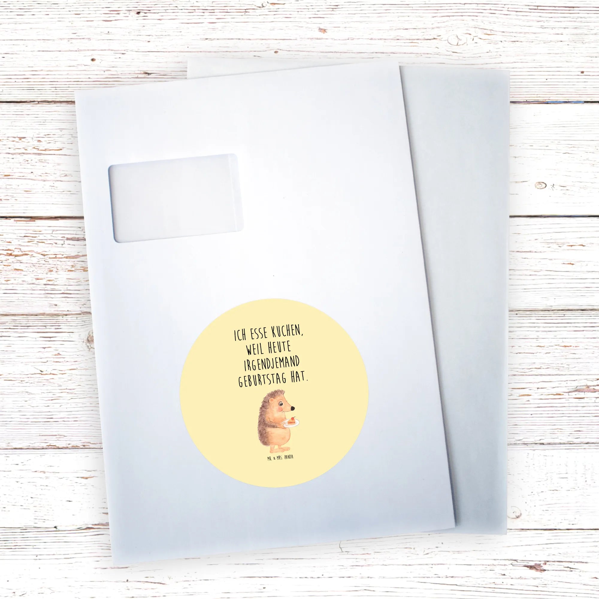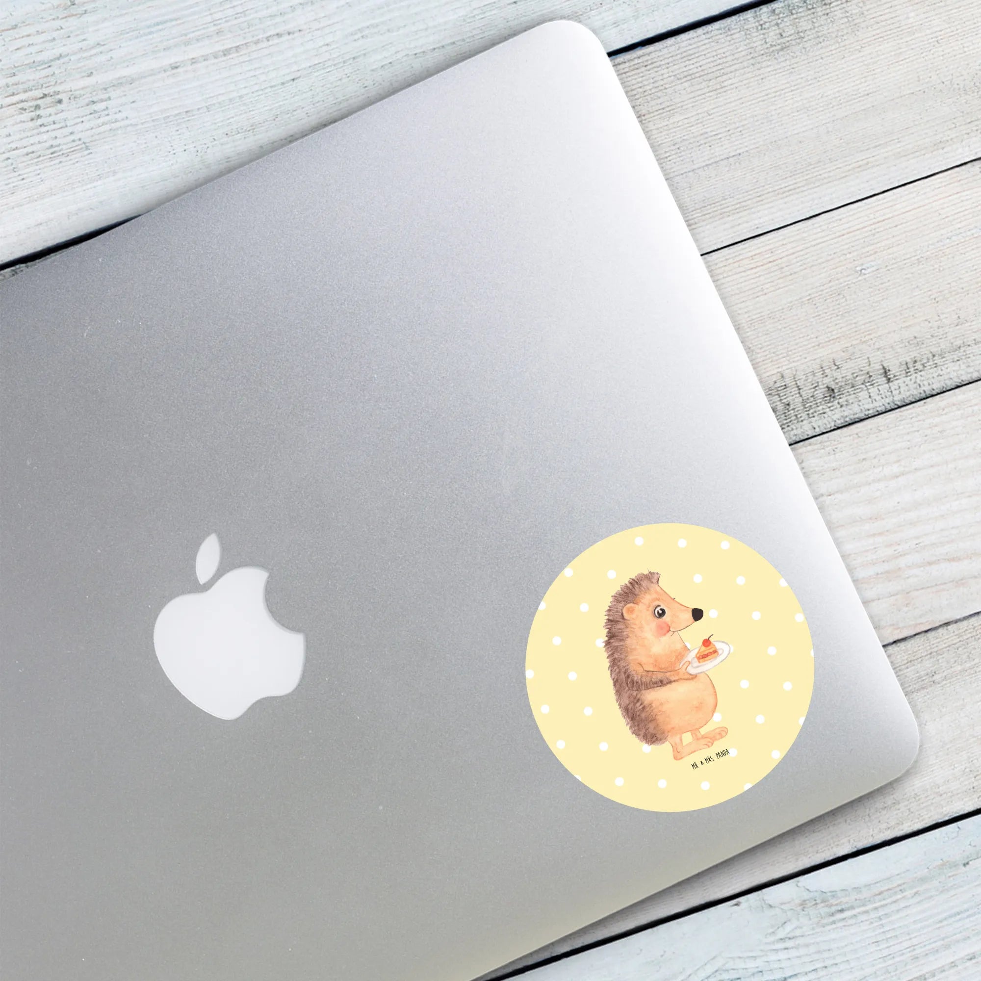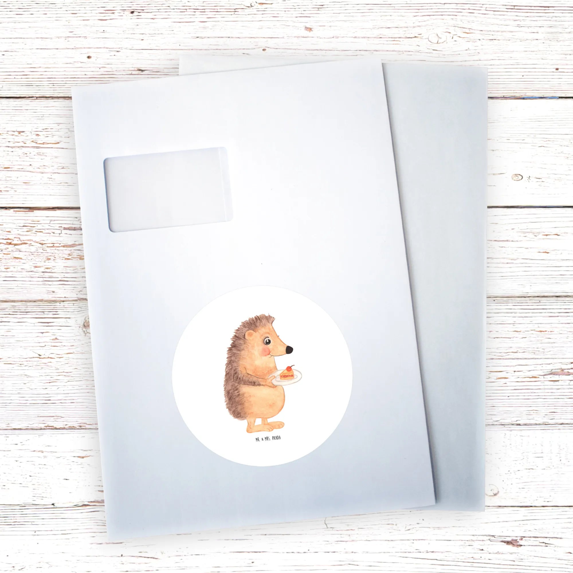 80mm round sticker Hedgehog piece of cake - 80mm Rund Aufkleber - with saying - White