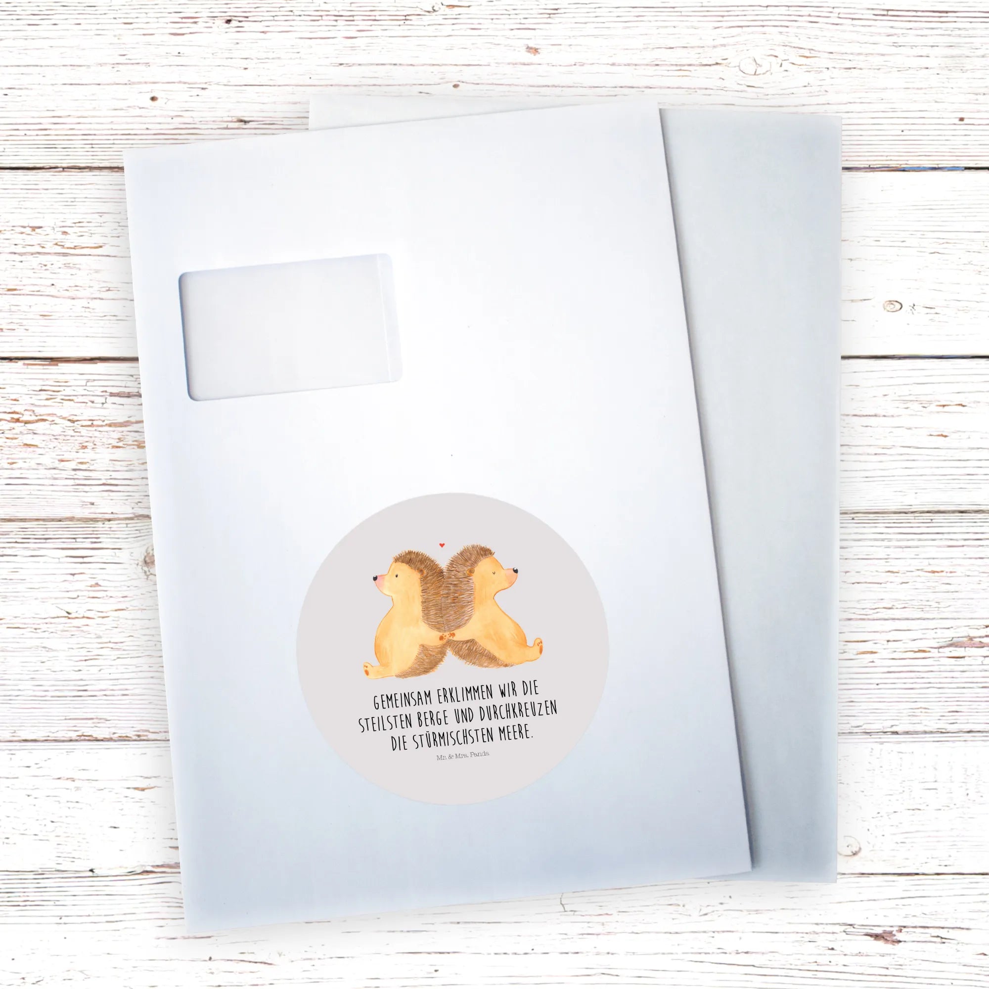 80mm round sticker Hedgehogs holding hands - 120mm Rund Aufkleber - with saying - Pastel Gray