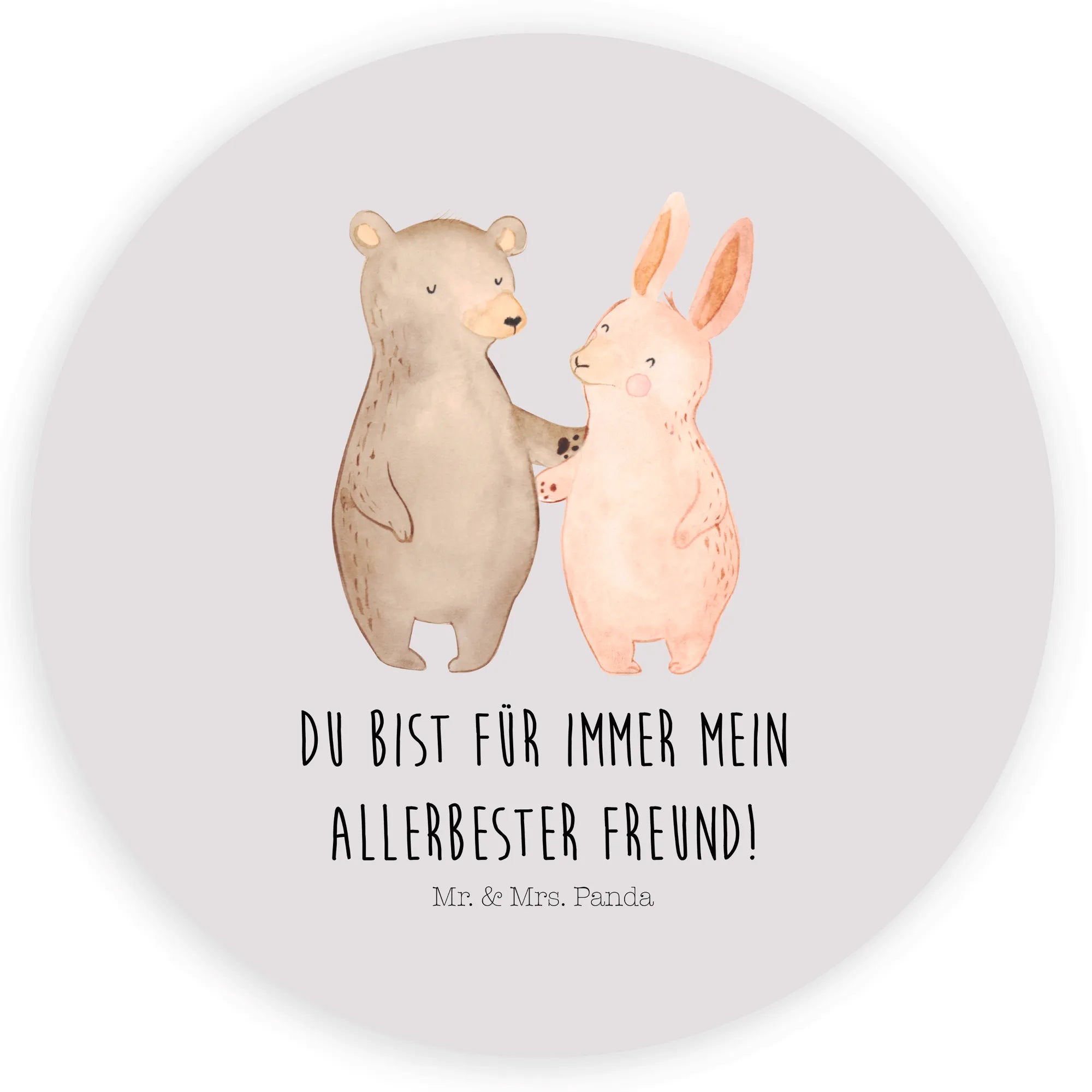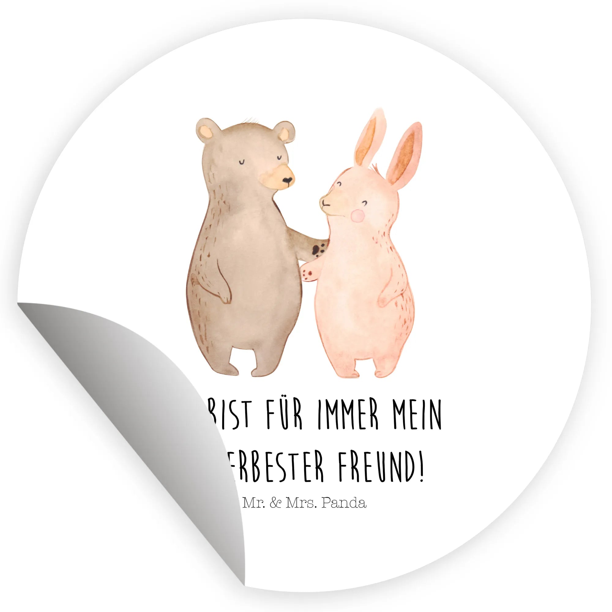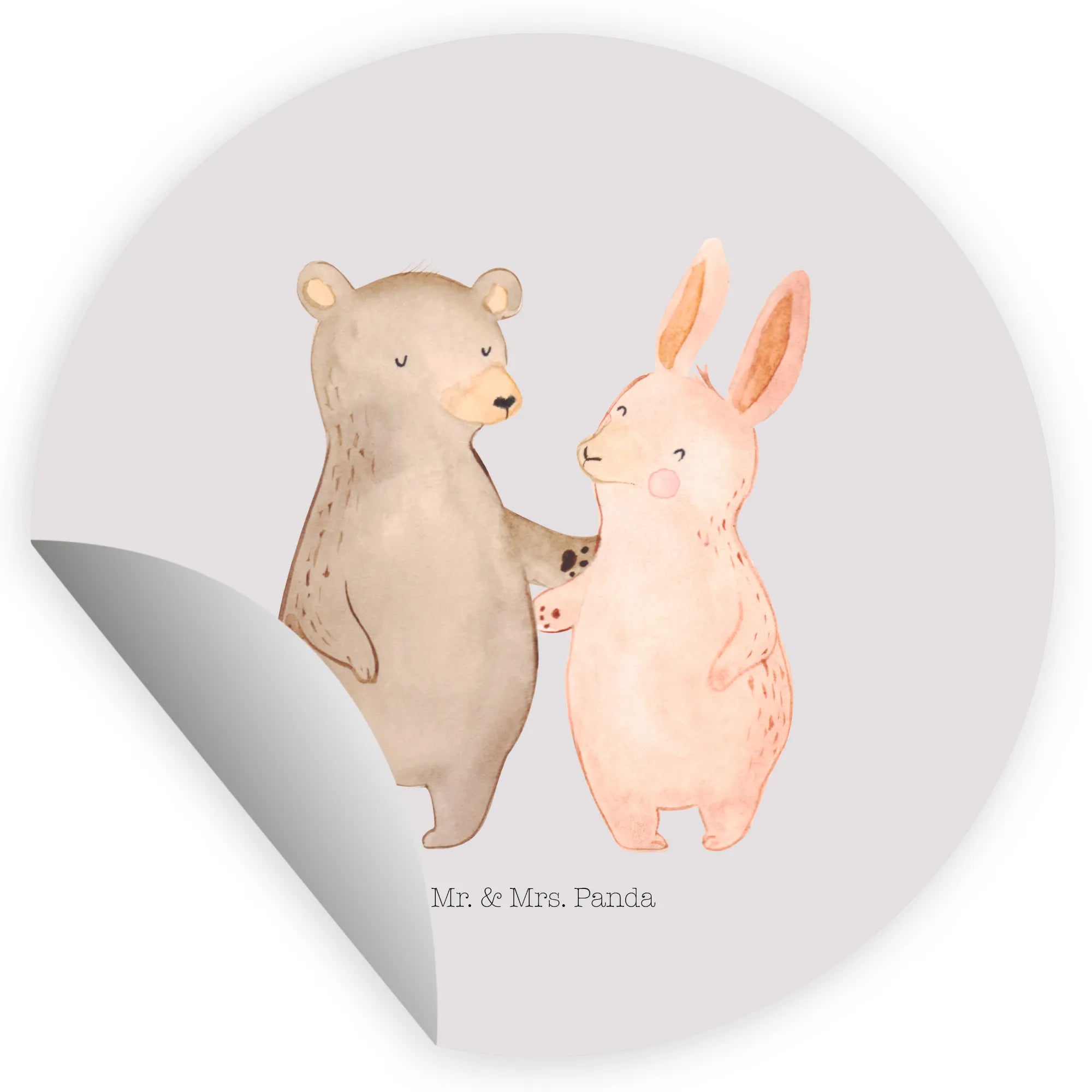 Round sticker bear and rabbit Embrace - 80mm Rund Aufkleber - with saying - White