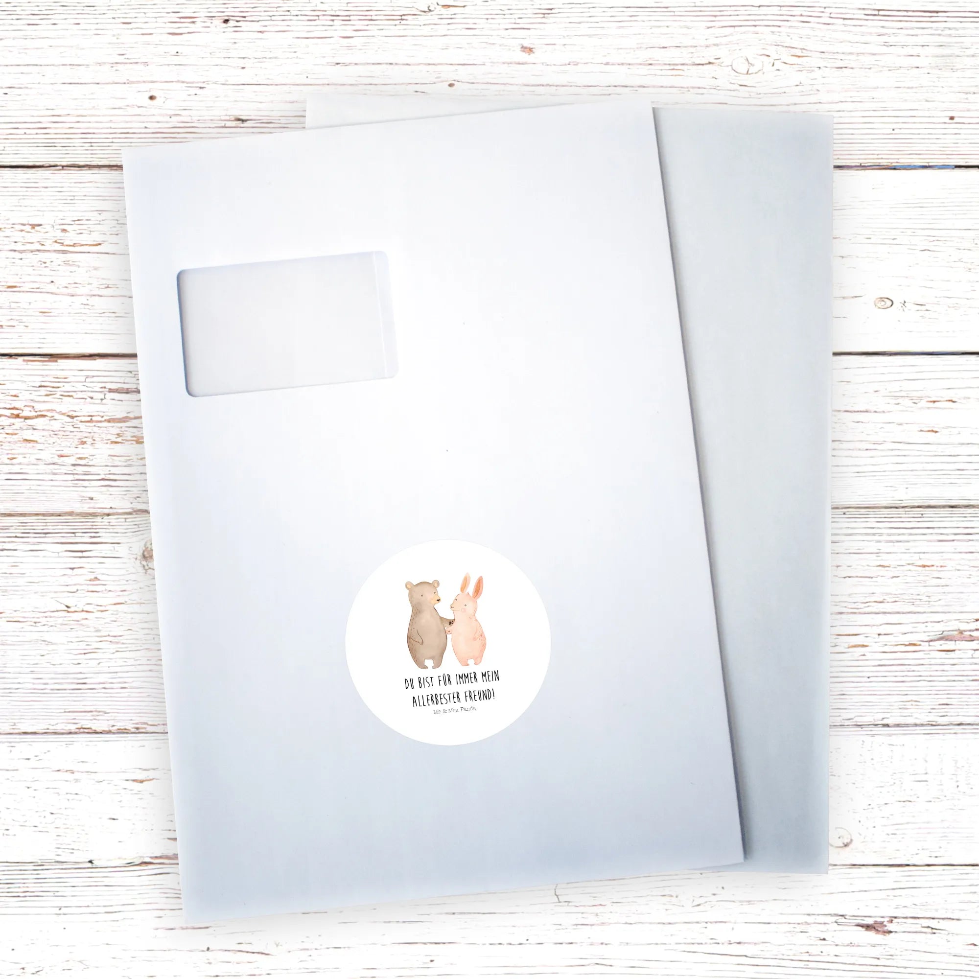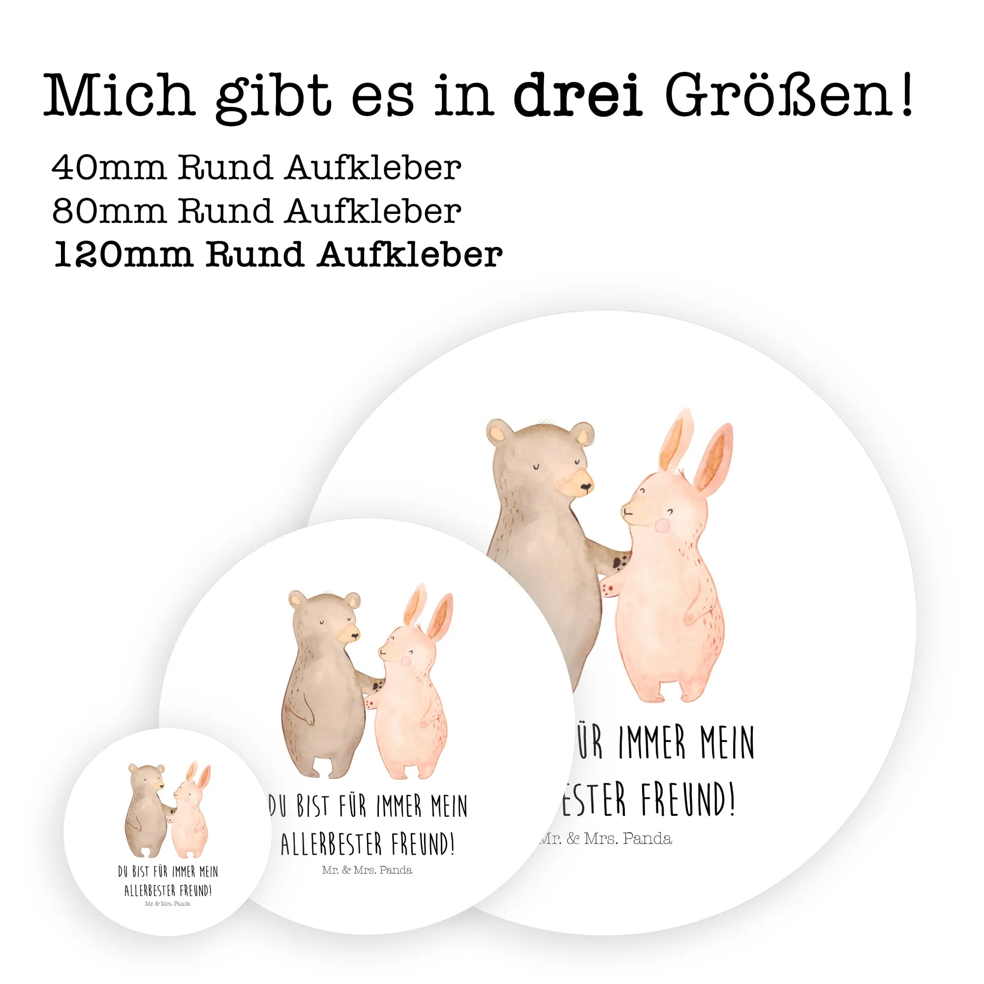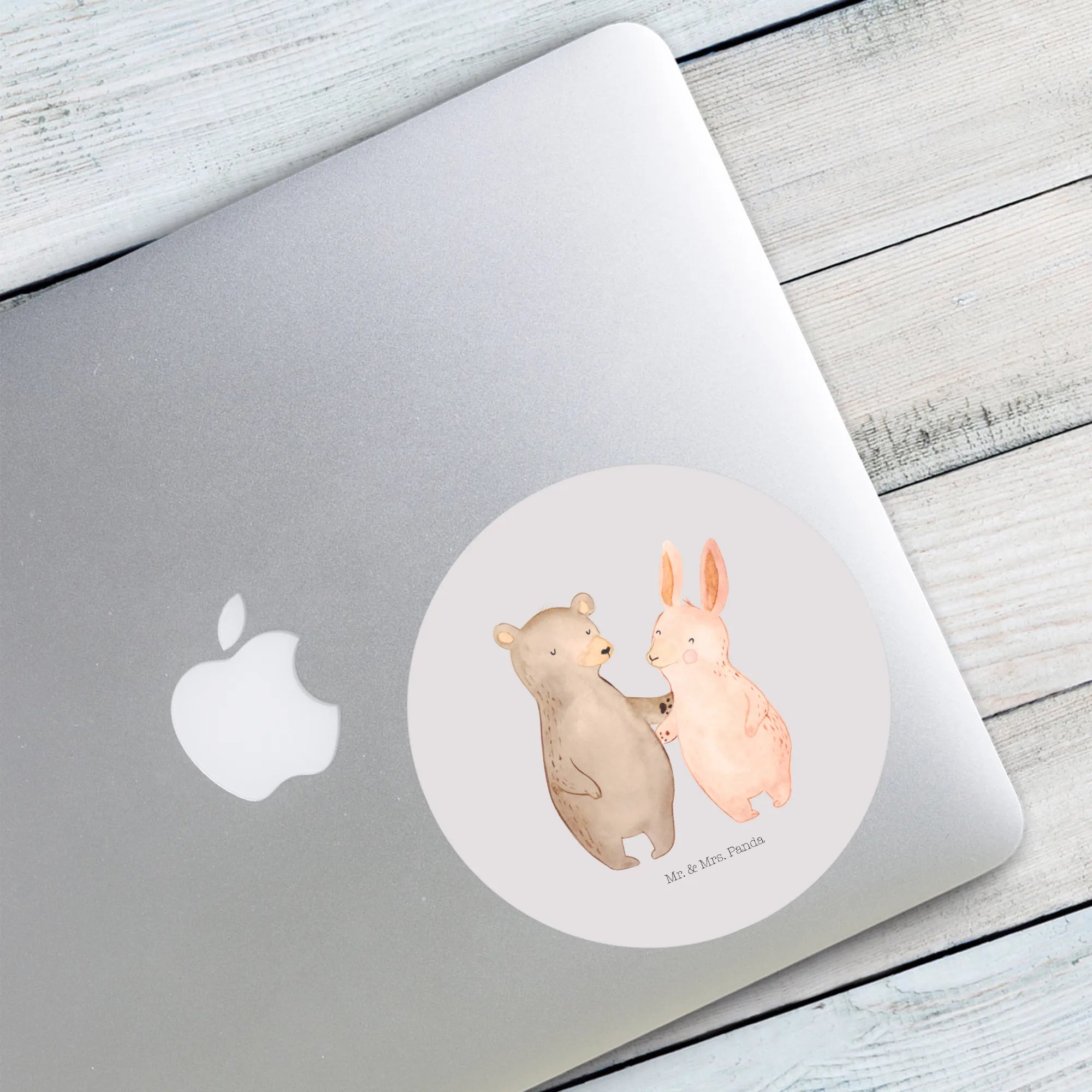 Round sticker bear and rabbit Embrace - 80mm Rund Aufkleber - with saying - White