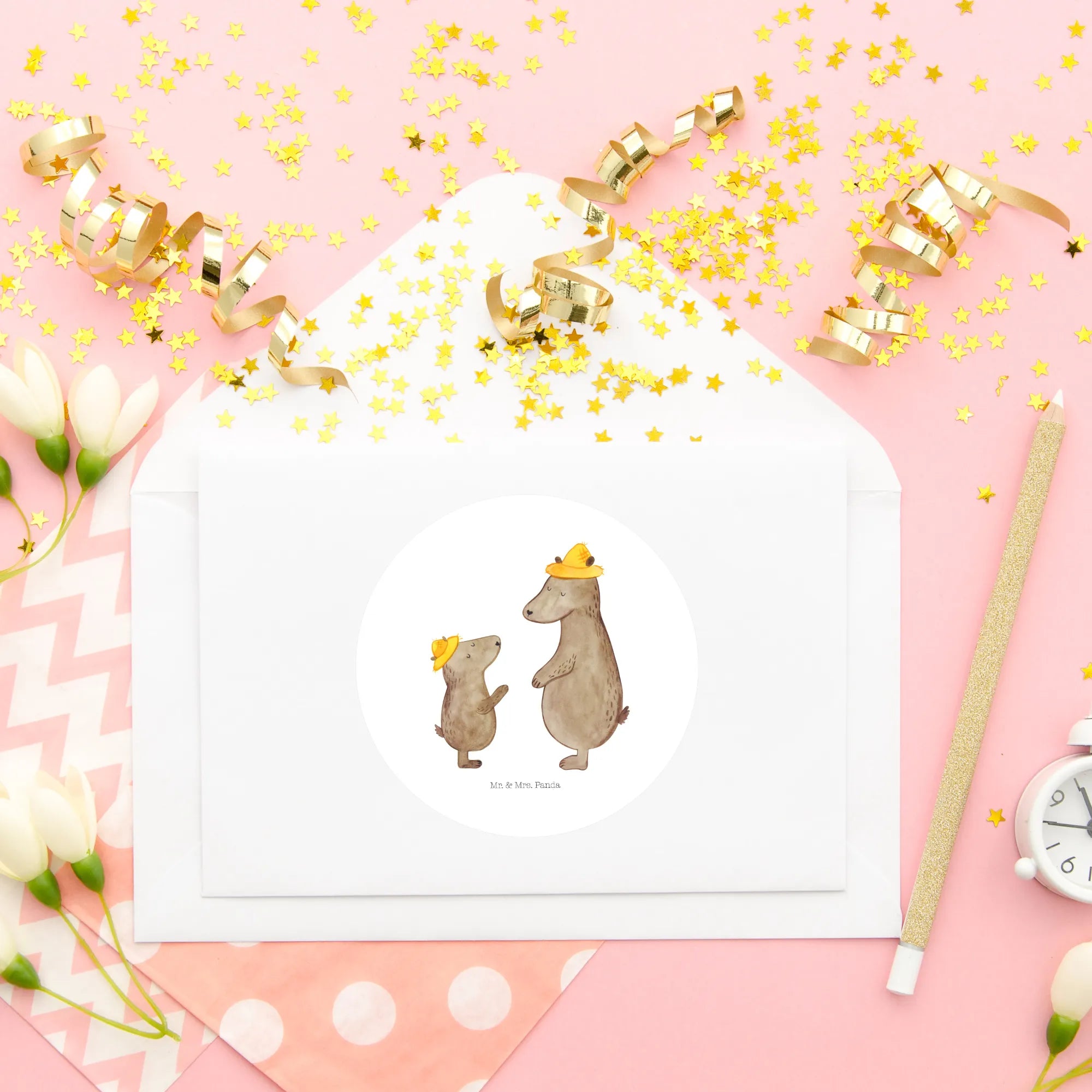80mm round sticker Bears with hats - 80mm Rund Aufkleber - with saying - White