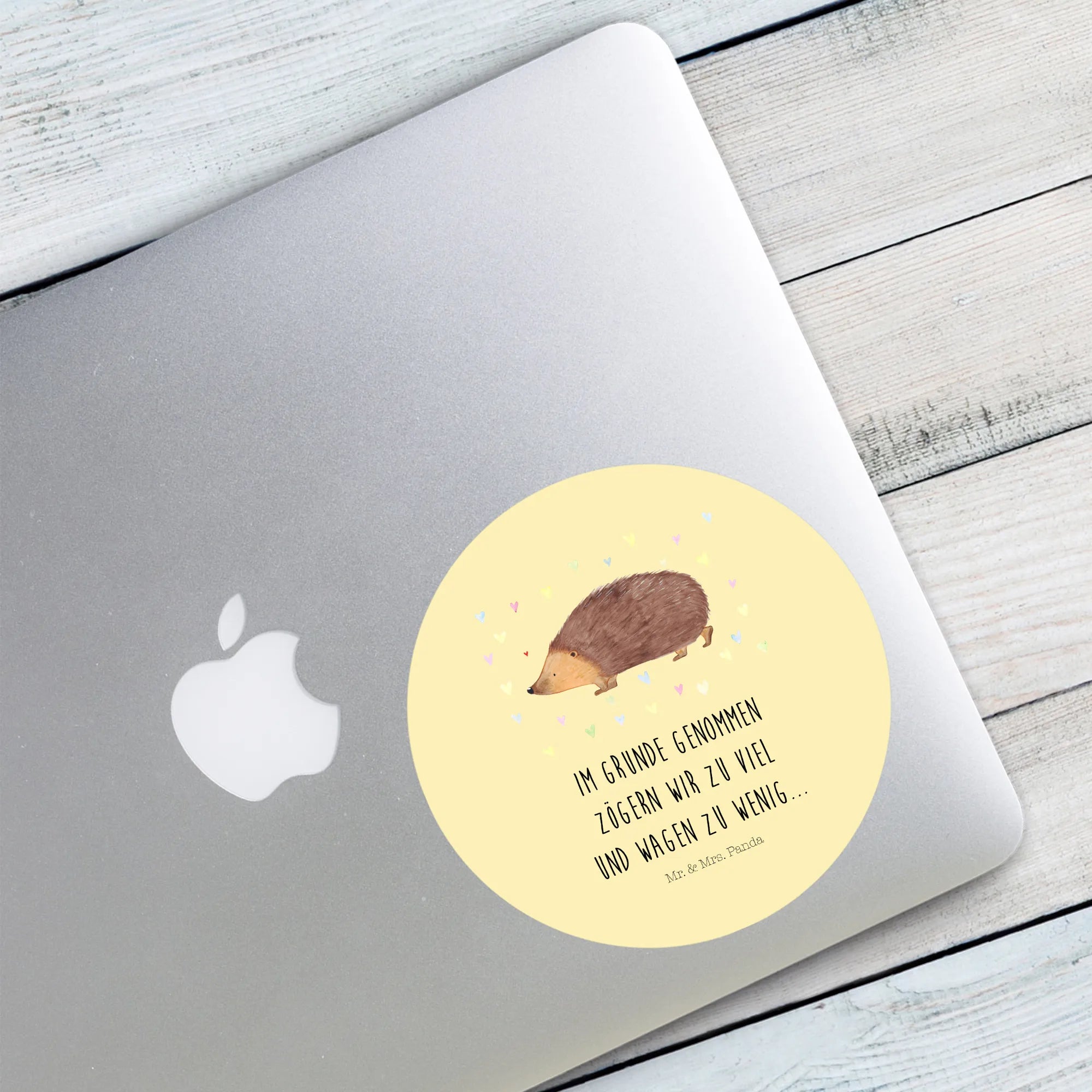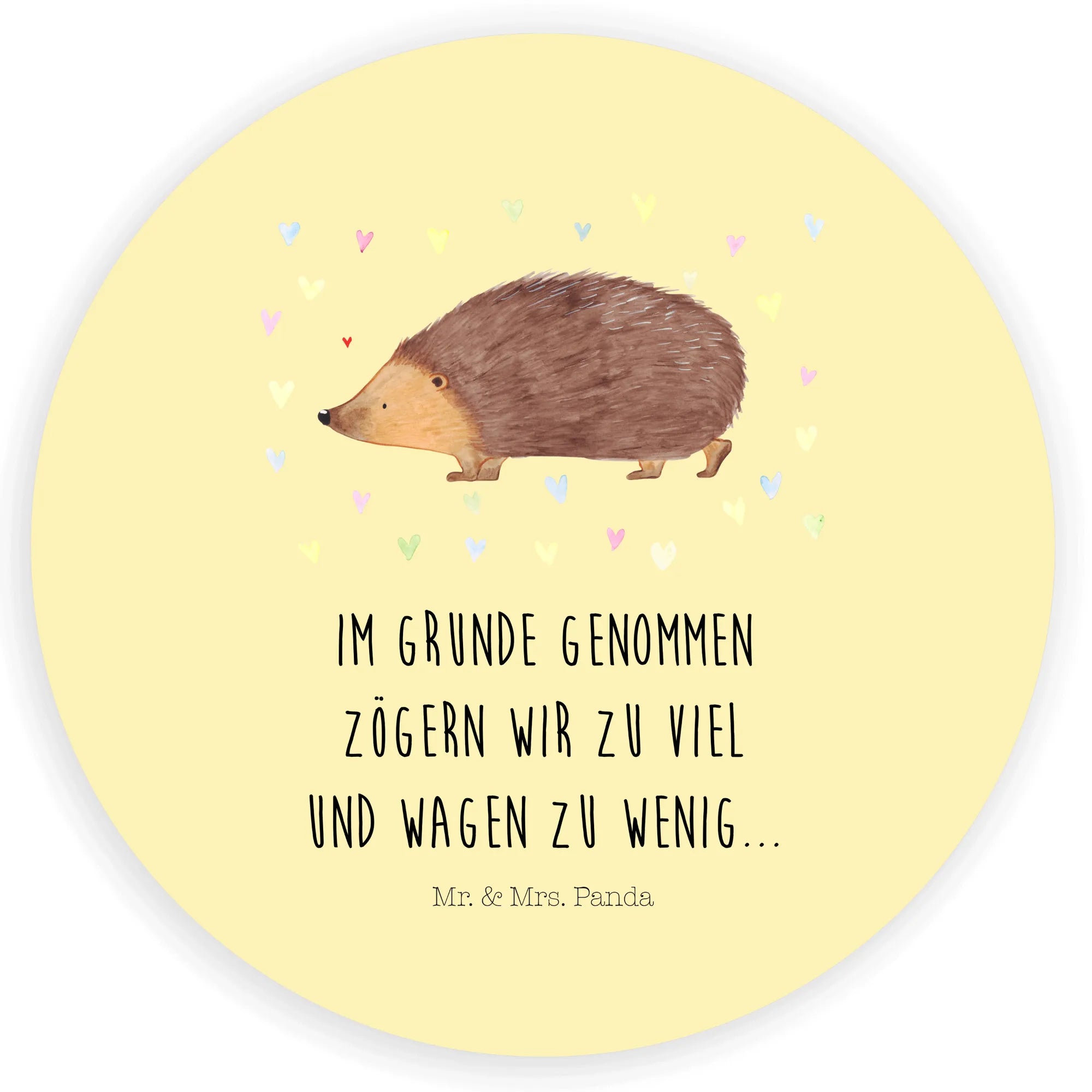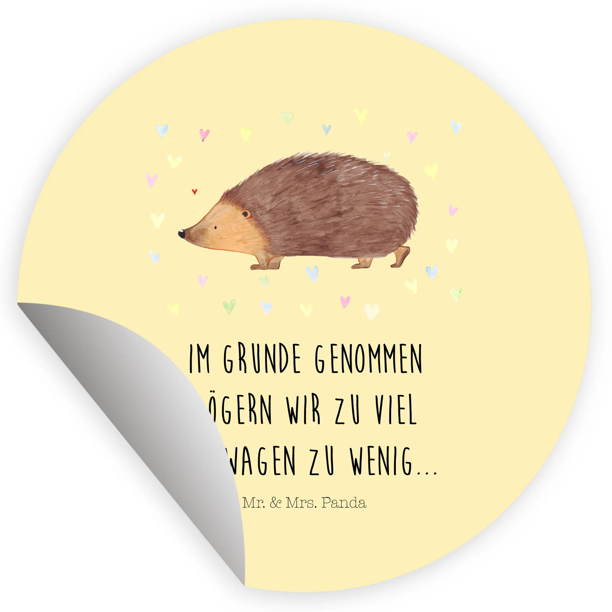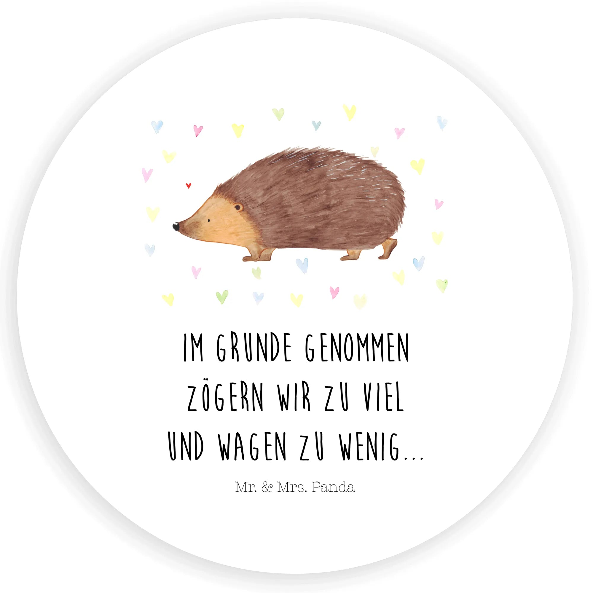 Ein wunderschöner 40mm Rund Aufkleber von Mr. & Mrs. Panda: Unser Motiv „Igel Herzen" aus der Small World Kollektion verströmt sofort Wärme und Geborgenheit. Der kleine Igel, umgeben von vielen roten Herzen, wurde liebevoll in Aquarell von Mrs. Panda gezeichnet und schenkt jedem Gegenstand eine verspielte, herzliche Note. Perfekt, um Schulhefte, Einladungskarten oder Gastgeschenke zu verschönern. 😊