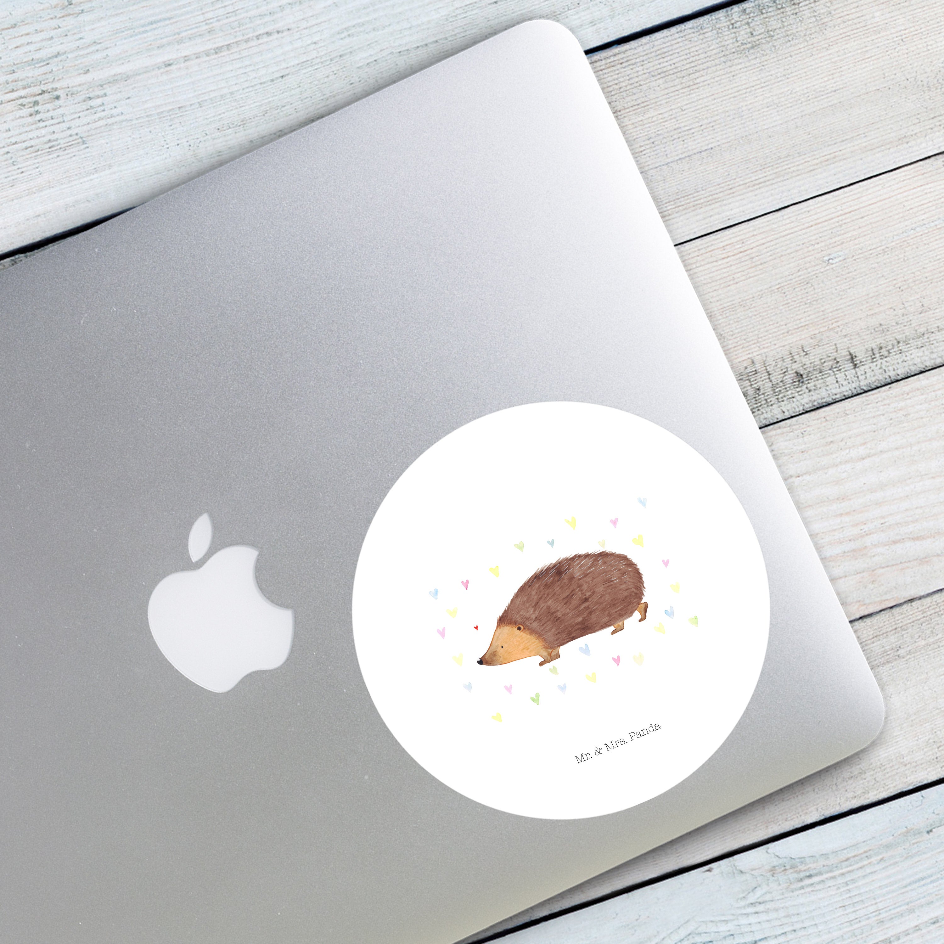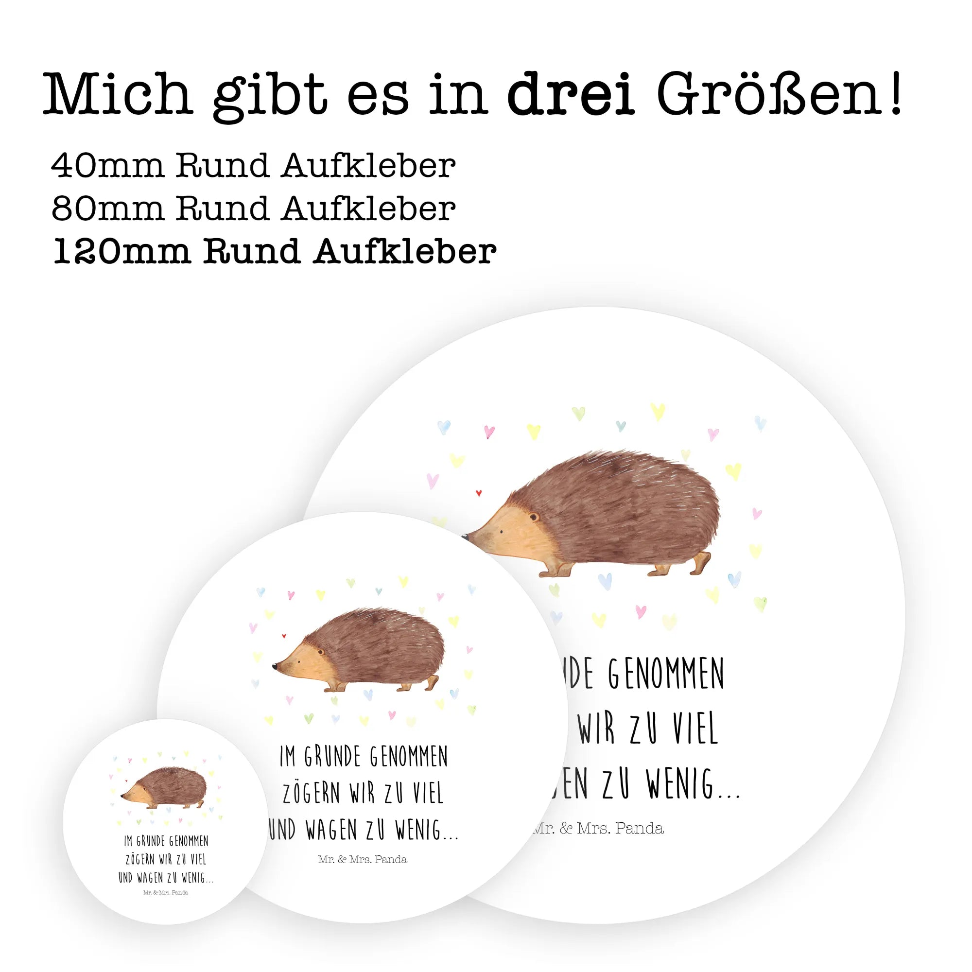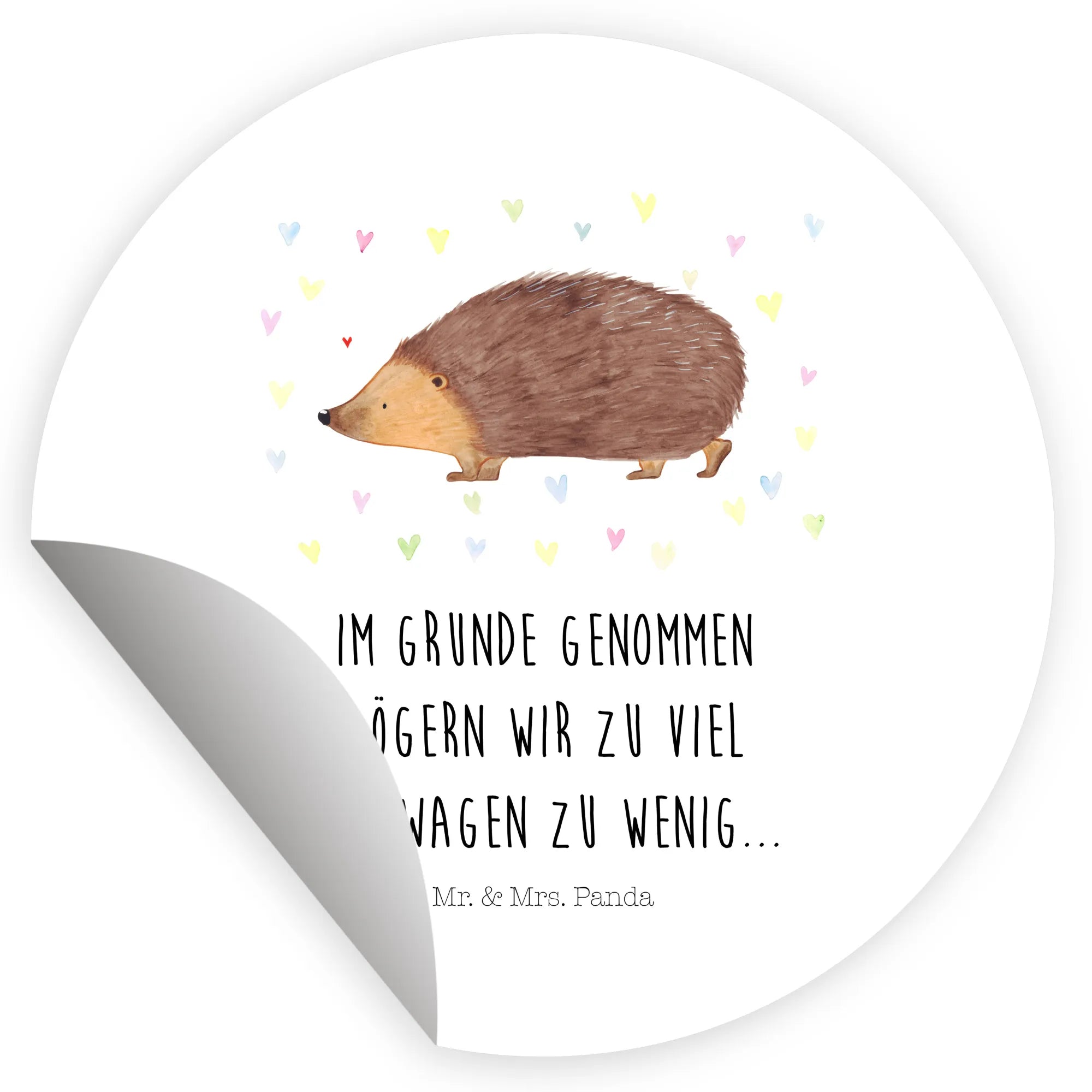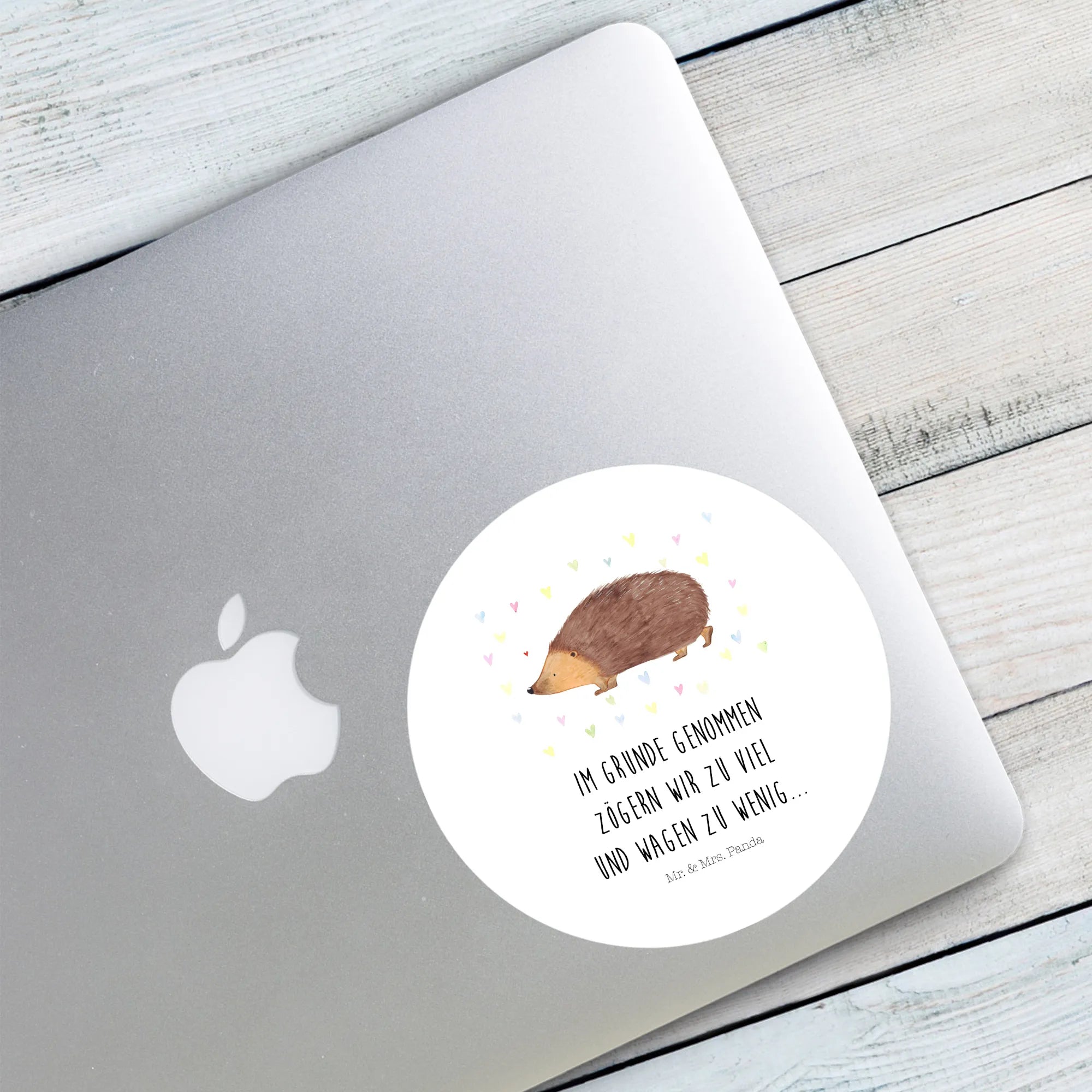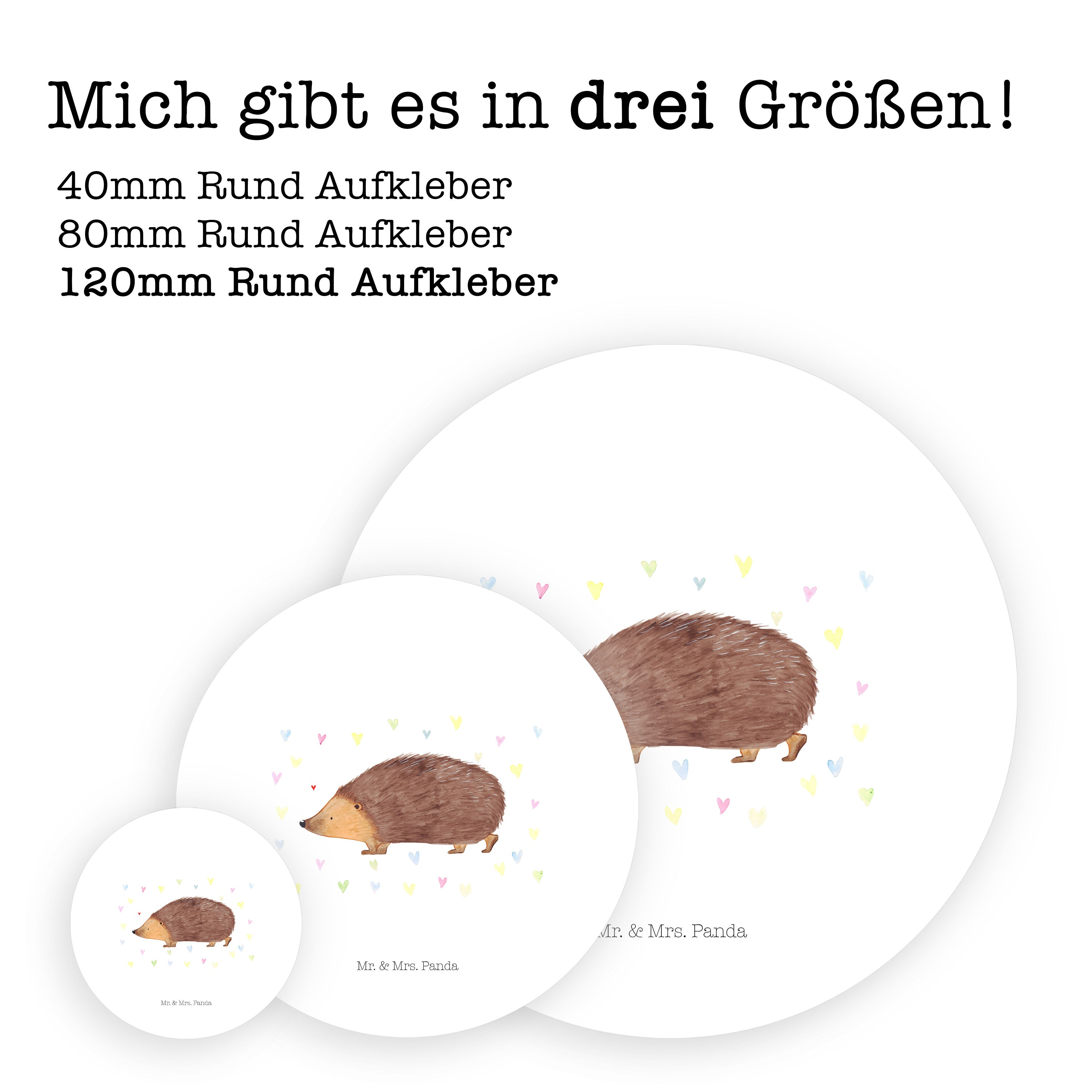 Round sticker Hedgehog hearts - 120mm Rund Aufkleber - with a saying - White