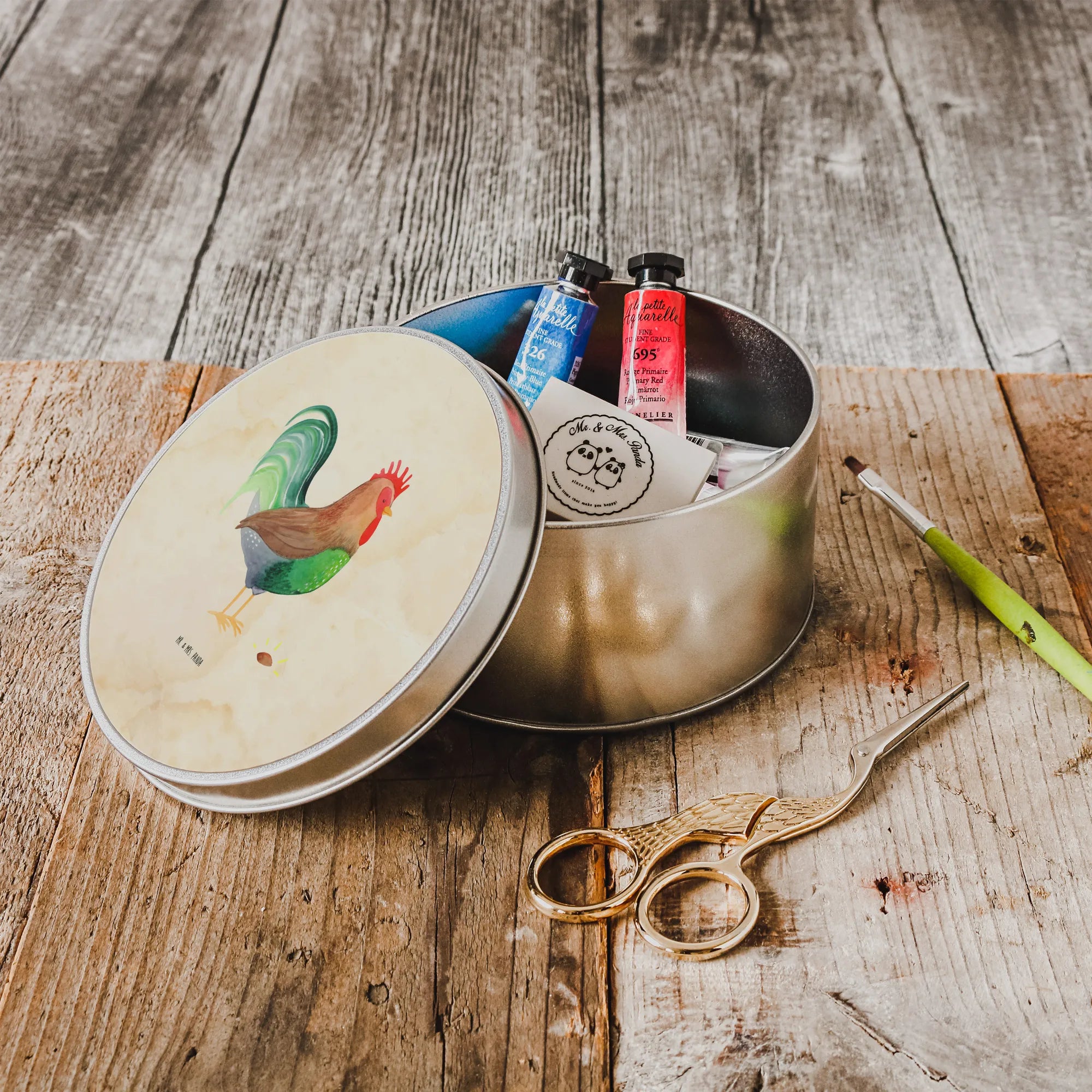 With numerous applications like storing cookies, candies, or even crafting supplies, the Round Tin with Cock and Grain motif stands out as a unique and thoughtful gift. The quality design ensures it can be a lasting piece in any home and a beautiful way to celebrate your loved ones' passions.