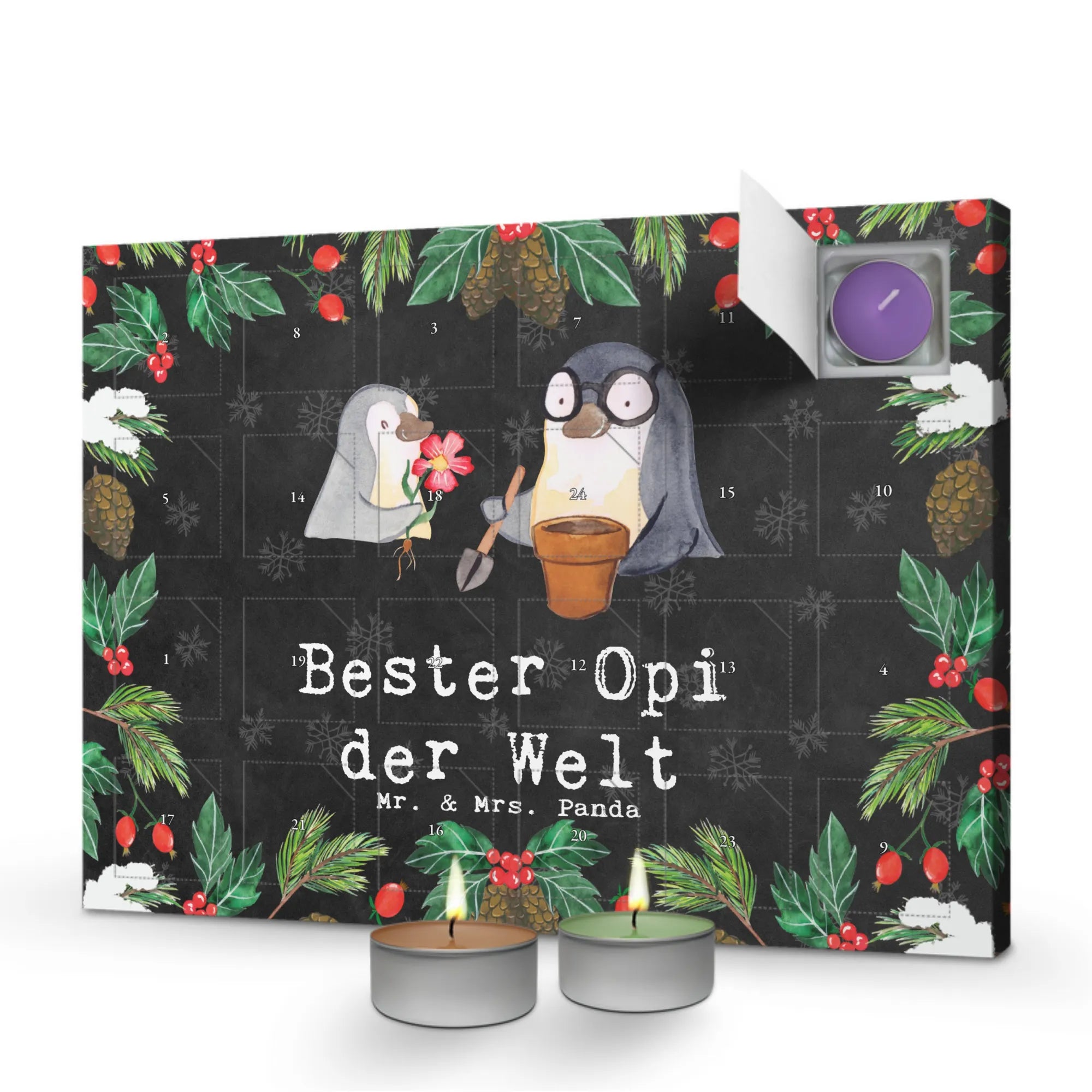 Scented candle advent calendar penguin Best grandpa in the world - Chalkboard
