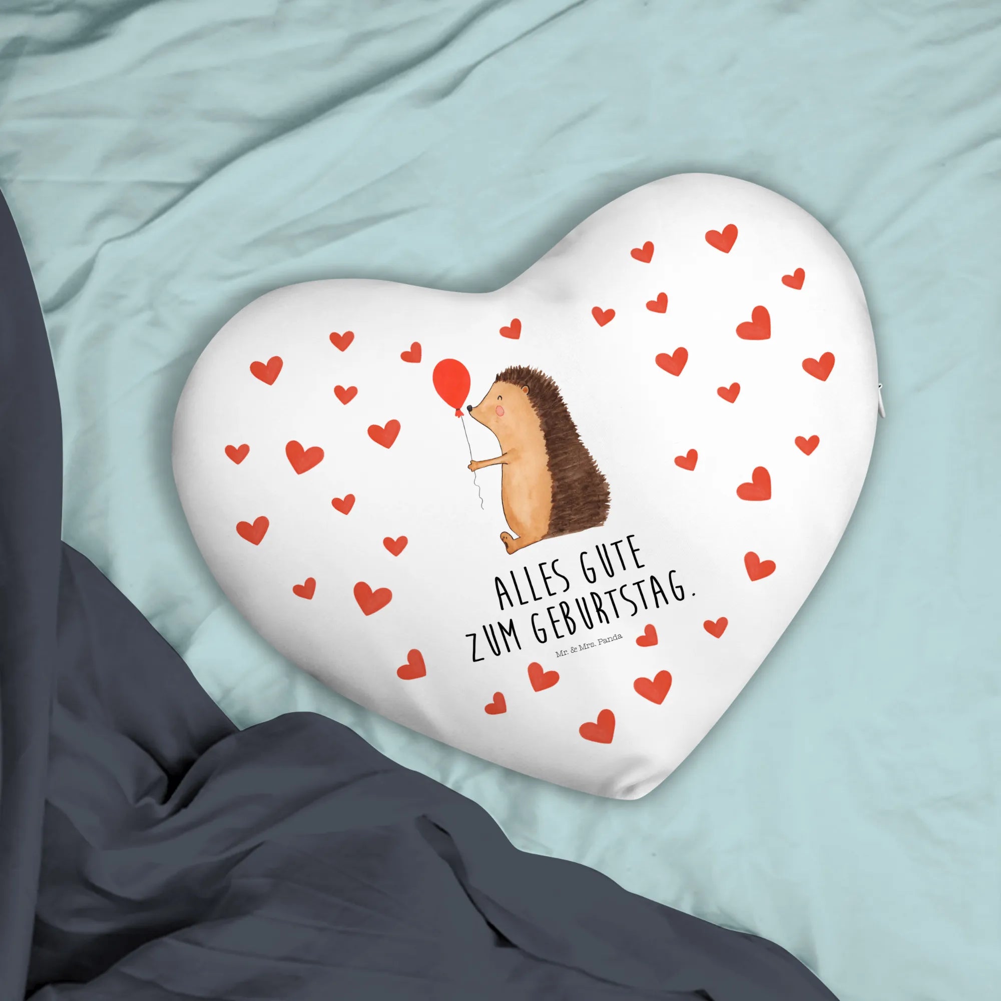 Introducing the delightful Mr. & Mrs. Panda Heart Cushion featuring our adorable hedgehog with a cheerful balloon! This charming heart-shaped cushion is not just a home accessory; it's a heartfelt gift that brings joy and warmth to any room. Measuring approximately 15 inches by 13 inches, this cozy pillow is perfectly sized for snuggling and displaying.