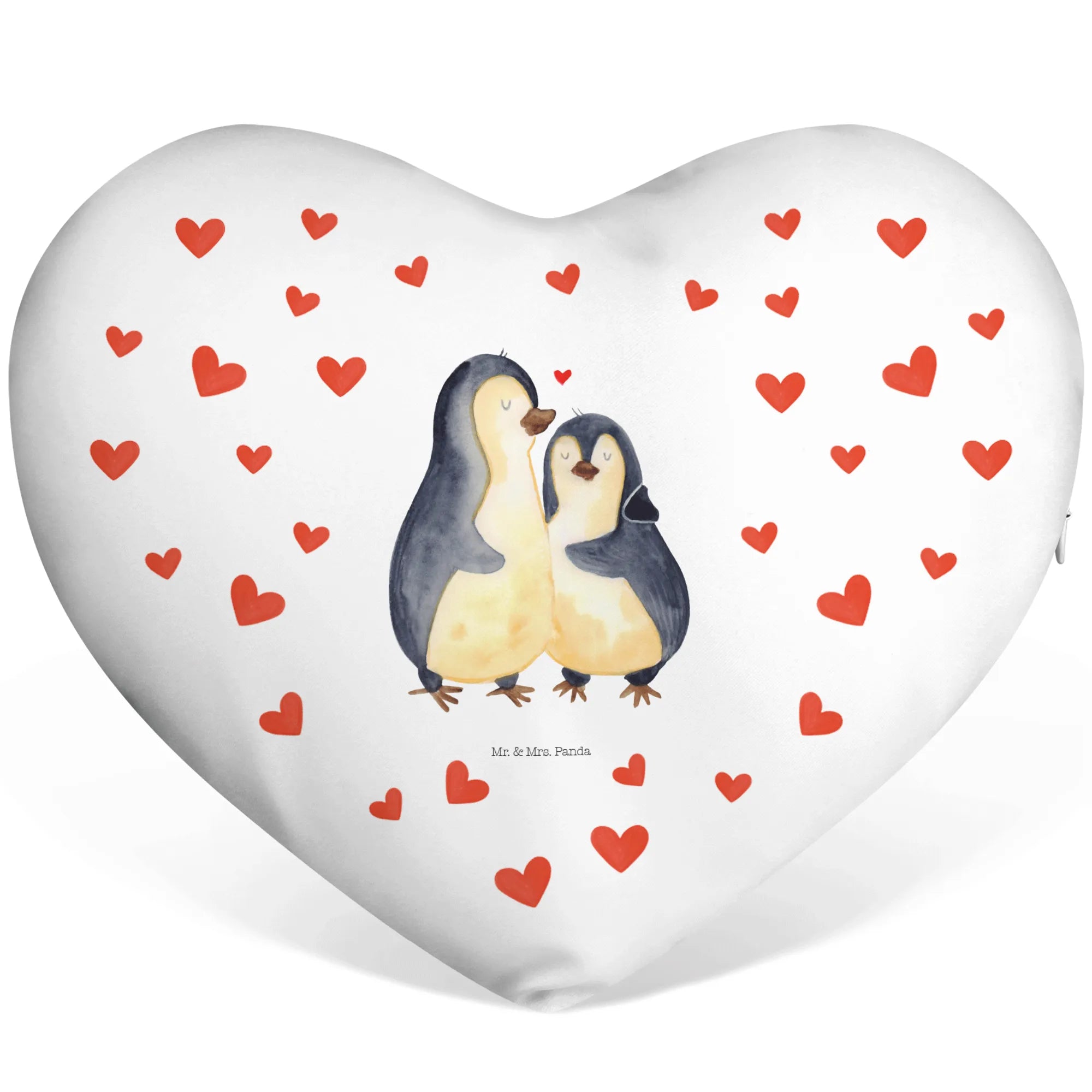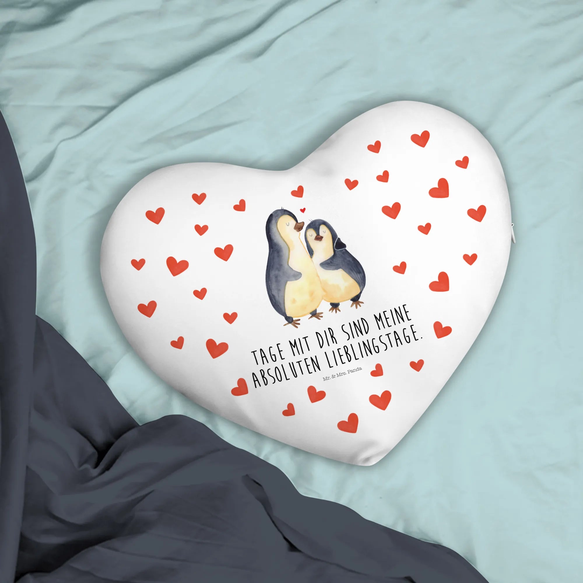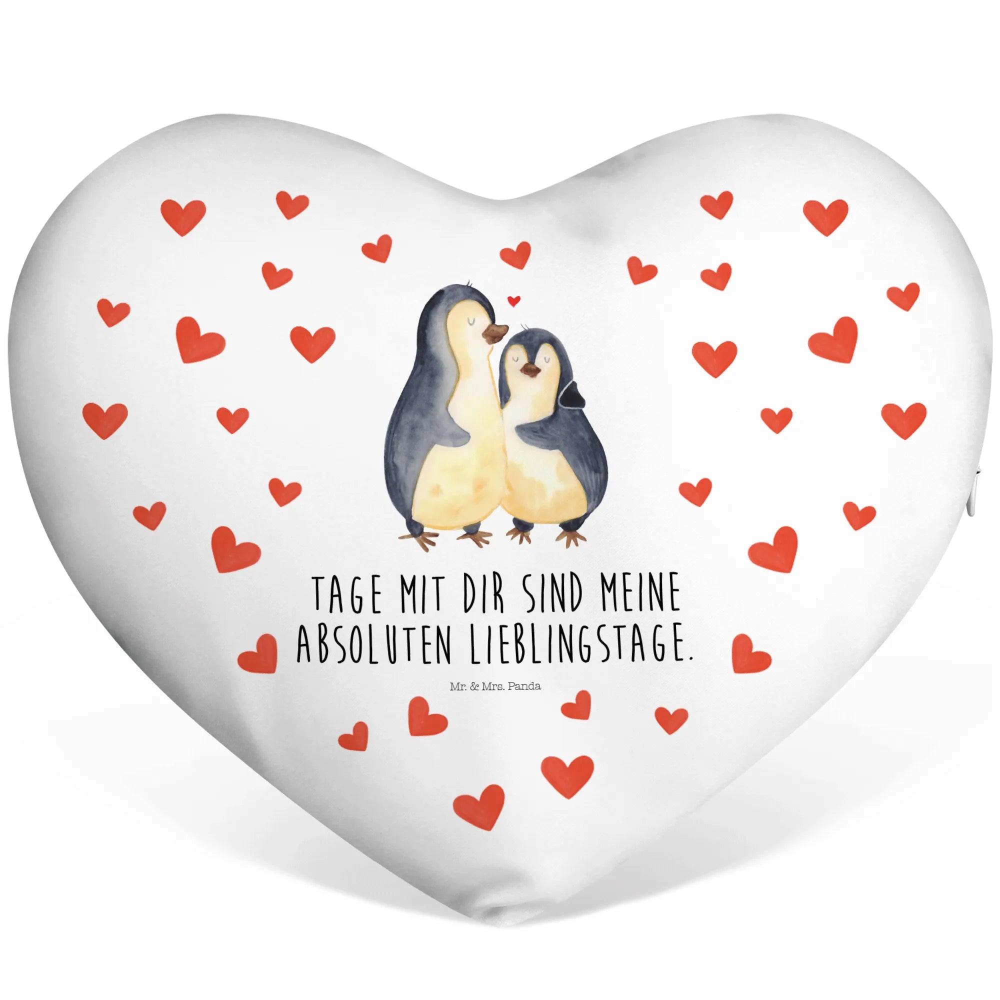 Heart cushion Penguin embrace - with a saying